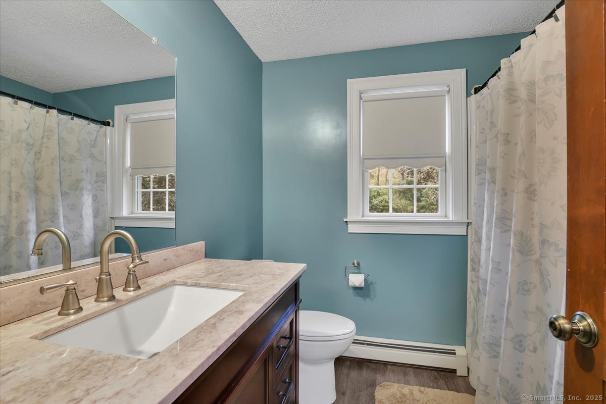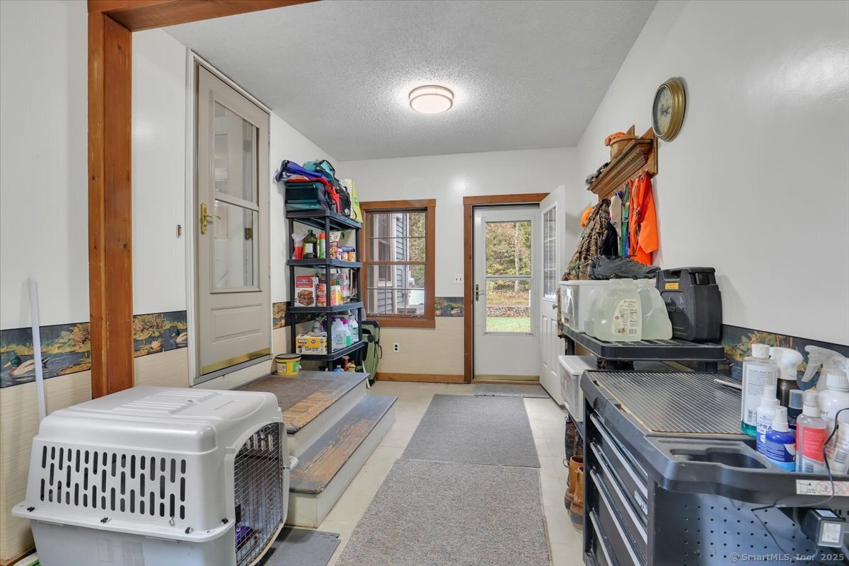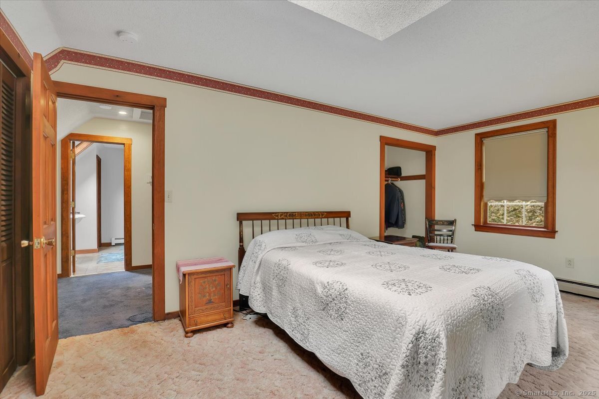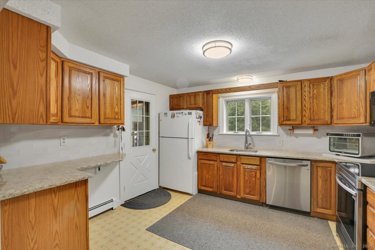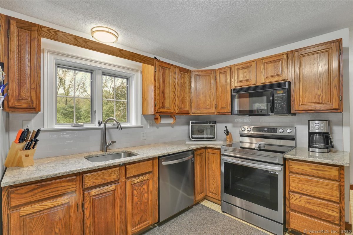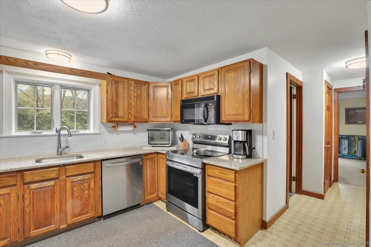 Welcome to this charming 3 bedroom Colonial set back from the road. Property is framed by a classic New England stone wall that stretches across the front of the property. This home offers 3 spacious bedrooms, including: Two large upstairs bedrooms, one with v-groove flooring and a walk-in closet, the other with three closets for abundant storage, wall to wall carpet and a skylight. A convenient main-level bedroom, perfect for guests or flexible use. Also inside you'll find: A large kitchen ready for gatherings and everyday living. A formal dining room with gleaming hardwood floors. A cozy living room featuring a fireplace with pellet stove insert. Additional highlights include a 2 car garage which is connected by an enclosed breezeway which is ideal for a mudroom, pets, or extra storage. Garage attic with pull-down stairs for additional storage. And if you need more space there is a shed for all your yard tools and toys. The property is .99 acres with a partially fenced yard, offering both privacy, safety for your pets and space to enjoy the outdoors. Large open sloping back yard. (Note: Kennel on concrete slab does not convey.) This is a must see home. ACTIVE DATE 10/15/25