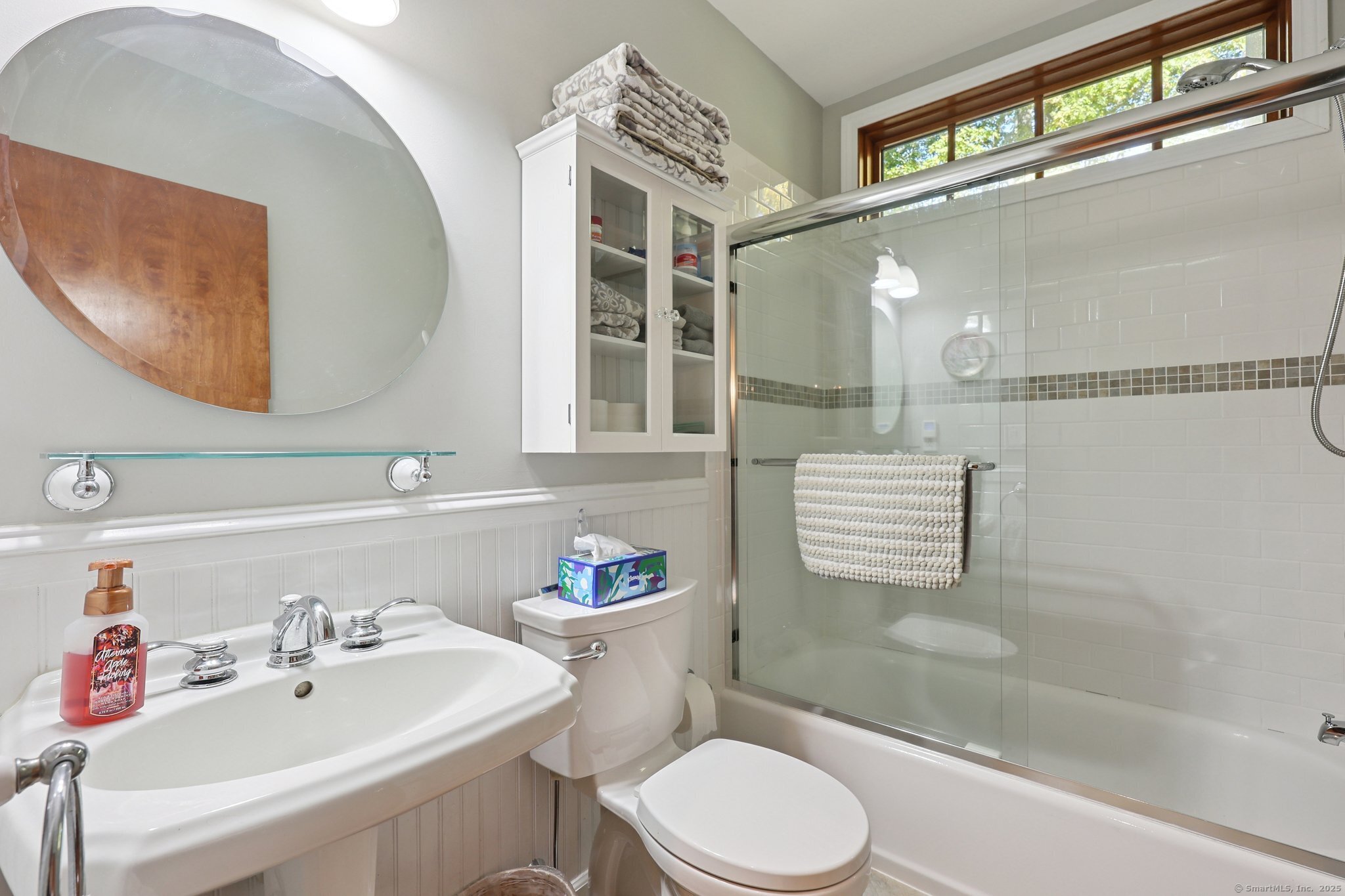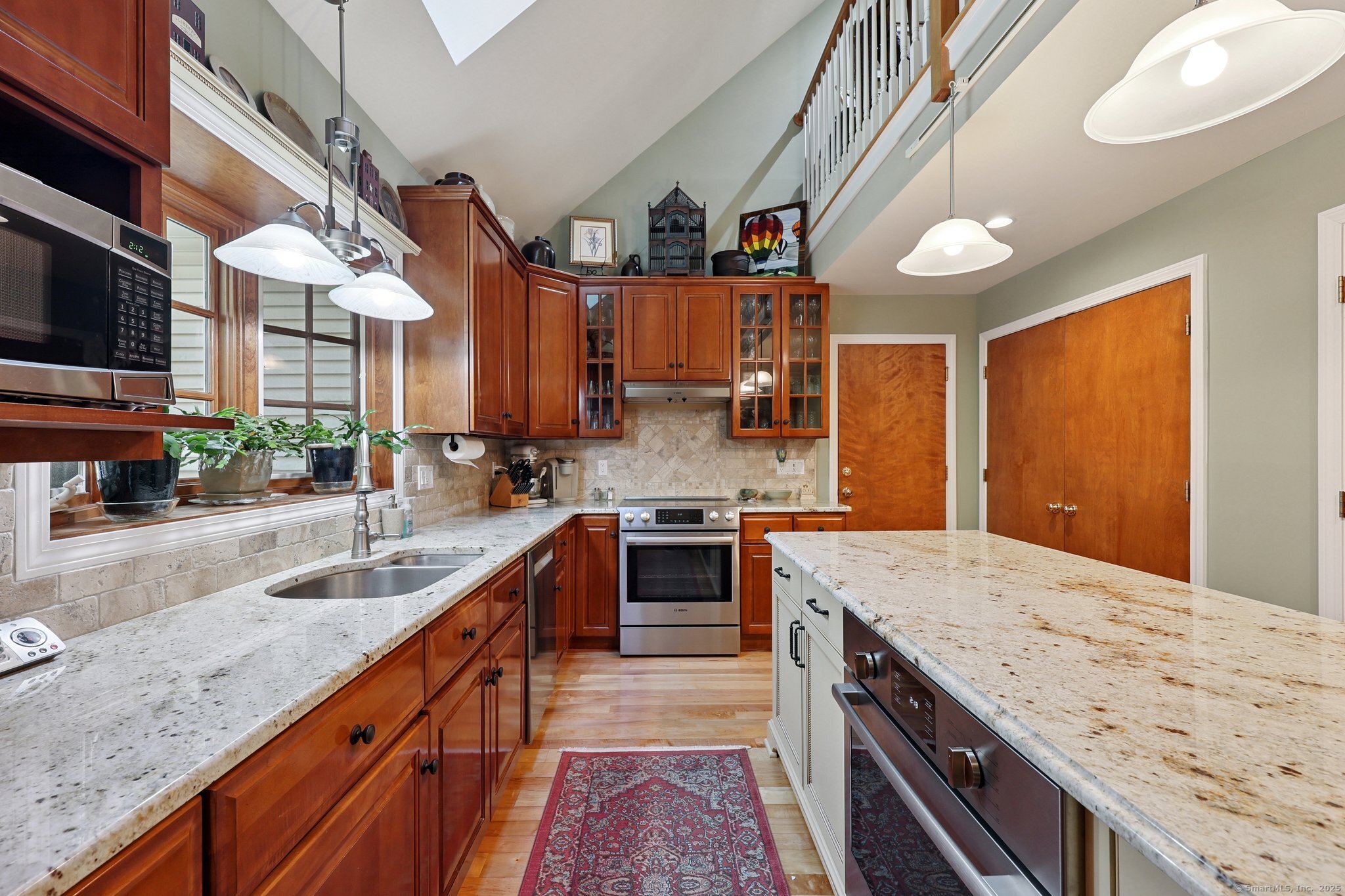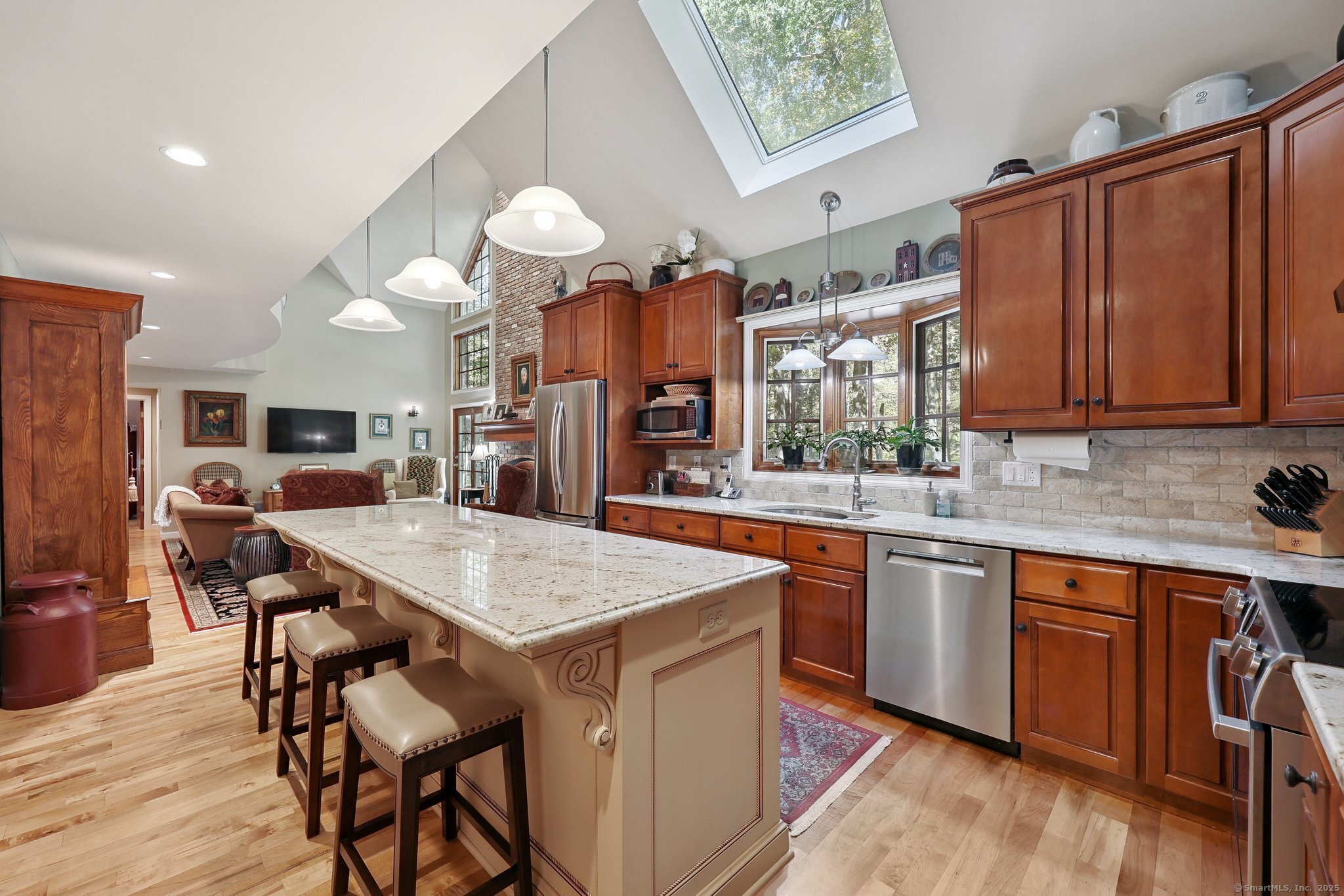 Stunning 4-Bed, 3-Bath Home on 1.89 Acres in Southbury Welcome to a rare find in Southbury - this beautifully maintained 4-bedroom, 3-bathroom home sits serenely on 1.89 acres and blends timeless elegance with modern comfort. Step inside to discover an open floor plan that flows seamlessly, centered around a gorgeous fireplace with reclaimed Chicago brick, anchoring the living room. Light pours in through large windows and cathedral ceilings, creating a bright, airy ambiance. Overhead, a skylight in the kitchen invites the outdoors in, adding warmth and charm while filling your morning with sunshine. Two of the four bedrooms are true primary suites, (One located on the main level!) each boasting its own full bath - offering privacy and luxury for all. The remaining bedrooms are spacious and well-appointed, ideal for family or guests. Out back, a two-tier deck invites al fresco dining, morning coffee, or quiet evenings under the stars. The expansive lot includes a shed, and gives you room for gardens, play, or future expansion. Parking is a delight: a three-car garage plus a generous driveway ensure ease for your vehicles and visitors. Meticulously cared for over the years, this home shows pride of ownership at every turn. Whether you're after style, space, or serenity - this property delivers. Don't wait - book your private showing today.