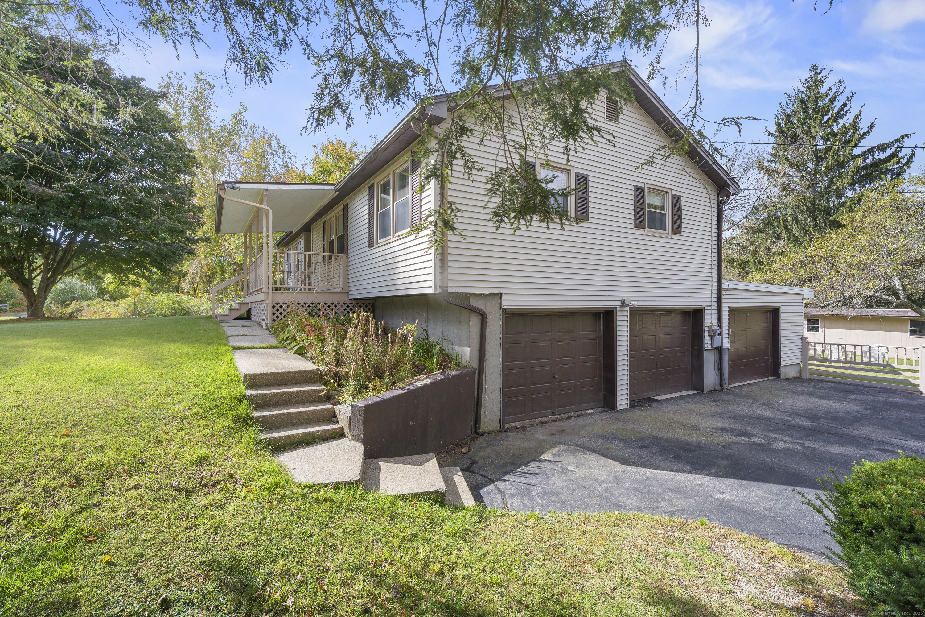 Spacious 3-Bedroom, 2-Bath Home on a Large Corner Lot over an acre. Enjoy the best of both indoor and outdoor living with this beautifully maintained home featuring an in-ground pool, a large level yard, and plenty of recent updates. The home includes a newer roof, newer boiler, and more space than you'd expect. A 3-car garage-complete with a mechanics pit in one bay-offers ample room for vehicles, storage, or hobbies. Large covered front porch makes it ideal for sitting outside!!