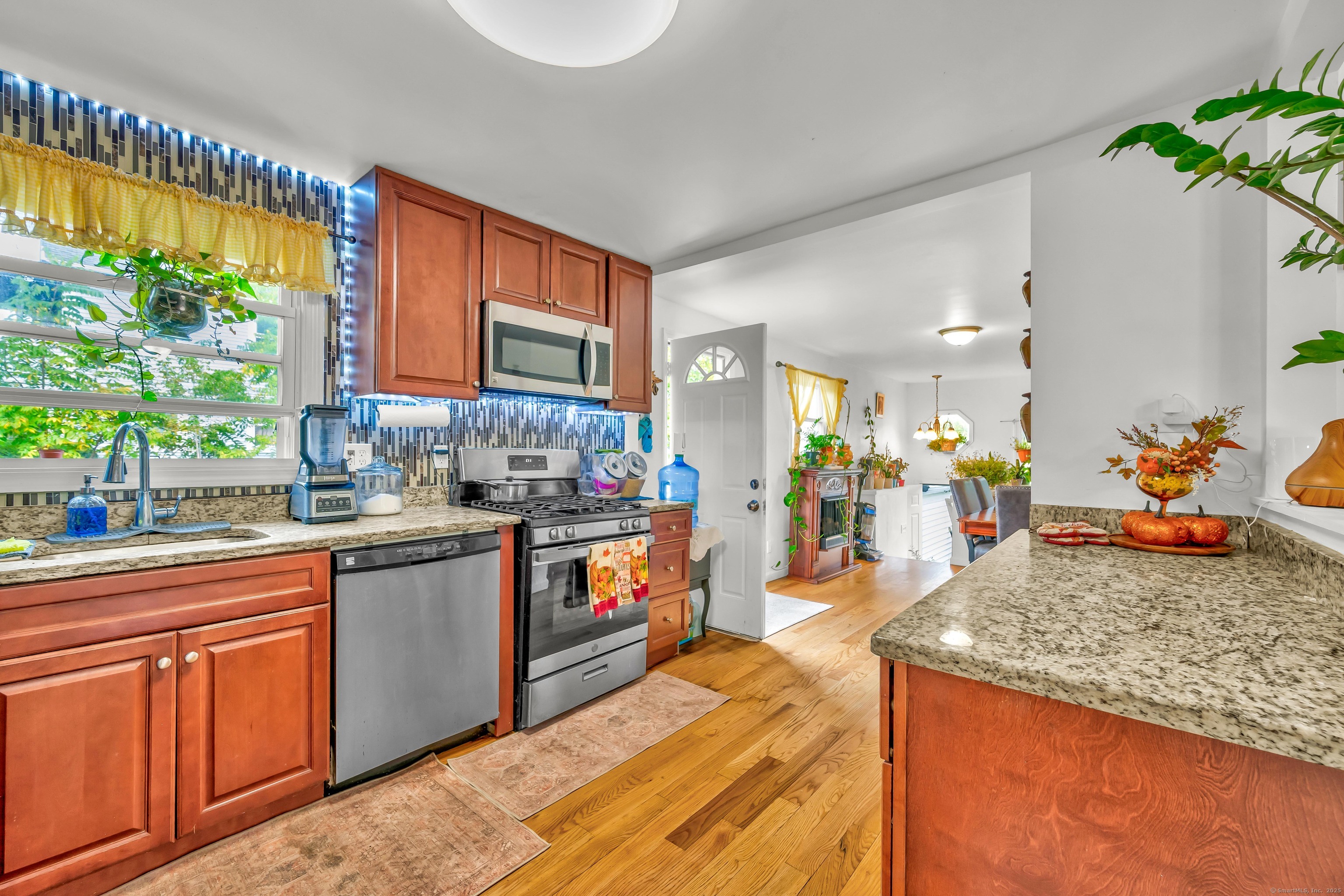 Move-in ready 3BR, 3BA Danbury home on a corner lot, just 2 minutes to I-84 for an easy NY commute. The main level features a bright living room, an eat-in kitchen with stainless appliances, granite counters, and plenty of storage. The primary suite includes a walk-in closet and full bath. Two additional bedrooms with hardwood flooring and a second full bath complete the main floor. The finished lower level, with its own entrance, offers space for a home office, guest suite, or playroom. Enjoy a large, flat backyard ideal for BBQs and family gatherings, plus a private driveway with carport and garage. Roof just 4 years old, newer water heater, natural gas heat, and public utilities. Close to shopping, restaurants, and public transportation - a commuter's dream.