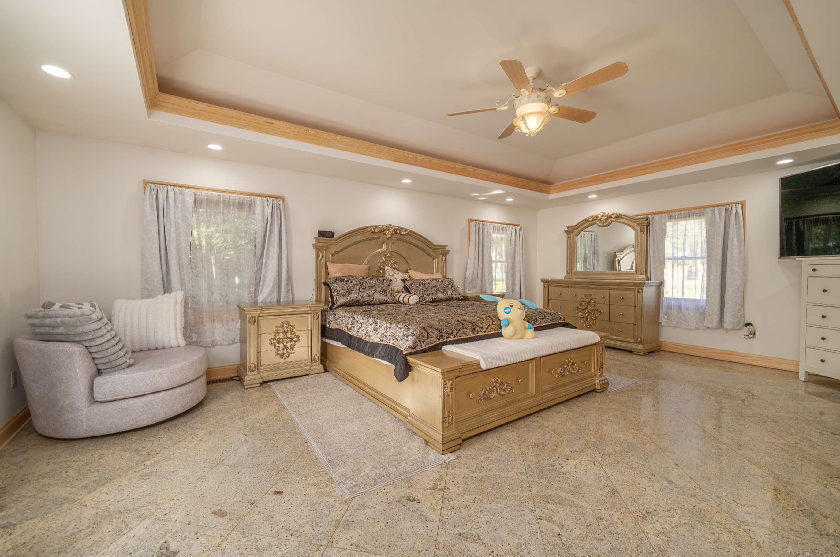 Stunning Split-Level Home with Expansive Living Spaces & Dream Garage Setup. Step into the massive open concept living area, which flows seamlessly into a spacious open kitchen, ample cabinetry, and generous counter space ideal for entertaining or everyday living. The home features a unique split-level layout with three spacious bedrooms located on the upper level, offering privacy and comfort for family or guests. On the main level, retreat to the primary suite, designed with both relaxation and style in mind. Gleaming marble and tile flooring runs throughout, adding elegance and continuity across the sprawling rooms and wide-open spaces. Whether you're hosting gatherings or enjoying a quiet night in, this layout offers flexibility and flow. Outside, you'll find a massive yard - perfect for outdoor activities, gardening, or even future additions. Car lovers and hobbyists will appreciate the attached heated 3-car garage, a mechanic's dream with ample room for tools, projects, and storage. There's an additional detached 1-car garage in the back, ideal for additional workshop, or extra storage. This is more than just a house - it's a lifestyle upgrade. With room to grow, space to breathe, and features that impress at every turn, this home checks all the boxes.