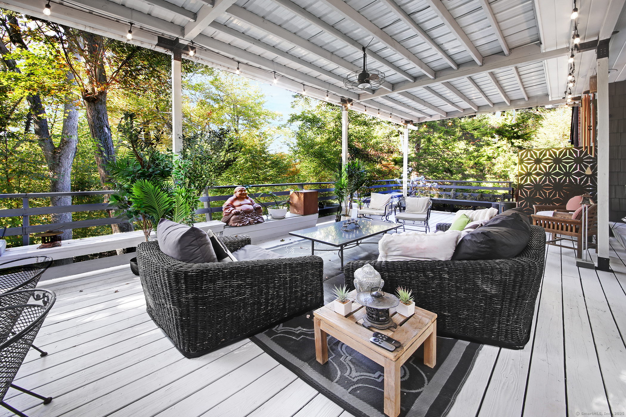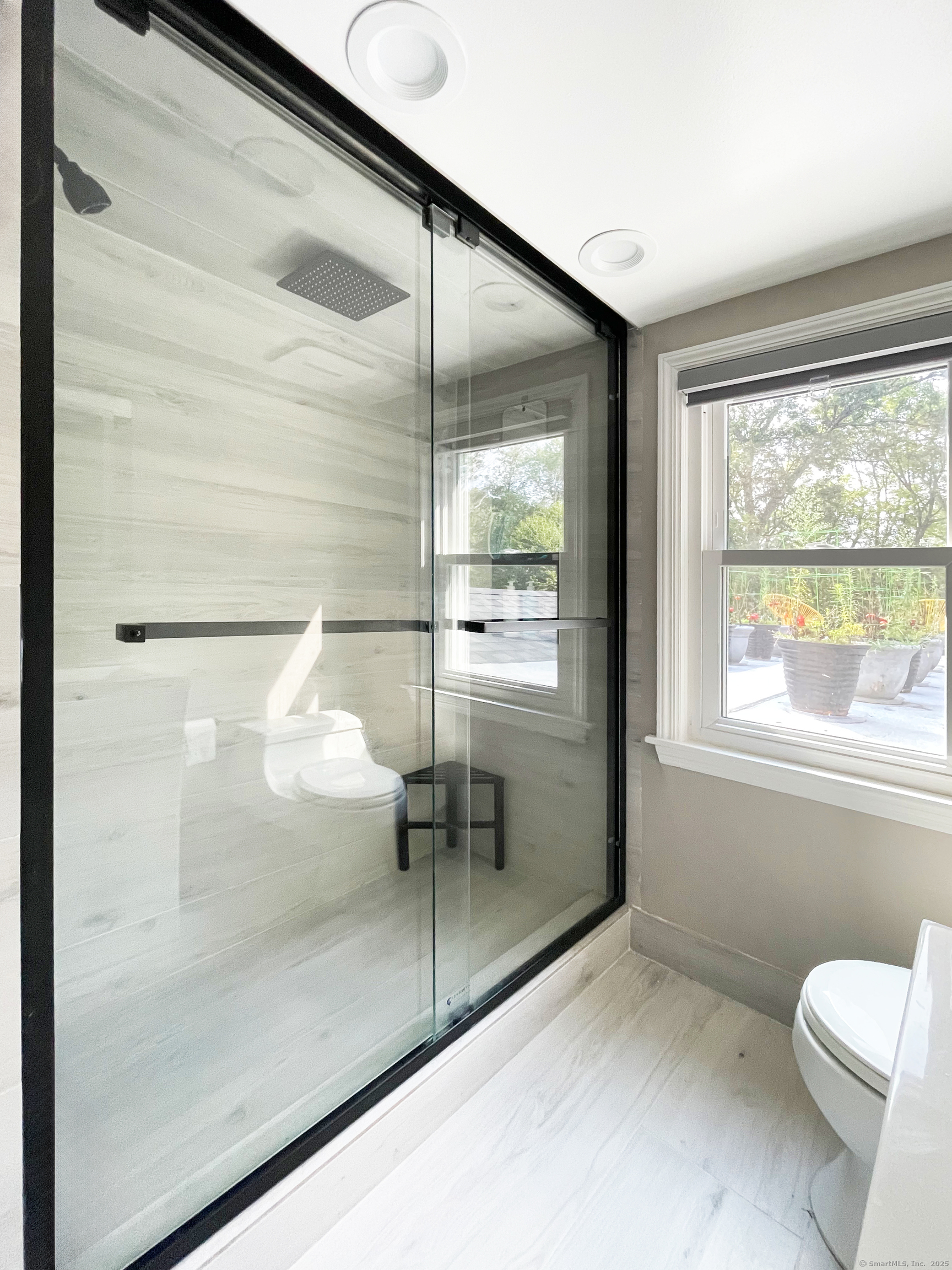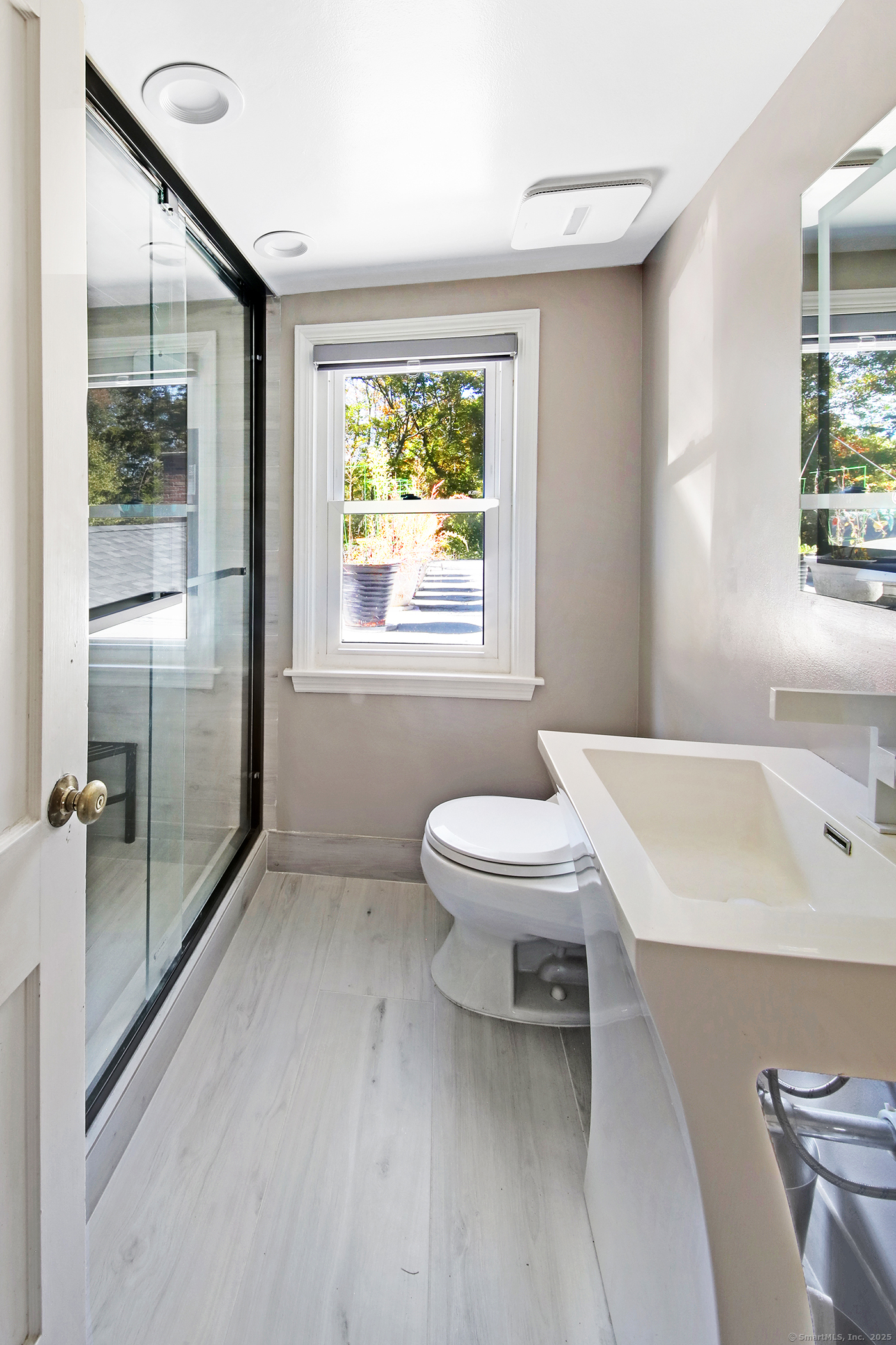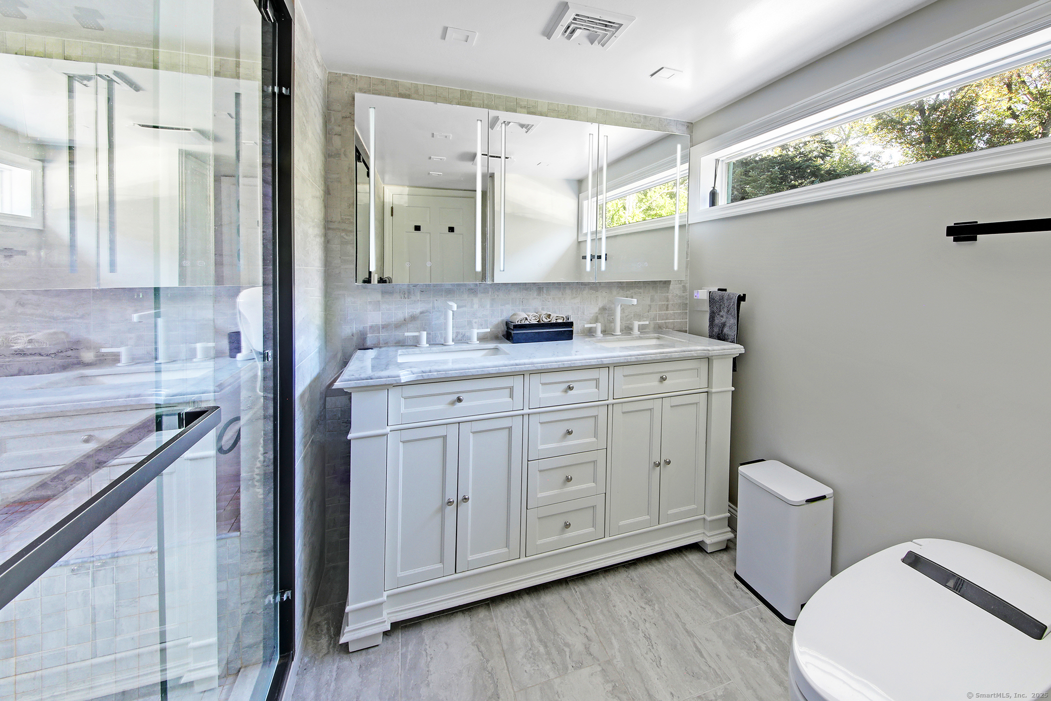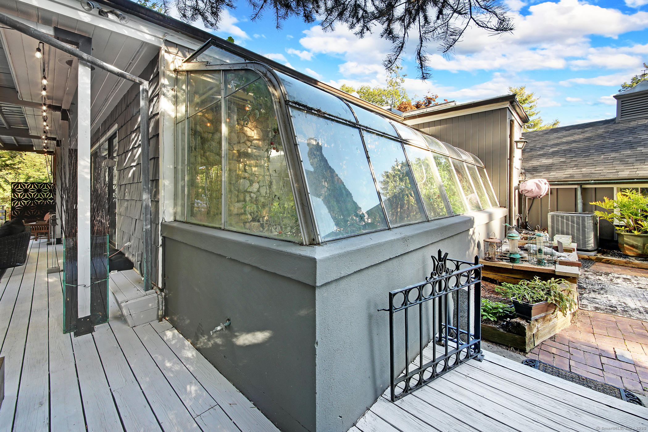 Discover a rare blend of historic charm, modern design, and sustainable living at 401 Wildwood Road - a fully restored 5-bedroom, 3-bath designer home set on a private, one-acre hilltop with mature landscaping and sweeping woodland views. The property backs onto four unbuildable acres, creating a serene, parklike "treehouse" setting. Originally built in 1926 and completely updated between 2015-2025, this move-in ready home combines eco-friendly technology with timeless architectural character. Features include a chef's kitchen with highend appliances, radiant heated stone floors, vaulted family and great rooms, a greenhouse with waterfall, fenced yard, and expansive deck - perfect for entertaining or quiet relaxation. Enjoy Nest thermostats, security cameras, Level 2 EV charging, and a 45-panel solar system with on demand hot water for exceptional energy efficiency and low operating costs. Located in one of North Stamford's most desirable neighborhoods, this peaceful retreat offers both privacy and community. Children play safely on wide lawns, neighbors stroll along quiet, tree-lined streets, and professionals enjoy an easy commute - less than 20 minutes to Stamford or Greenwich train stations, and about 45 minutes to Times Square. Low taxes, sustainable systems, and meticulous design make this property a rare find. Owners relocating overseas.