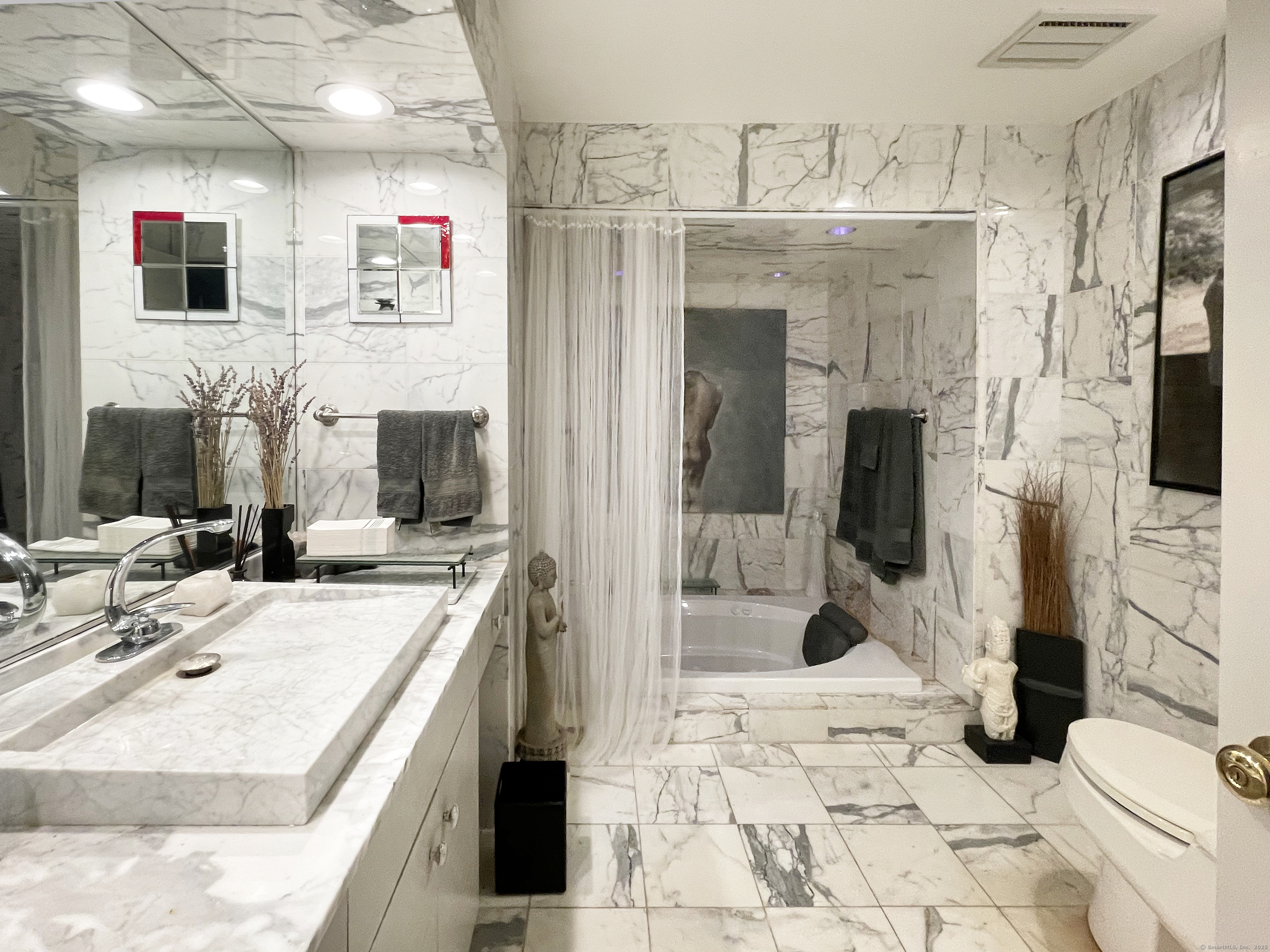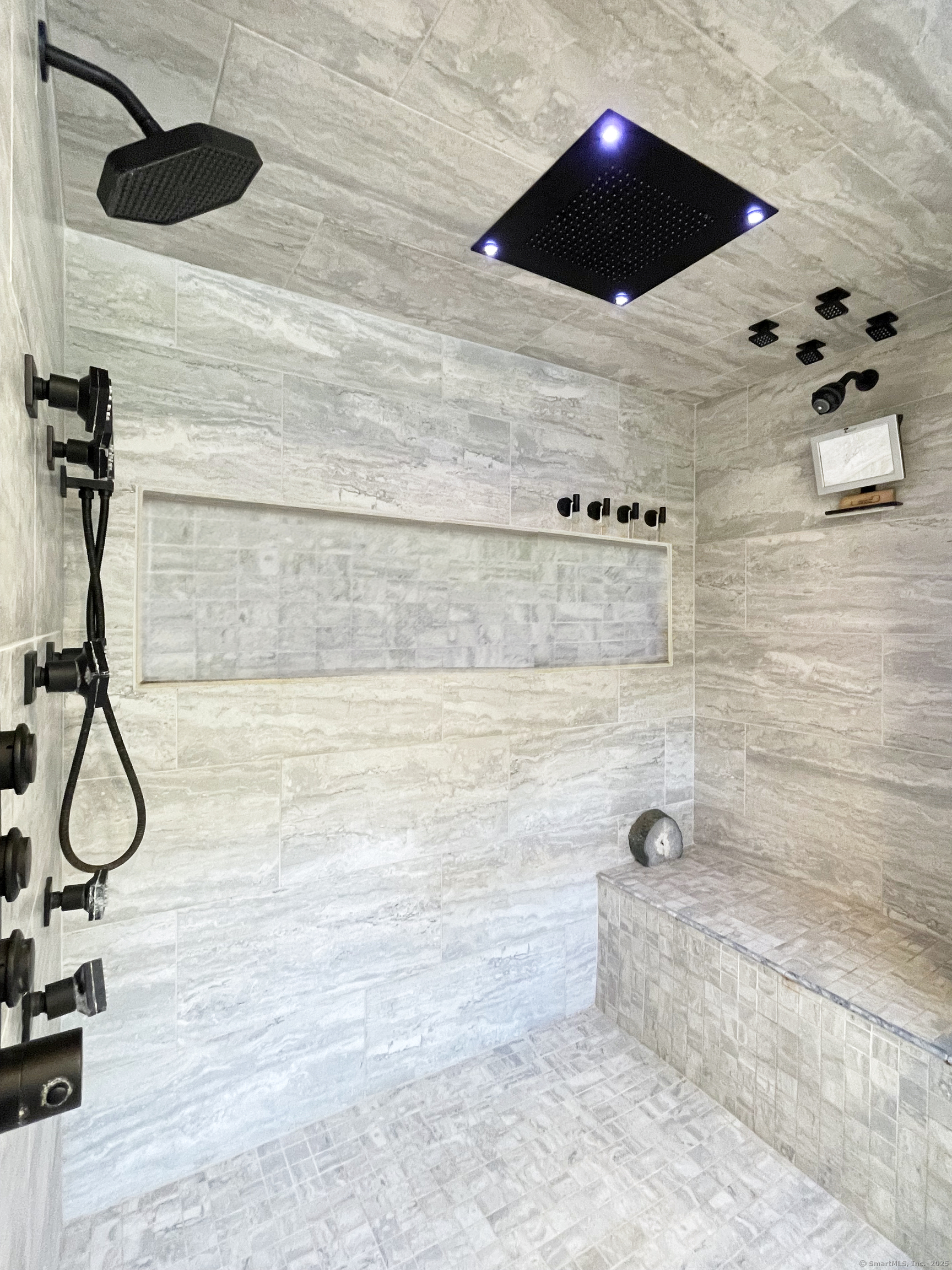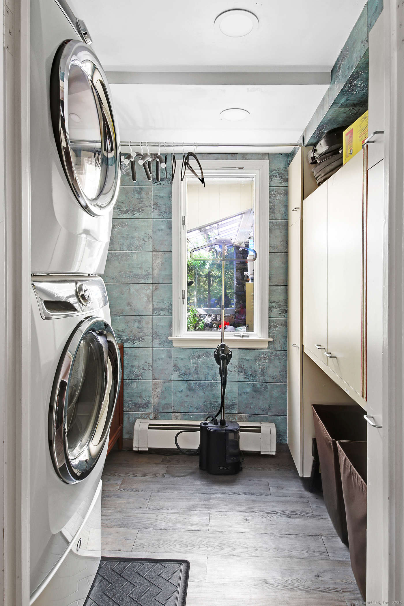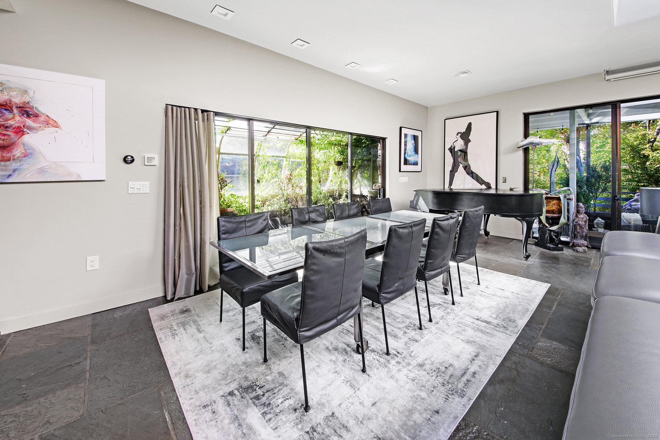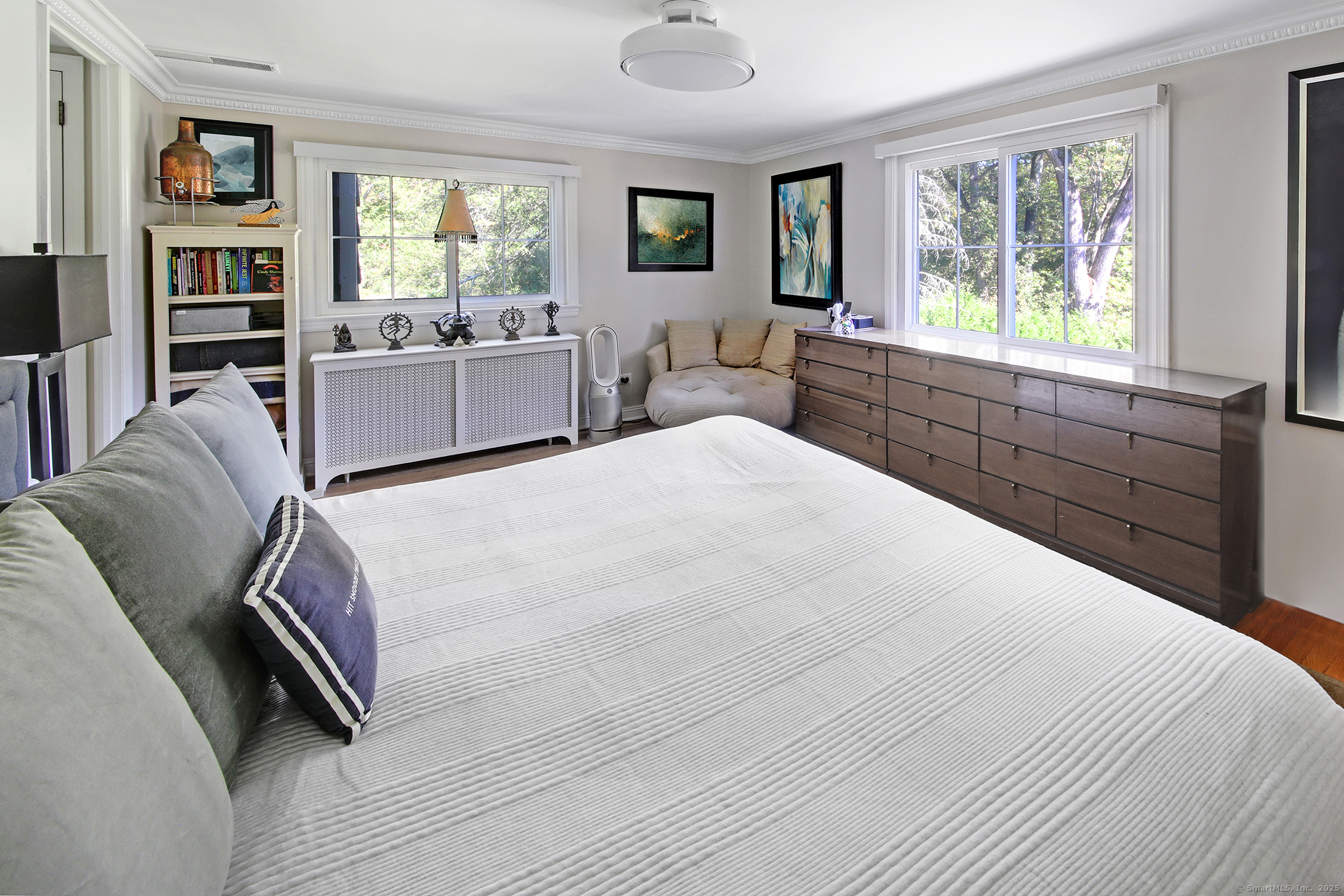 Discover a rare blend of historic charm, modern design, and sustainable living at 401 Wildwood Road - a fully restored 5-bedroom, 3-bath designer home set on a private, one-acre hilltop with mature landscaping and sweeping woodland views. The property backs onto four unbuildable acres, creating a serene, parklike "treehouse" setting. Originally built in 1926 and completely updated between 2015-2025, this move-in ready home combines eco-friendly technology with timeless architectural character. Features include a chef's kitchen with highend appliances, radiant heated stone floors, vaulted family and great rooms, a greenhouse with waterfall, fenced yard, and expansive deck - perfect for entertaining or quiet relaxation. Enjoy Nest thermostats, security cameras, Level 2 EV charging, and a 45-panel solar system with on demand hot water for exceptional energy efficiency and low operating costs. Located in one of North Stamford's most desirable neighborhoods, this peaceful retreat offers both privacy and community. Children play safely on wide lawns, neighbors stroll along quiet, tree-lined streets, and professionals enjoy an easy commute - less than 20 minutes to Stamford or Greenwich train stations, and about 45 minutes to Times Square. Low taxes, sustainable systems, and meticulous design make this property a rare find. Owners relocating overseas.