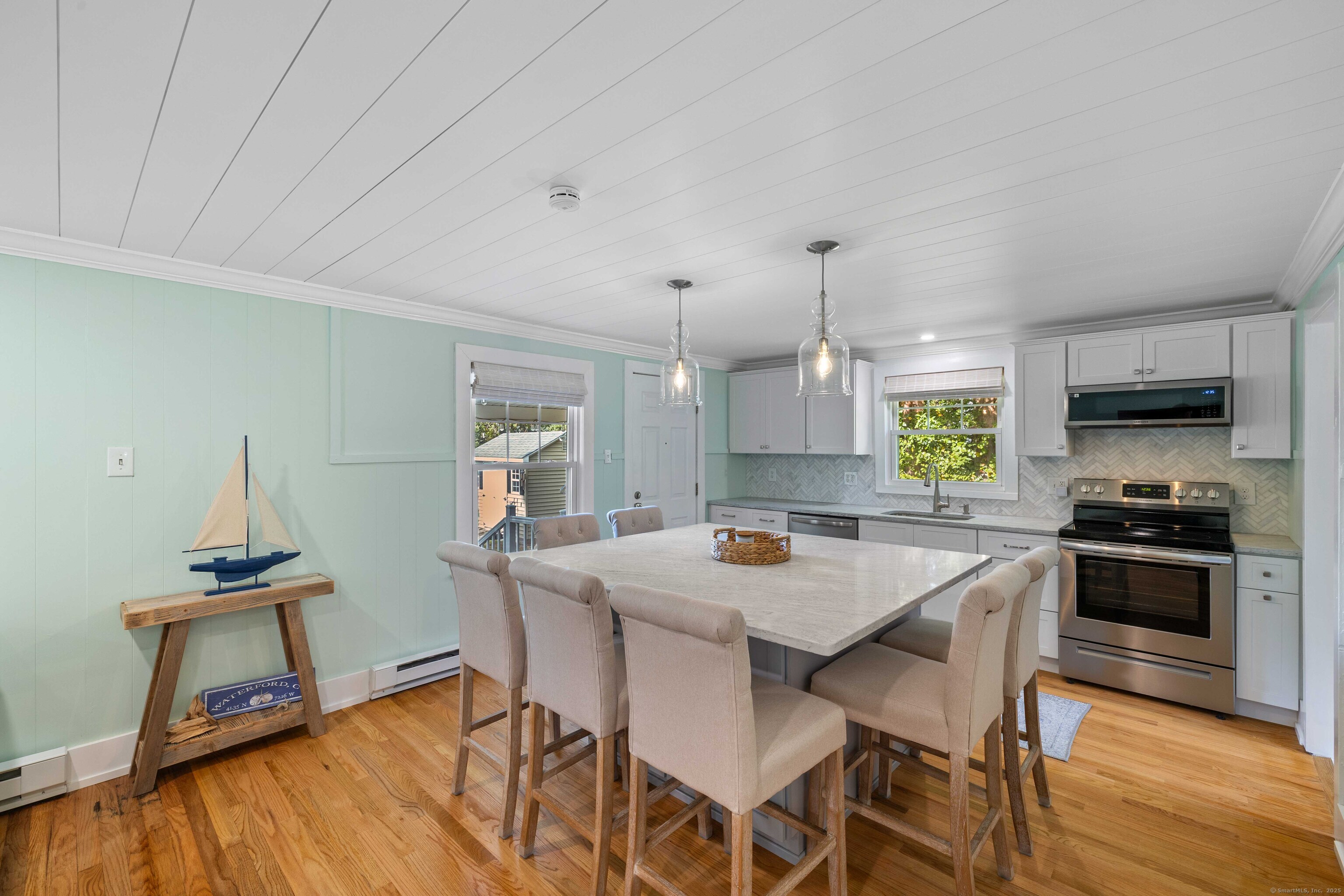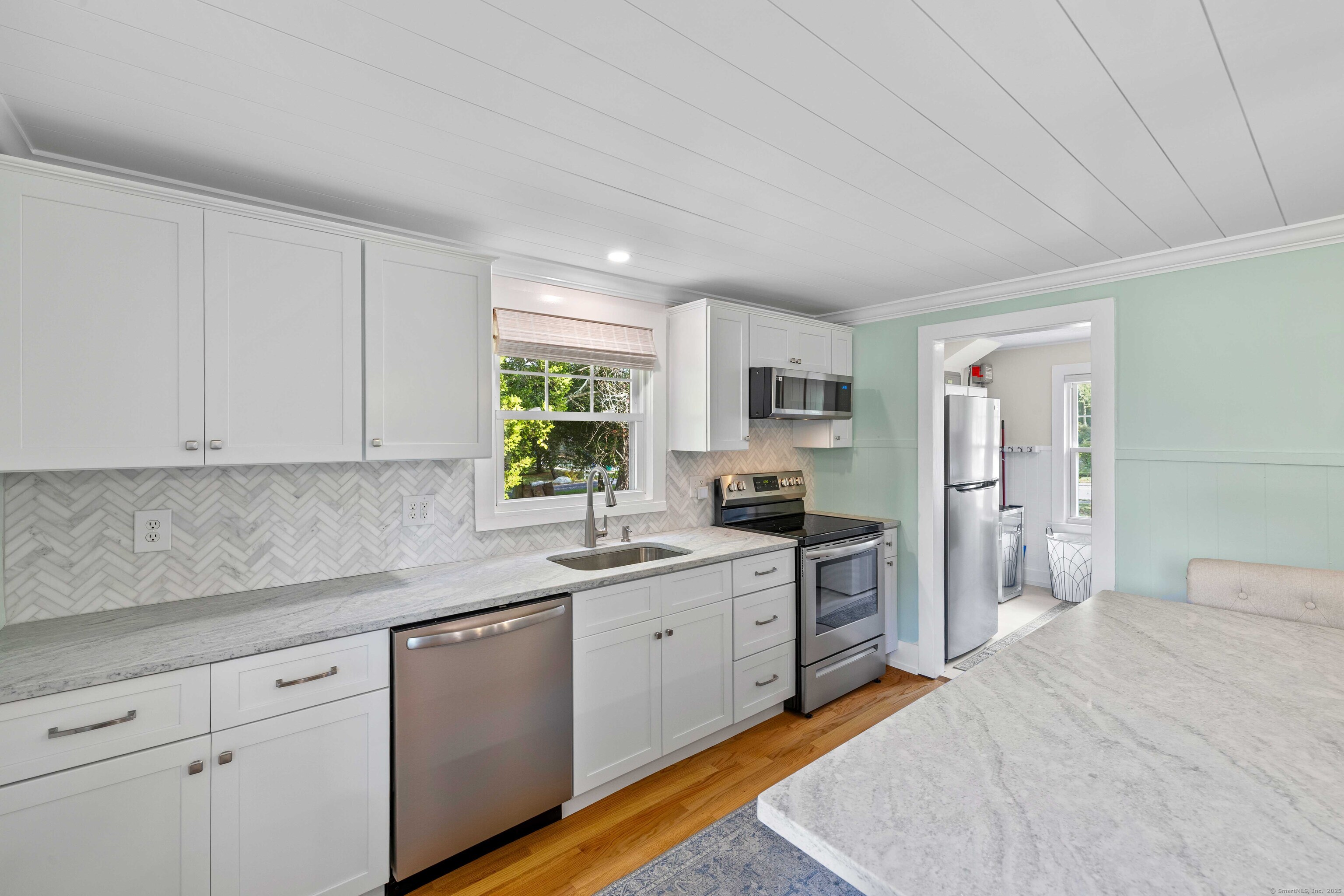 Price Reduction!!Coastal Living at Its Finest - Jordan Cove, Pleasure Beach Community. Time to embrace the shoreline lifestyle! Nestled in the highly desirable Pleasure Beach community of Waterford, this beautifully remodeled ranch style home sits just steps from Jordan Cove. Easily located between two major city's; New York City and Boston. You have Deeded right to Jordon Cove from this home, ready to launch a kayak or paddleboard right from your own path to the water and enjoy everything this special location has to offer. All you need is your beach towel, sunglasses, and sunscreen-then relax and enjoy! This home has been completely renovated from top to bottom with comfort and coastal charm in mind. The open floor plan features gleaming hardwood floors throughout, a bright and inviting living room perfect for entertaining, and a stunning kitchen with a large quartz center island and classic shaker-style cabinets. The bathroom is a true showpiece, featuring ship-lap accents and nautical touches that tie in perfectly with the seaside setting. Designed for easy, leisure living-this home is the perfect spot to unwind, entertain, and soak up the coastal lifestyle you've always dreamed of. This home comes with opportunities to expand if needed in years to come, with town approval! This home is down the road from town beach. This area of town offers; Great Neck Country Club, Eugene O'Neill Theatre, Harkness Memorial Park and Waterford Beach. No flood insurance needed!