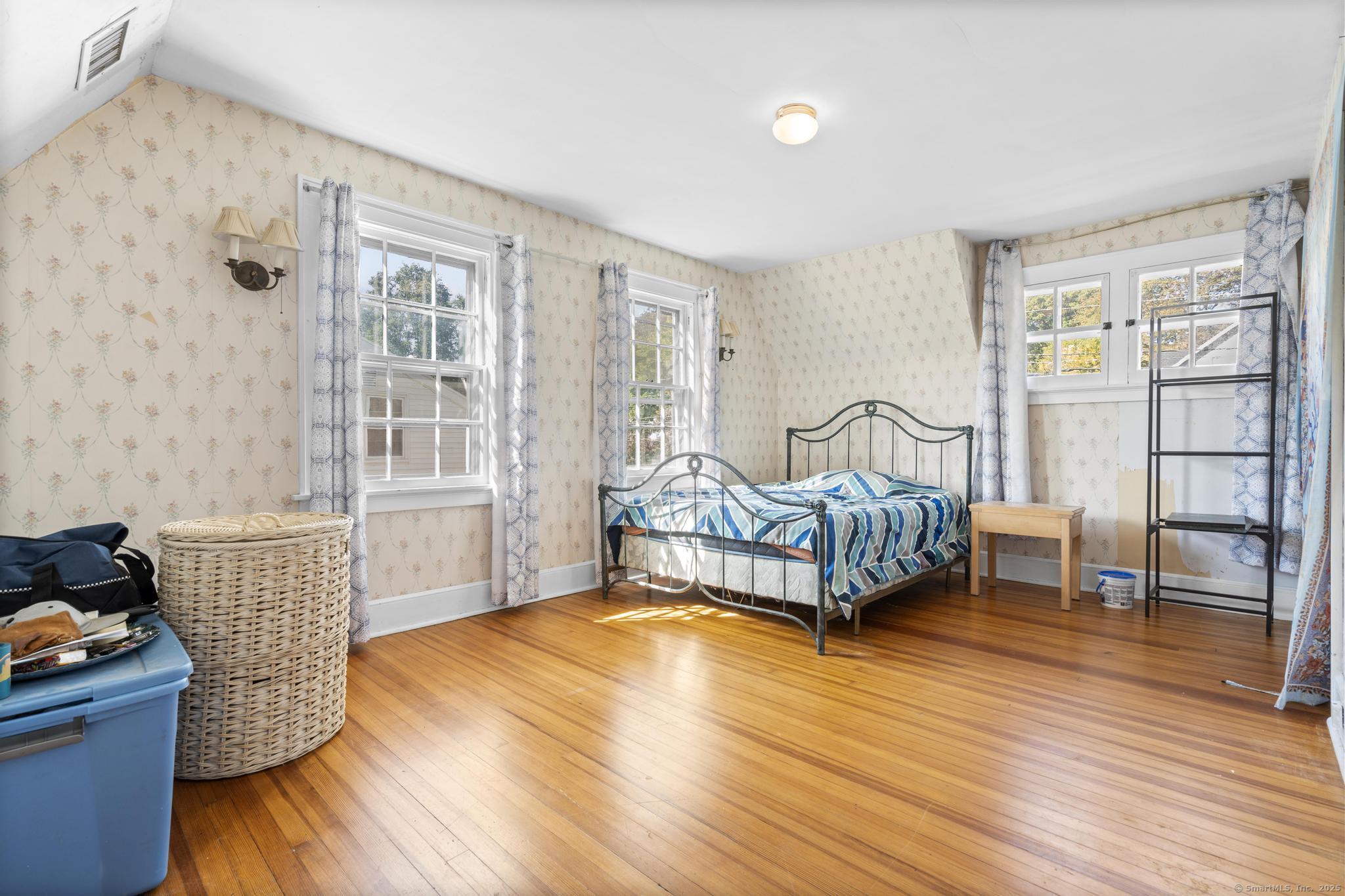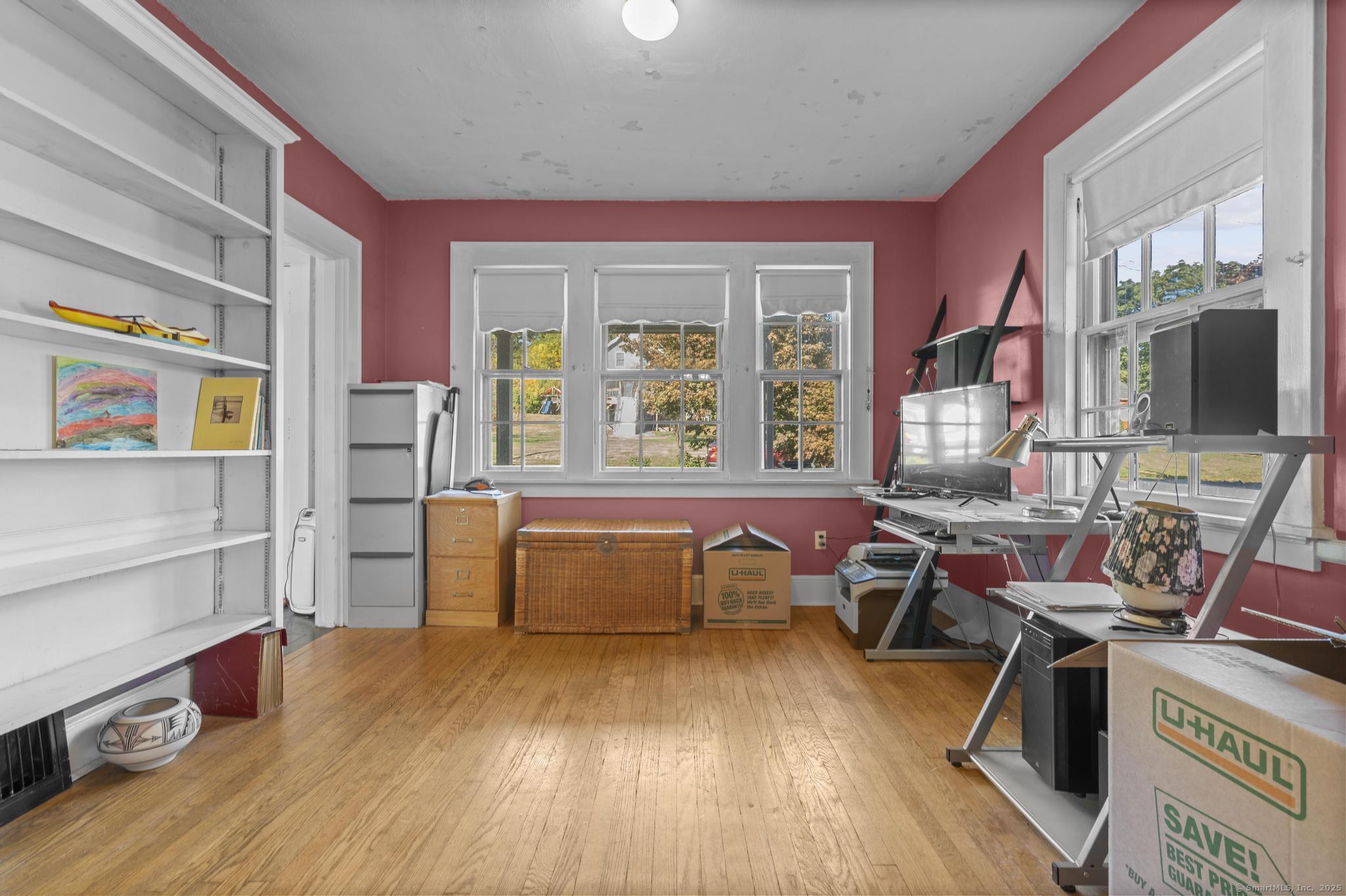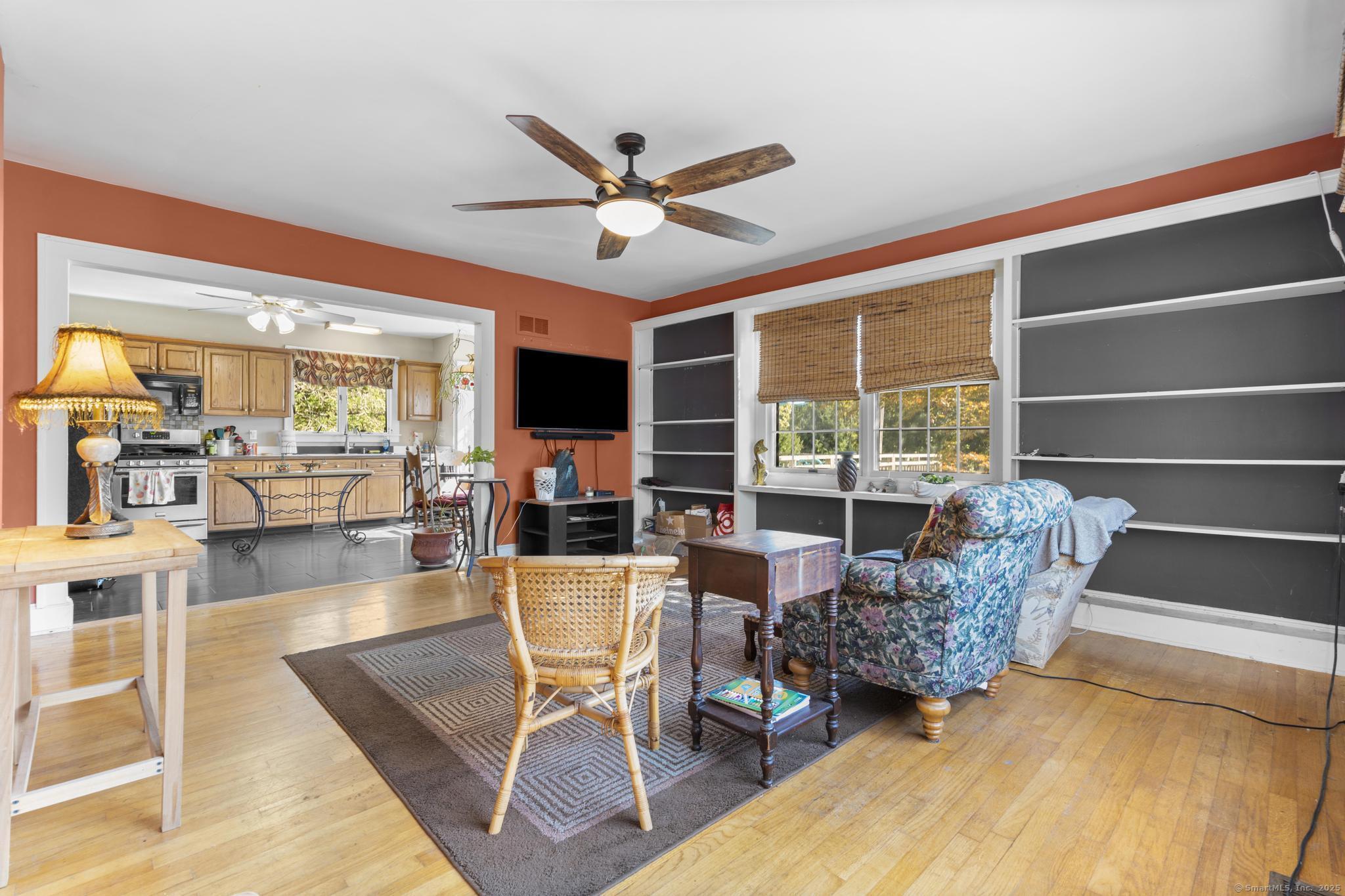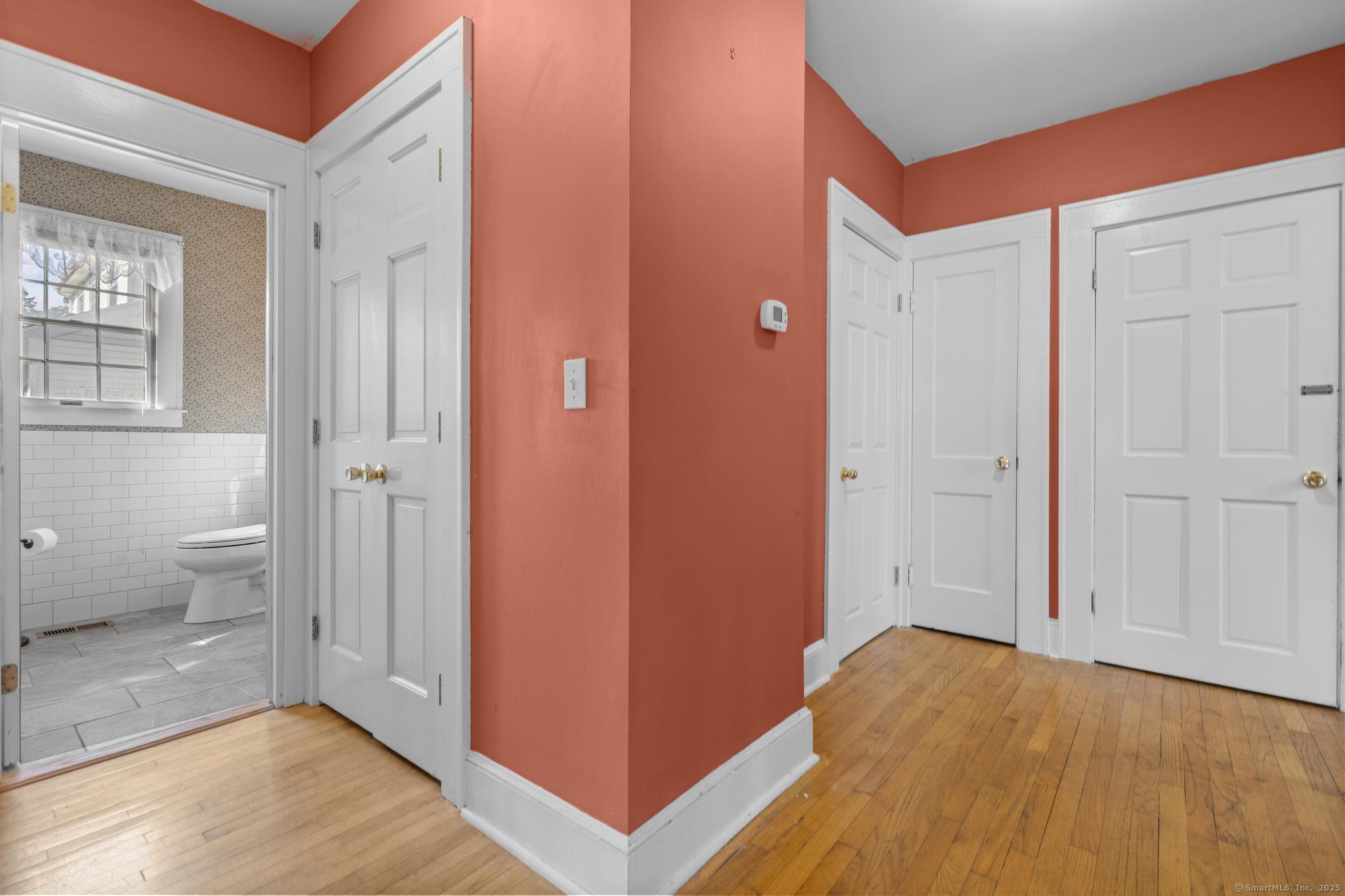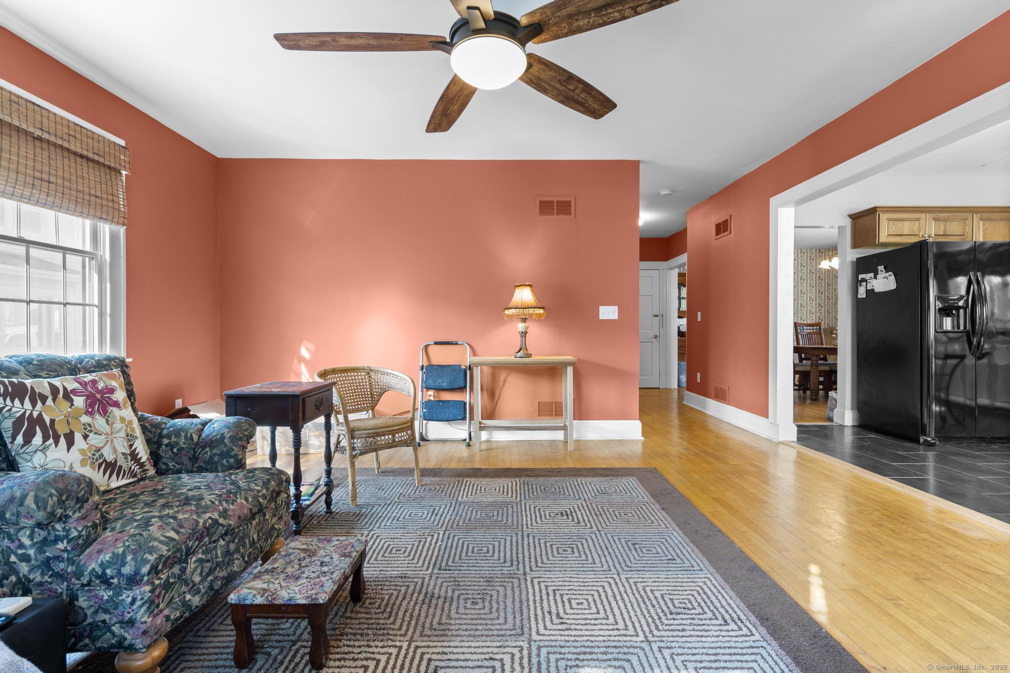 Charming three-bedroom, two-and-a-half-bath home located in Meriden's sought-after West End, just a short walk to beautiful Hubbard Park. The charming porch welcomes you to the home, complete with fans for summer afternoons. Inside, natural light pours through the large windows, highlighting the hardwood and tile flooring that runs throughout. French doors separate the entryway and living room as well as the library and dining room. The family room includes custom built-ins and flows into the kitchen. Upstairs, the oversized primary bedroom includes an ensuite bathroom and walk-in closet. Two more bedrooms and another full bathroom round out the level. The backyard includes a deck accessible from the kitchen for enjoying the morning sun while overlooking the spacious backyard. Set on over half an acre, this property offers a one-car detached garage, a recently re-paved driveway, ample closet space, and plenty of potential to customize and make it your forever home.