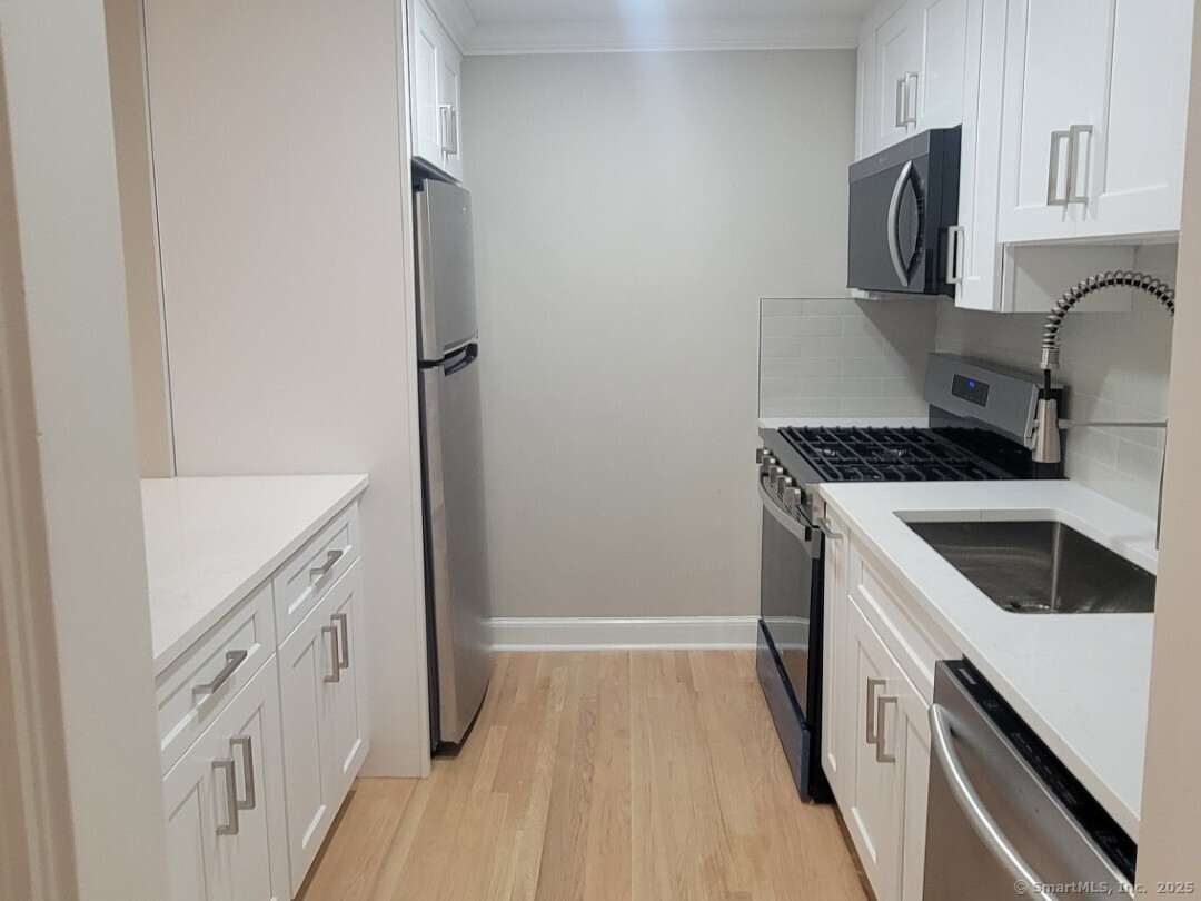 Welcome to this beautifully renovated condo! Extremely well maintained complex in a park-like setting with winding sidewalks ,a lovely fountain and an inviting in-ground pool. The open floor plan offers a sun filled living room with direct walkout to the courtyard, a brand new kitchen with quartz counters, a breakfast bar and stainless appliances. The spacious bedroom includes a large closet with built-ins.Additional features include refinished hardwood floors throughout, central air and a beautifully updated bathroom. HEAT AND HOT WATER INCLUDED IN RENT.
