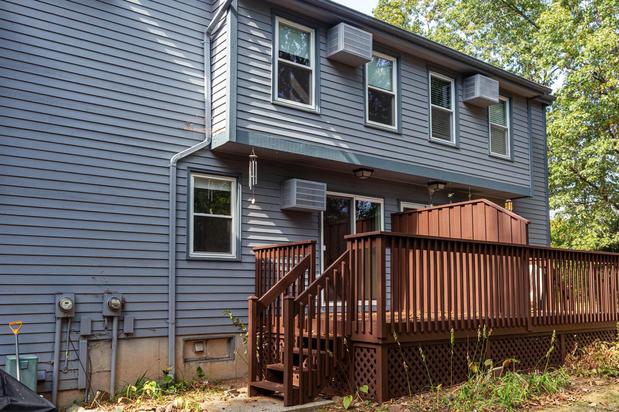 Rarely available 2 BR, 1.1 bath unit with finished basement in Ellington Ridge. This sunny and bright condo has hardwood floors and modern paint on the first floor. The eat-in kitchen has ample cabinet and counter space with a slider to a deck that faces the woods. There is a half bath as well. Upstairs has new carpet. The primary BR has a built in A/C unit and double closets. The 2nd BR has a ceiling fan and walk-in closet. The main bathroom has been renovated with a walk-in shower, new vanity, floor, and toilet. The basement has a finished, heated room plus there is an unfinished area for storage and laundry. Why rent when you can own?! This complex is FHA APPROVED!
