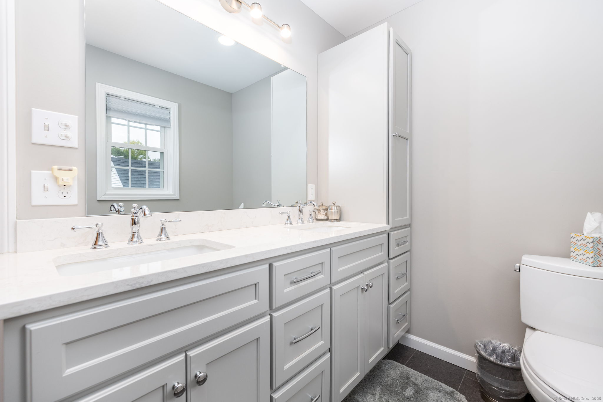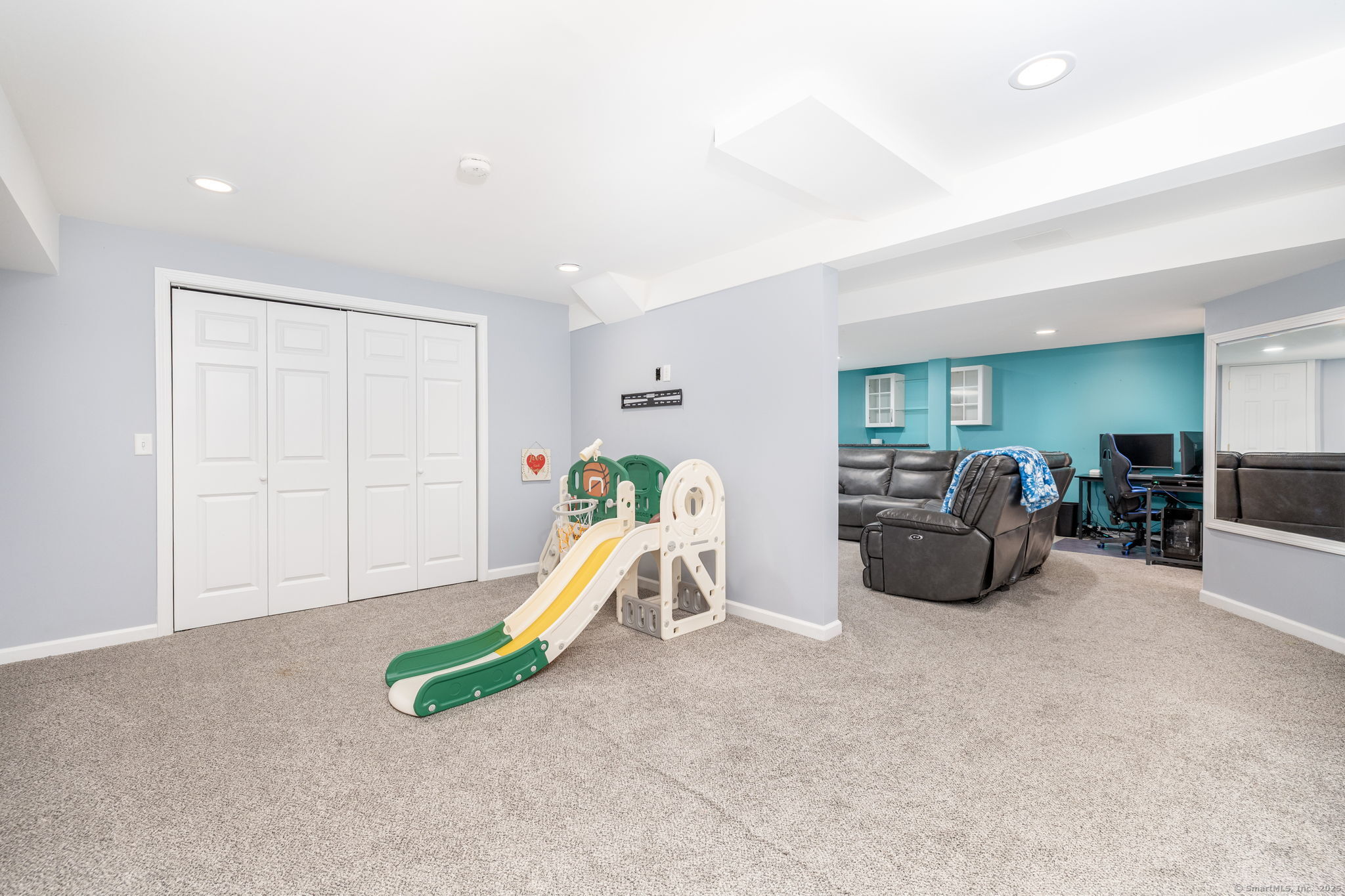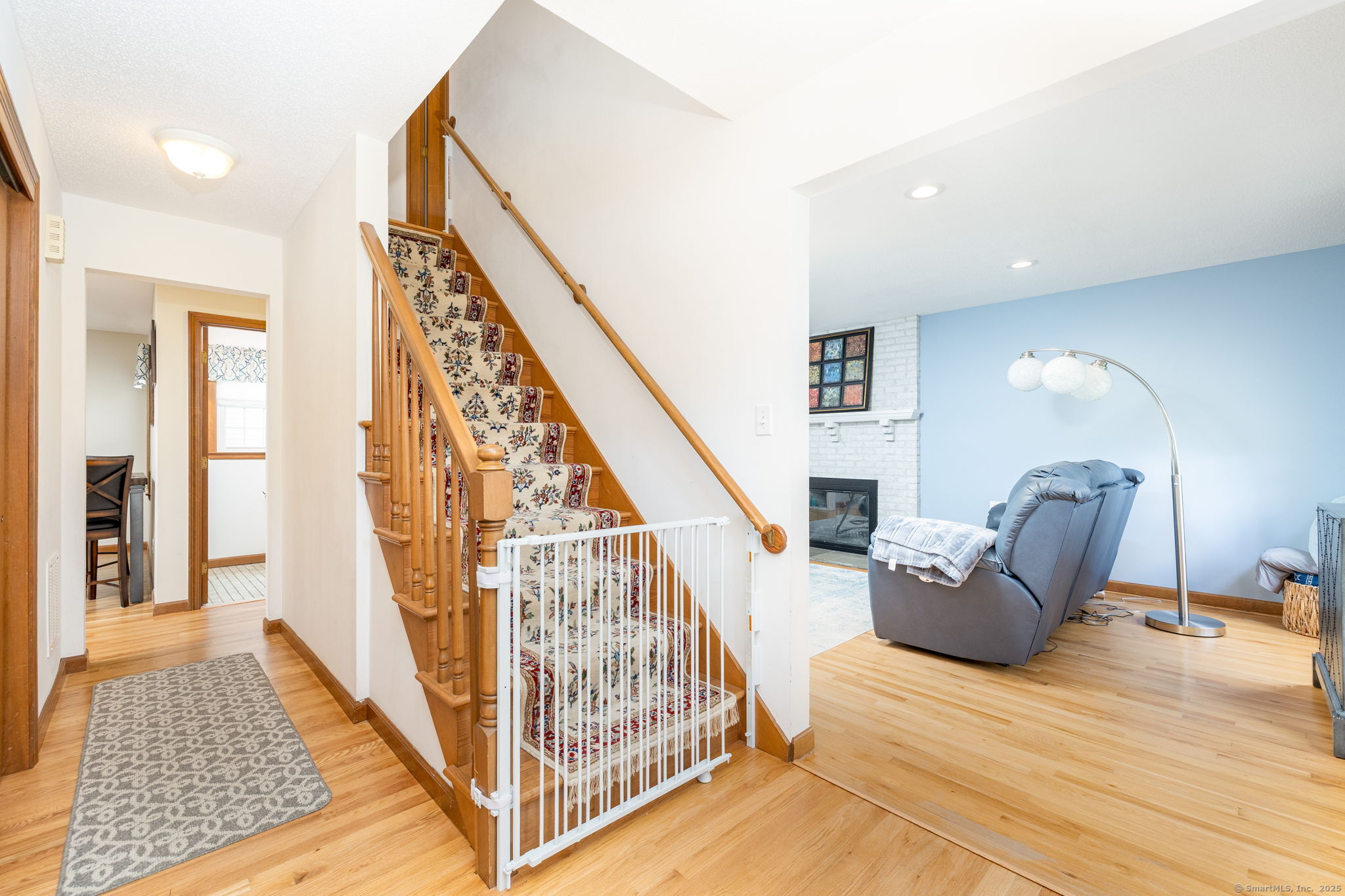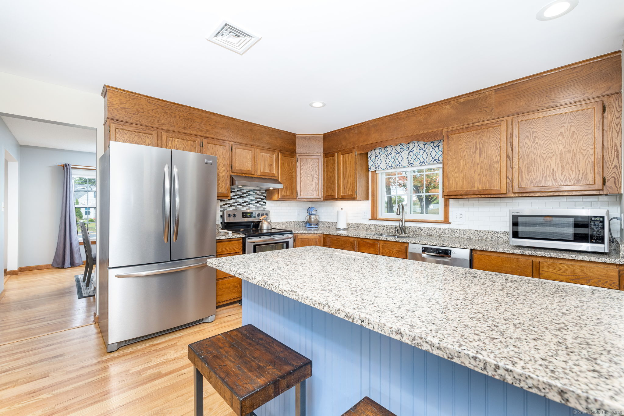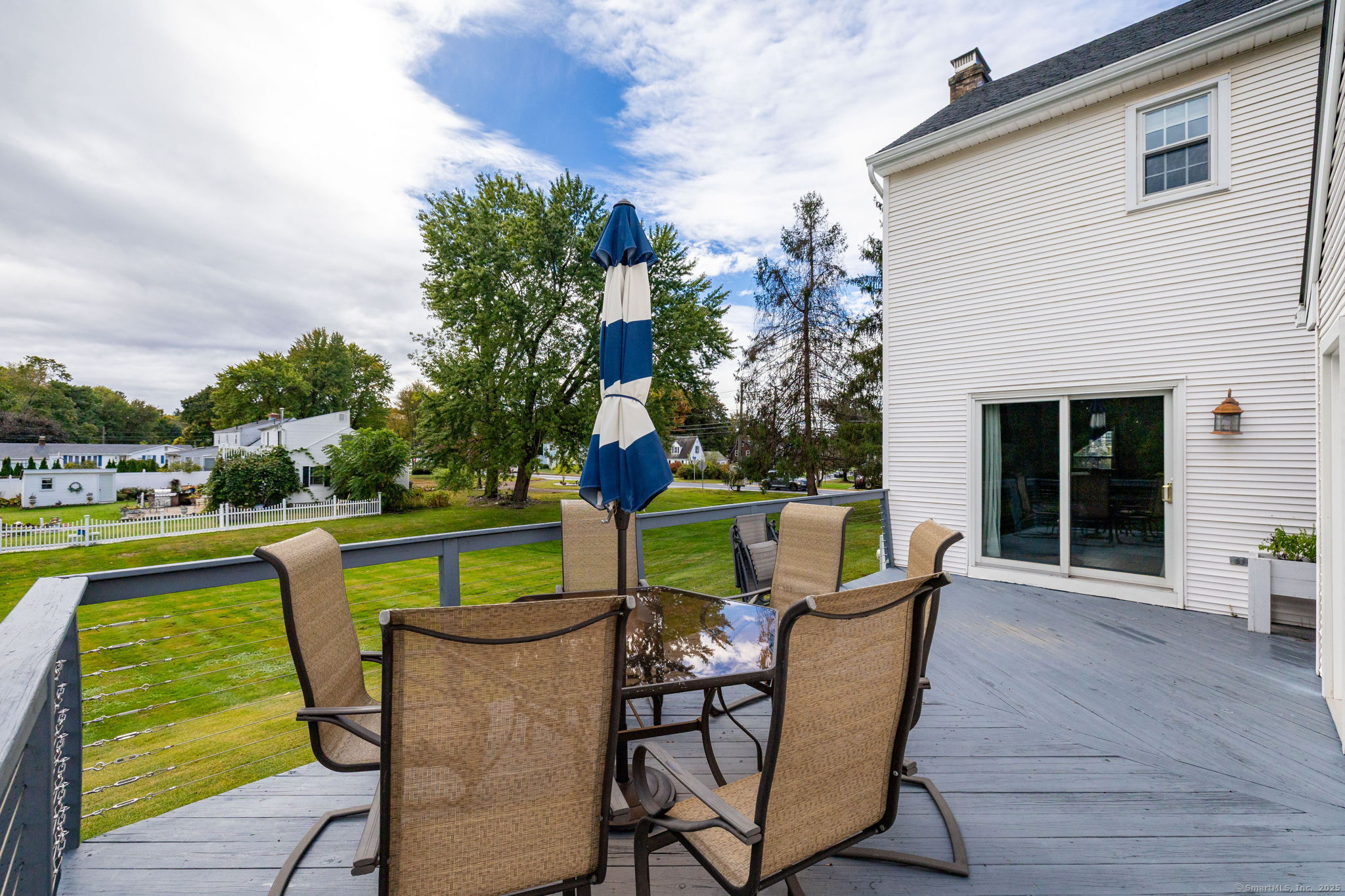 Welcome to this beautifully maintained Classic Colonial offering 1,872 square feet of living space in one of Newington's most convenient cul-de-sac locations. This home features three bedrooms, 2 full baths and 2 half-baths with hardwood floors throughout. Main level boasts a large eat-in Kitchen w/granite counters & island, front-to-back Living Room w/fireplace & sliders to oversized deck, a bright formal Dining Room & half-bath. Upstairs you will love the three spacious Bedrooms-all with great closet space and full bath. Huge Primary Bedroom Suite w/ walk-in closet has awesome remodeled full Bath that adds a touch of modern luxury! The large finished lower level provides two adjoining rooms w/versatile space for entertaining and/or a playroom. This sparkling home has a truly comfortable and well-designed layout- perfect for today's lifestyle and with plenty of room for everyone! Enjoy peace of mind with a newer roof, newer central air system. thermal windows and natural gas heating. Excellent closet storage on all levels as well as ample basement and attic storage. Expansive backyard is ideal for outdoor dining, relaxing, or hosting gatherings. Located just minutes from downtown Newington, you'll love the easy access to local shops, restaurants, parks, and highways. Don't miss the opportunity to make this beautiful Newington Colonial your next home--move right in and enjoy comfort, space, and convenience in a prime location.