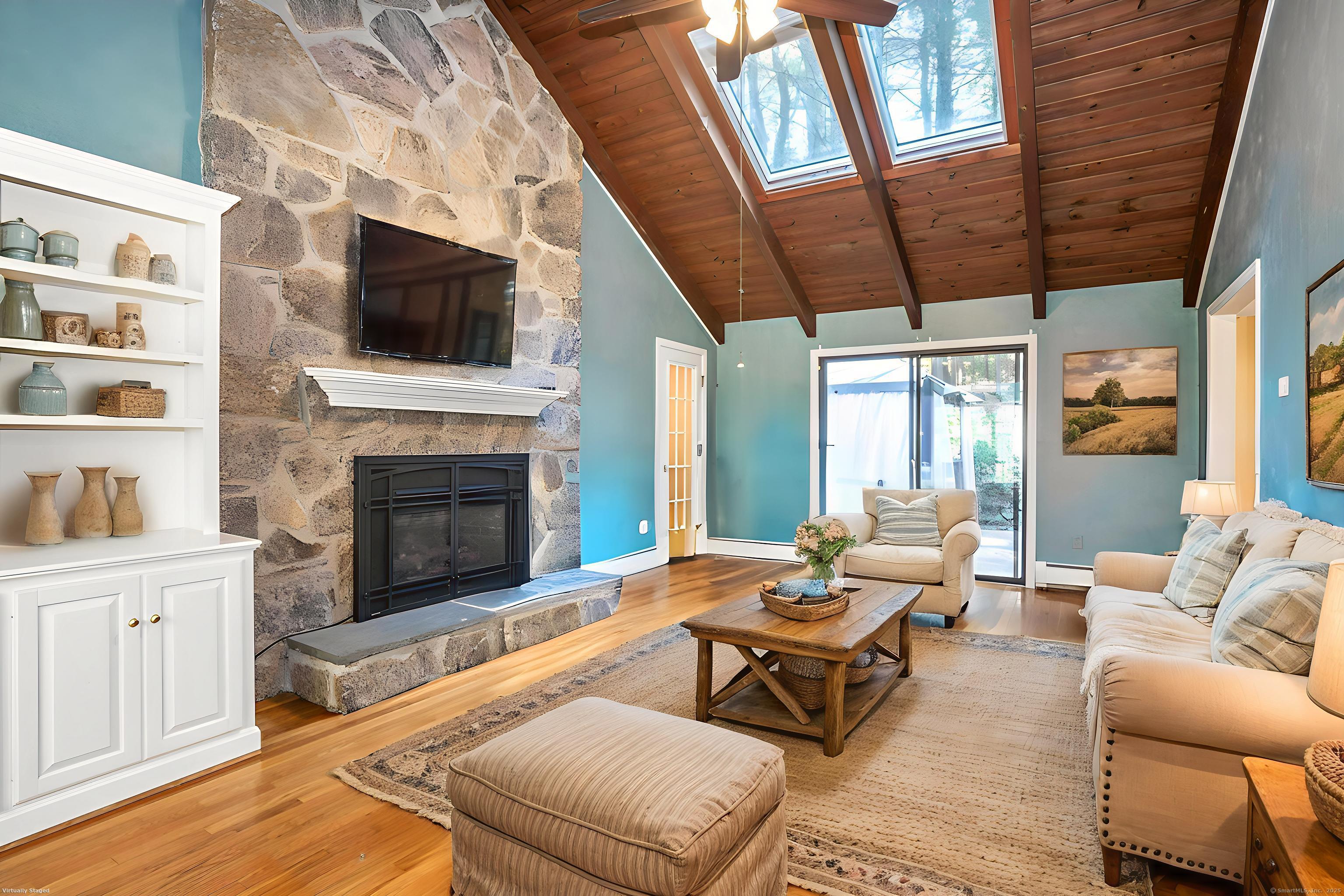Welcome home to this classic 4-bedroom colonial set on a private lot in the desirable Fox Den neighborhood of West Simsbury. A charming front porch, circular driveway, and blooming rose garden create a warm and inviting first impression. Inside, the first floor features a spacious family room with a fireplace, custom built-ins, and a soaring cathedral ceiling. The kitchen opens to a formal dining room, perfect for entertaining, while the bright living room offers a second fireplace for cozy gatherings. A convenient first-floor laundry room completes this level. Upstairs, you'll find a sun-filled primary bedroom with a full bath, hardwood floors, and a walk-in closet, along with three additional bedrooms-all with hardwood floors-and a full hall bath. Step outside to the private deck and gazebo, the ideal spot for relaxing or hosting family and friends. Enjoy a wonderful location near local parks, Simsbury High School, Simsbury Farms Recreation Center, and just minutes from downtown Simsbury's award-winning restaurants, shops, public library, Simsbury Meadows Performing Arts Center, and the Old Drake Hill Flower Bridge.
