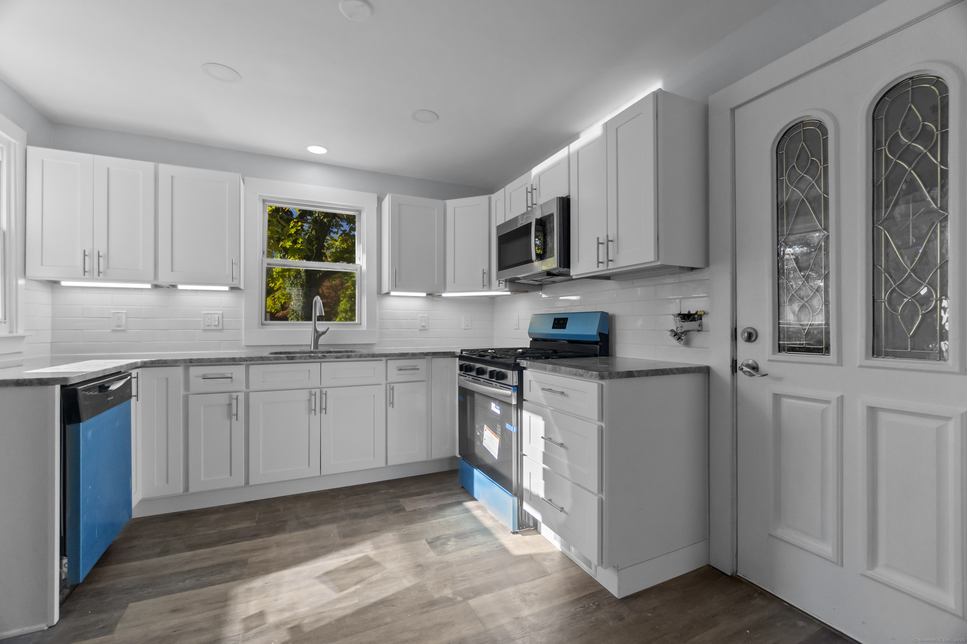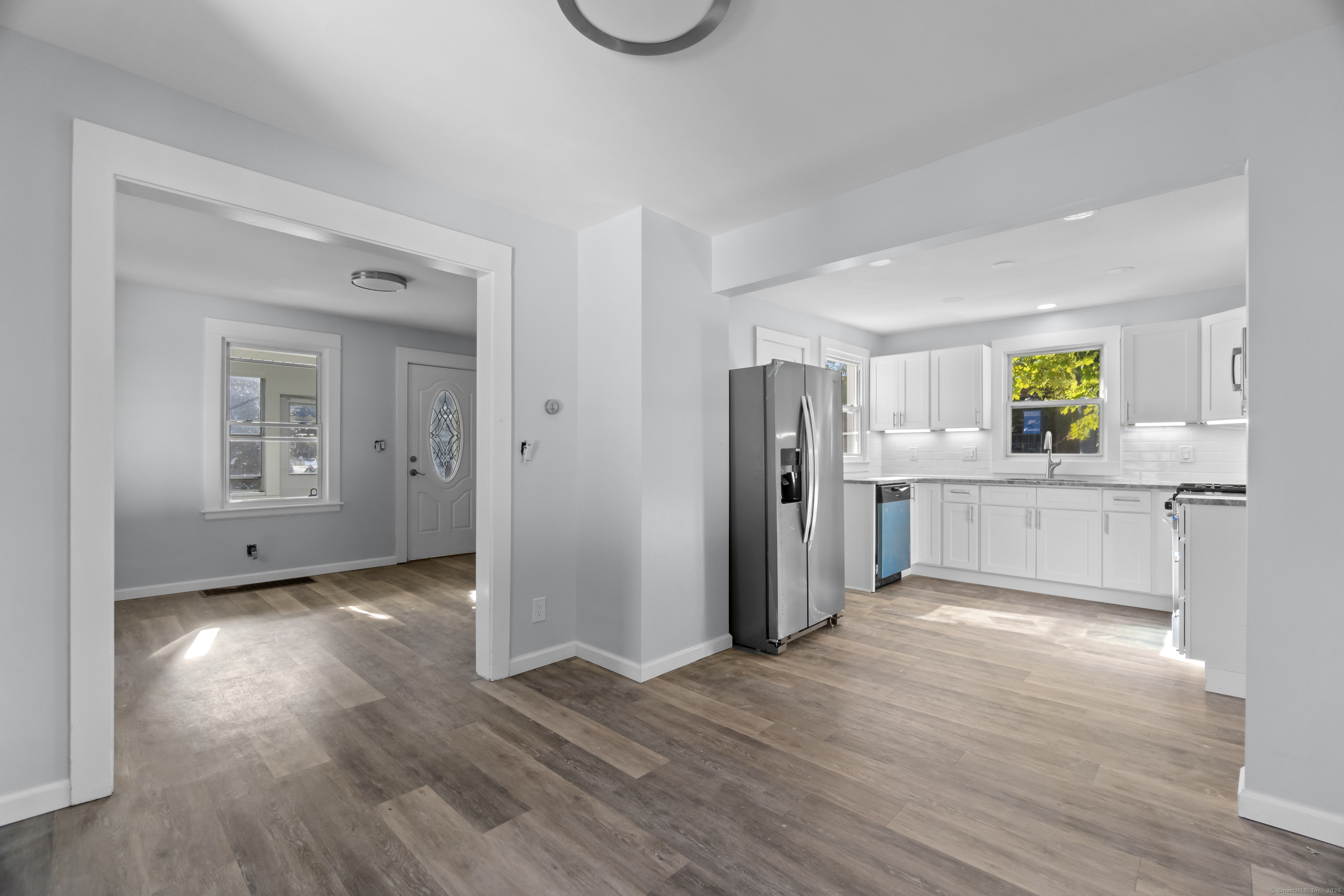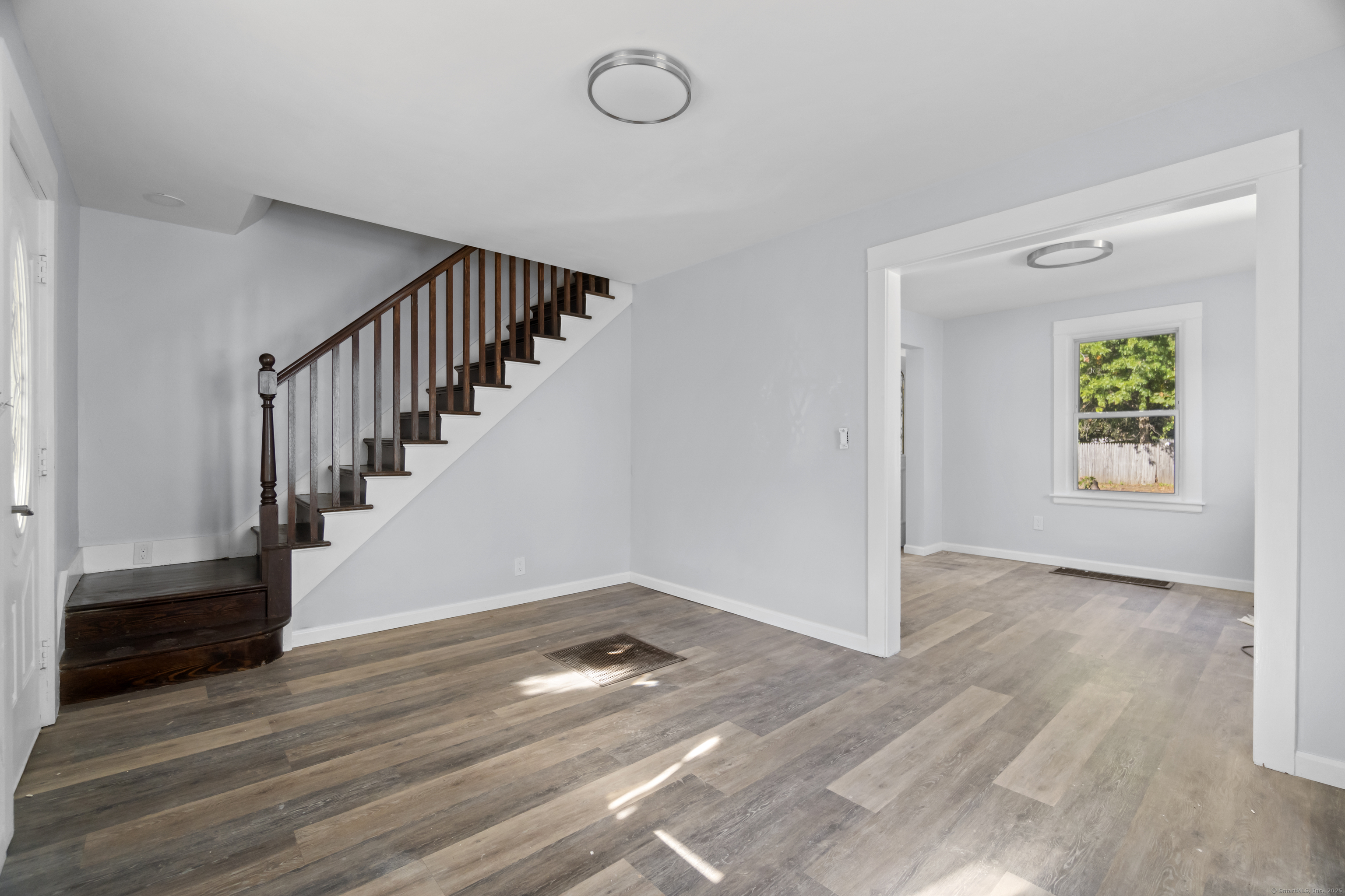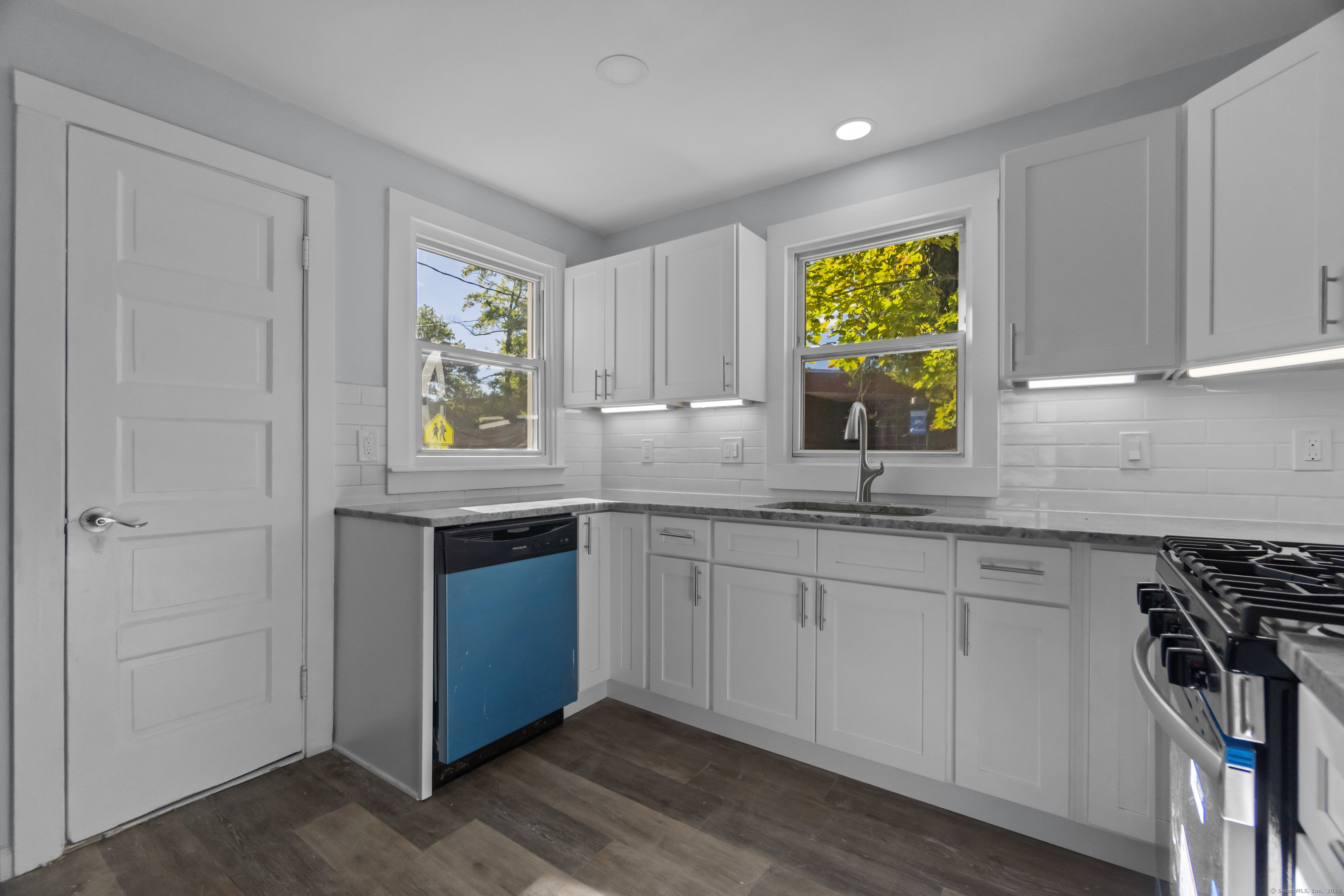 Welcome home! This beautifully renovated two-bedroom, one-bath home is move-in ready and waiting for its new owners. Step inside to gorgeous wood floors flowing through the living and dining areas. The updated kitchen showcases brand-new granite countertops, modern cabinetry, stainless steel appliances, and fresh flooring. Upstairs, you'll find a fully renovated bathroom and two bedrooms, each featuring new flooring. The basement includes a washer and dryer along with plenty of storage space. Outside, enjoy a spacious backyard complete with a large shed-perfect for all your lawn and garden needs. Whether you're a first-time buyer or looking to downsize, this charming home offers comfort, style, and convenience!