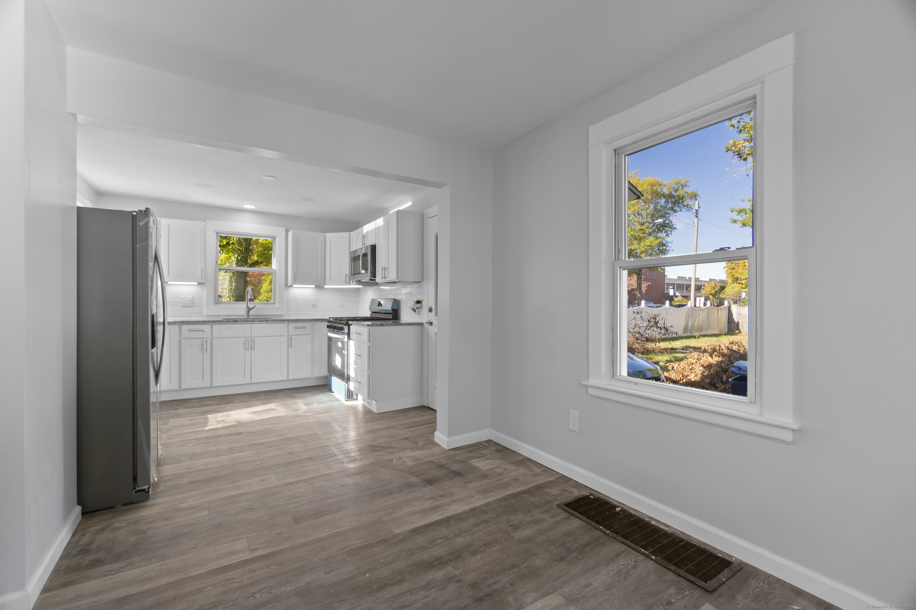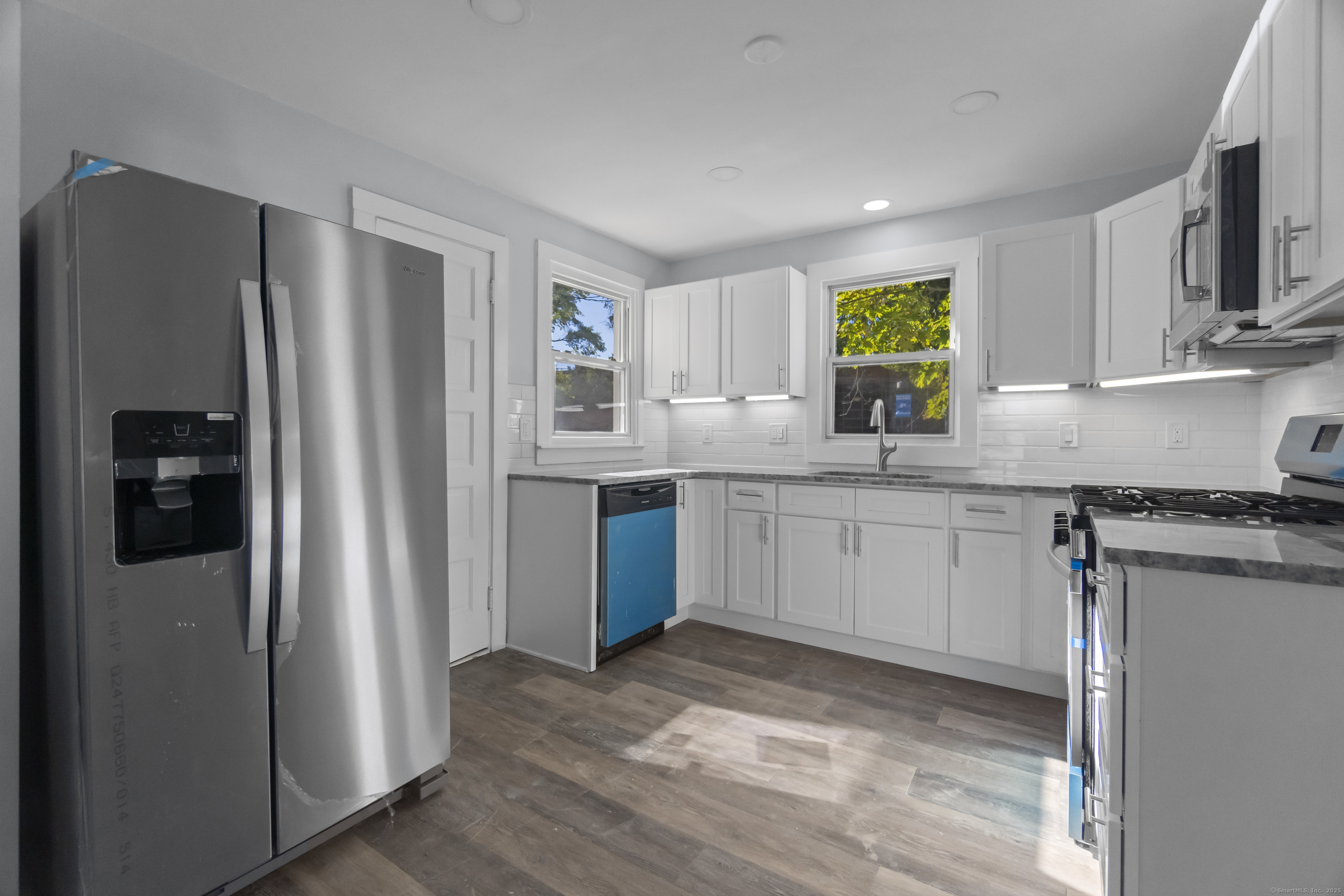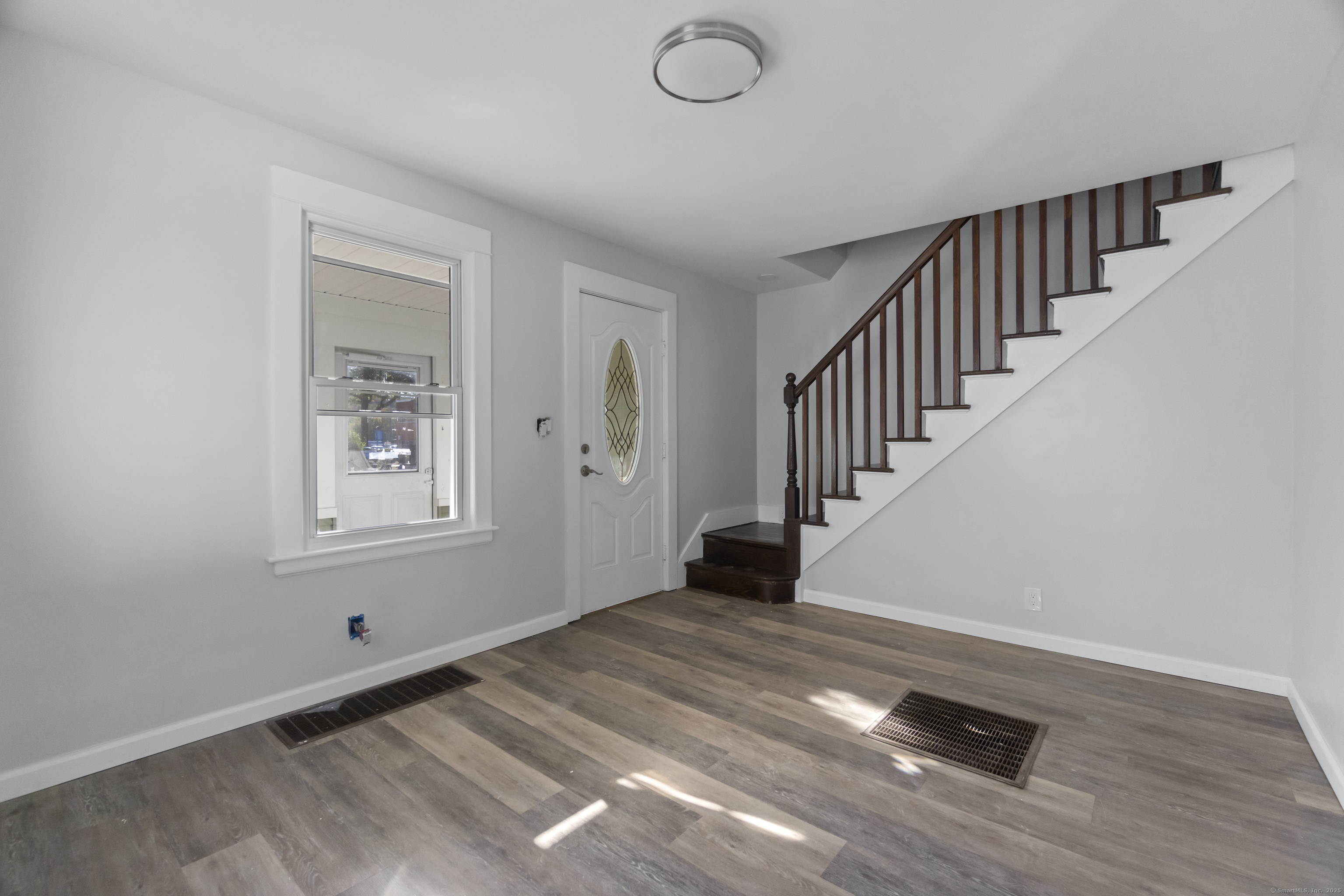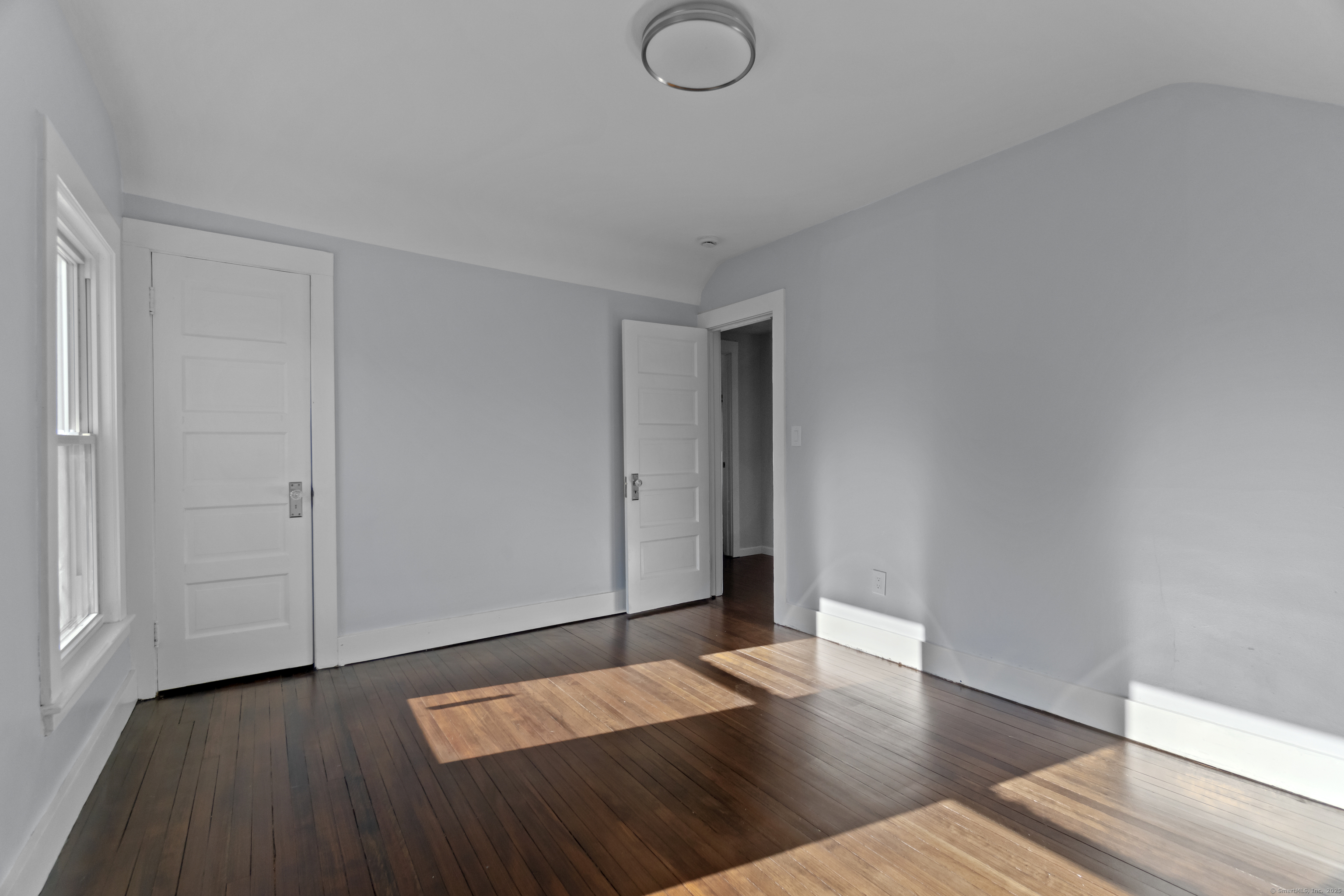 Welcome home! This beautifully renovated two-bedroom, one-bath home is move-in ready and waiting for its new owners. Step inside to gorgeous wood floors flowing through the living and dining areas. The updated kitchen showcases brand-new granite countertops, modern cabinetry, stainless steel appliances, and fresh flooring. Upstairs, you'll find a fully renovated bathroom and two bedrooms, each featuring new flooring. The basement includes a washer and dryer along with plenty of storage space. Outside, enjoy a spacious backyard complete with a large shed-perfect for all your lawn and garden needs. Whether you're a first-time buyer or looking to downsize, this charming home offers comfort, style, and convenience!