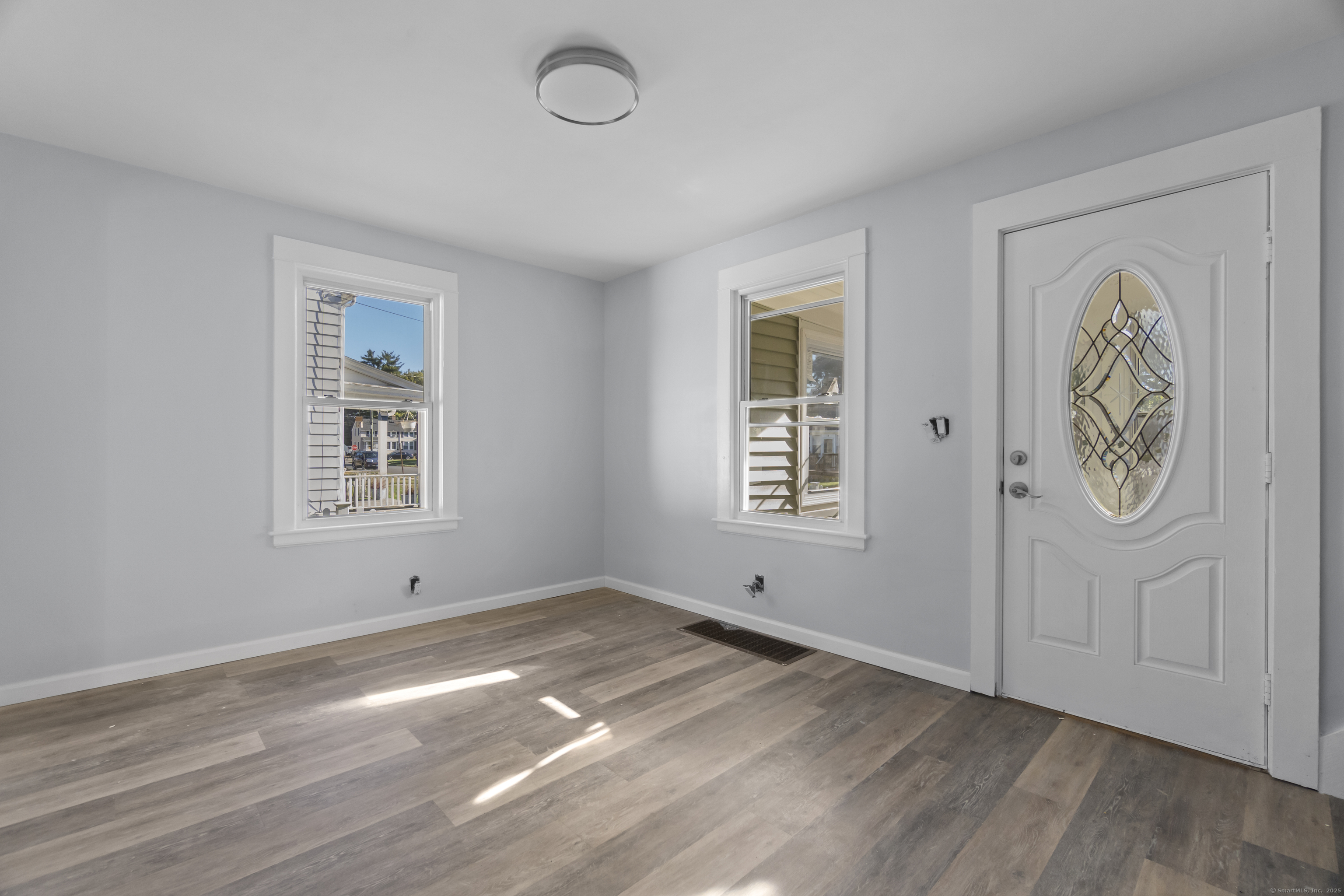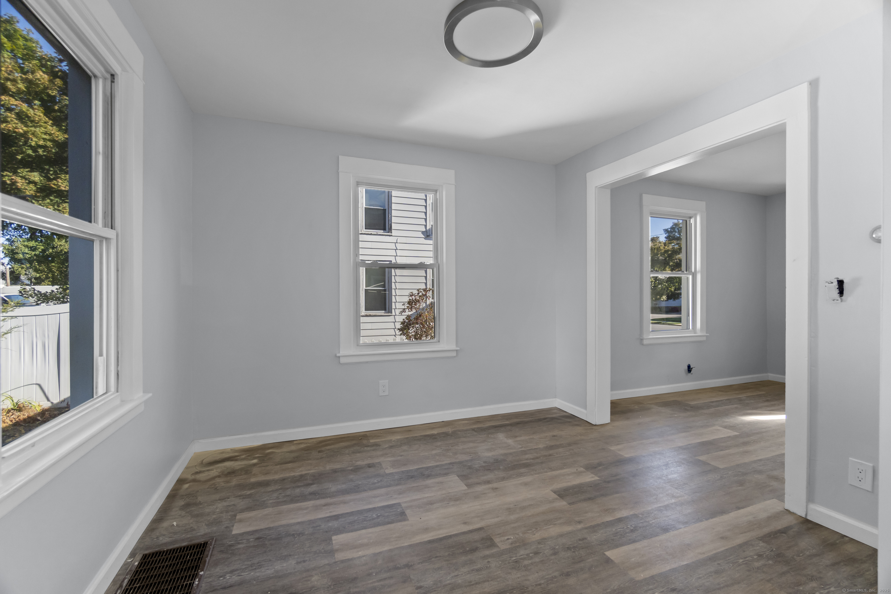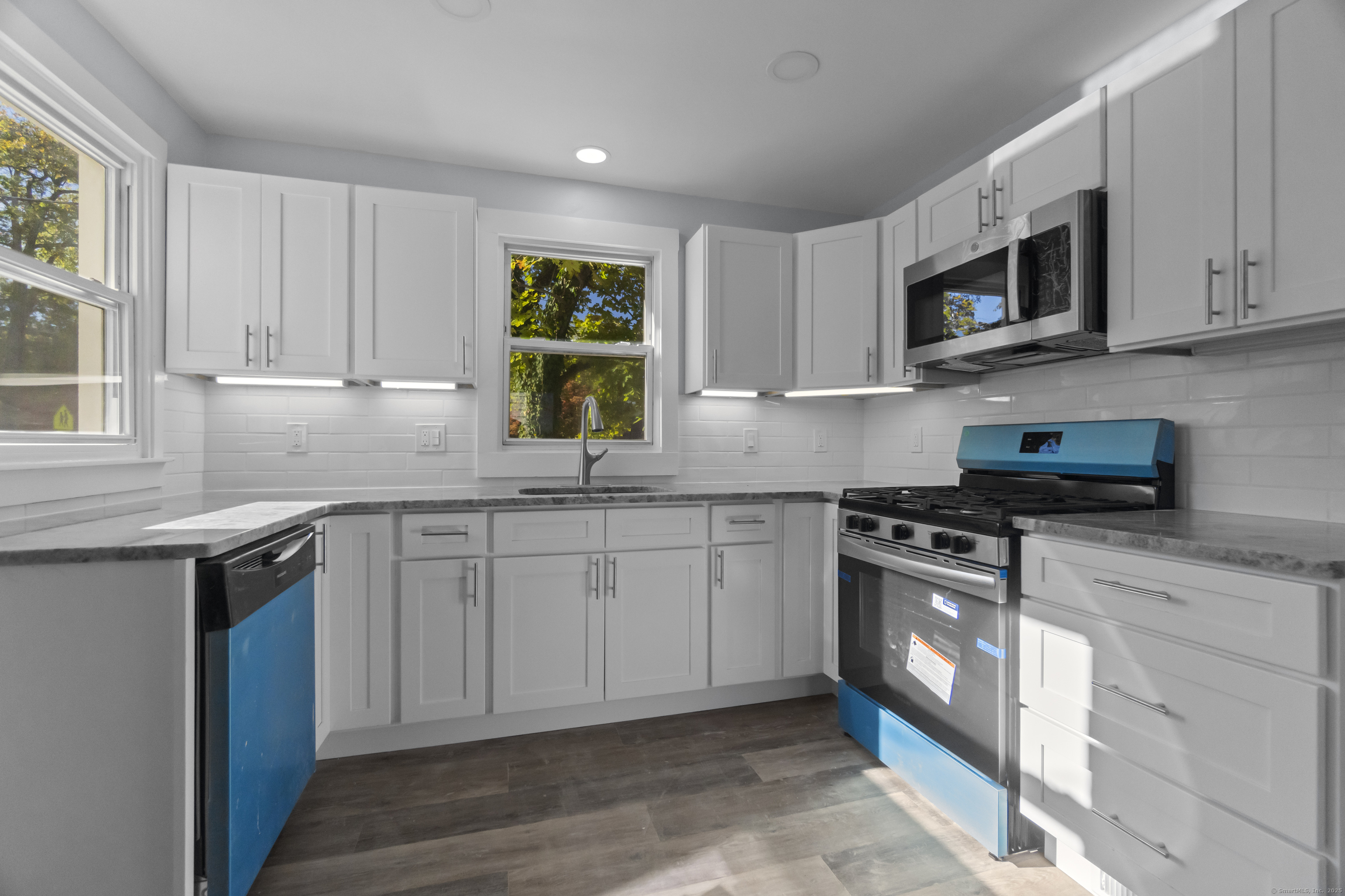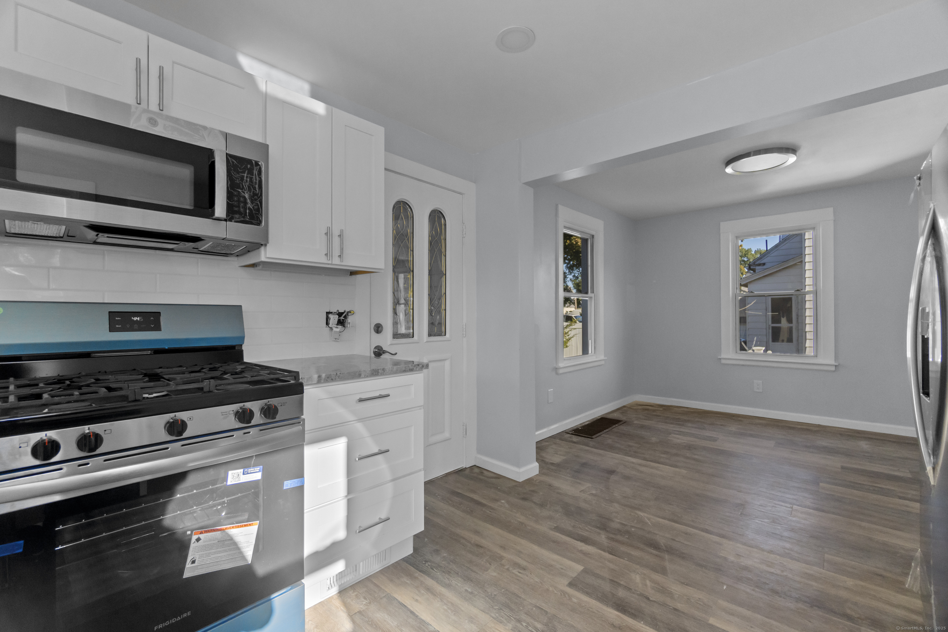 Welcome home! This beautifully renovated two-bedroom, one-bath home is move-in ready and waiting for its new owners. Step inside to gorgeous wood floors flowing through the living and dining areas. The updated kitchen showcases brand-new granite countertops, modern cabinetry, stainless steel appliances, and fresh flooring. Upstairs, you'll find a fully renovated bathroom and two bedrooms, each featuring new flooring. The basement includes a washer and dryer along with plenty of storage space. Outside, enjoy a spacious backyard complete with a large shed-perfect for all your lawn and garden needs. Whether you're a first-time buyer or looking to downsize, this charming home offers comfort, style, and convenience!