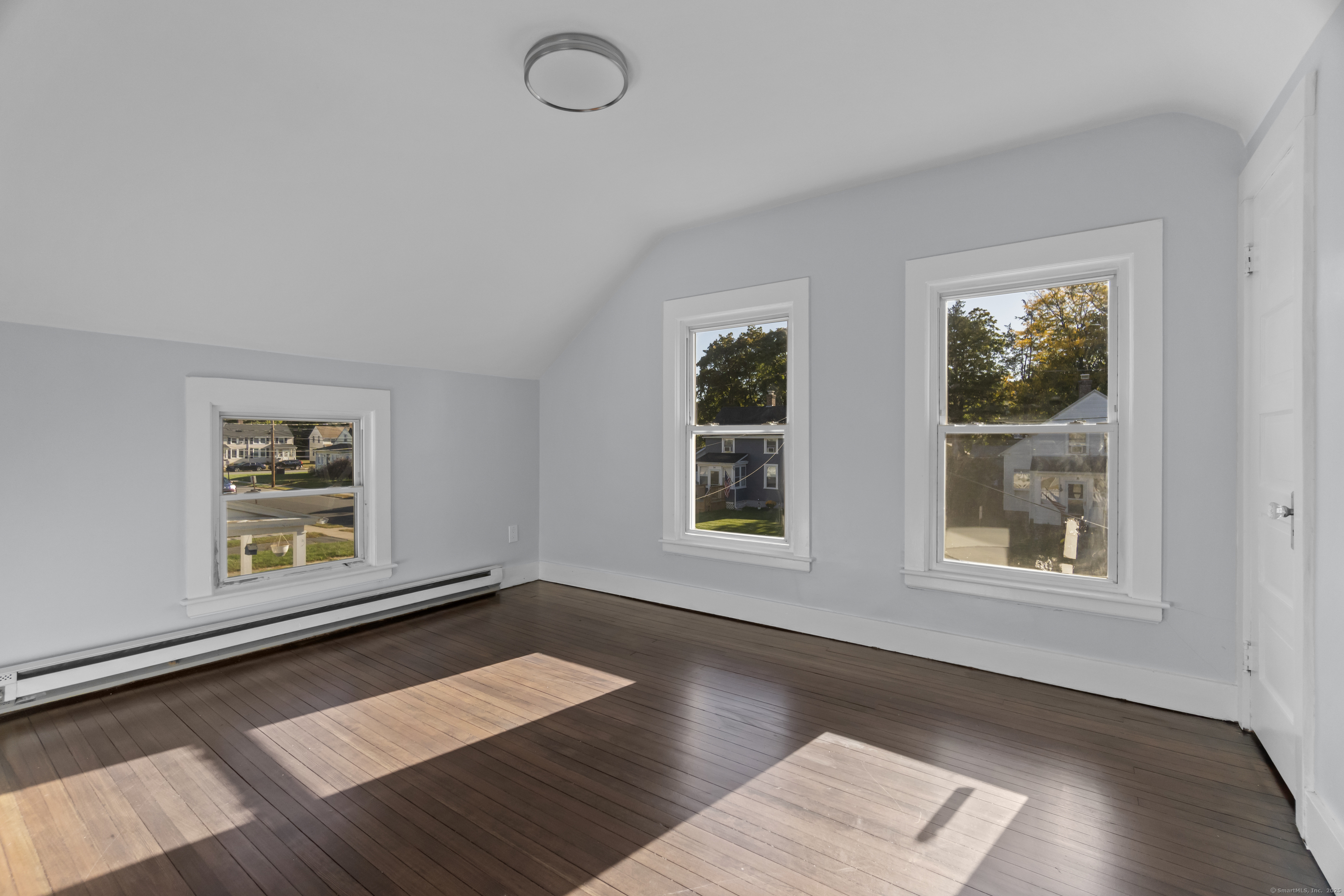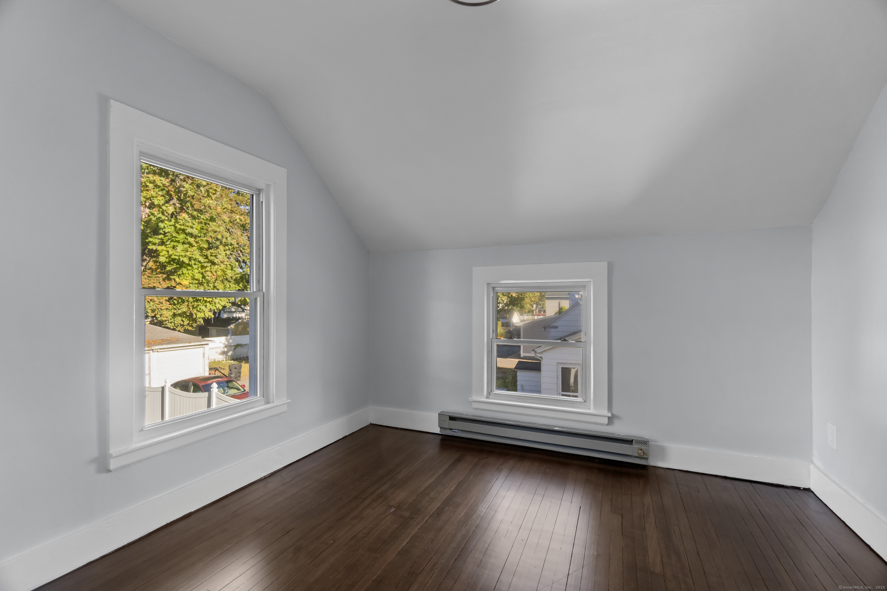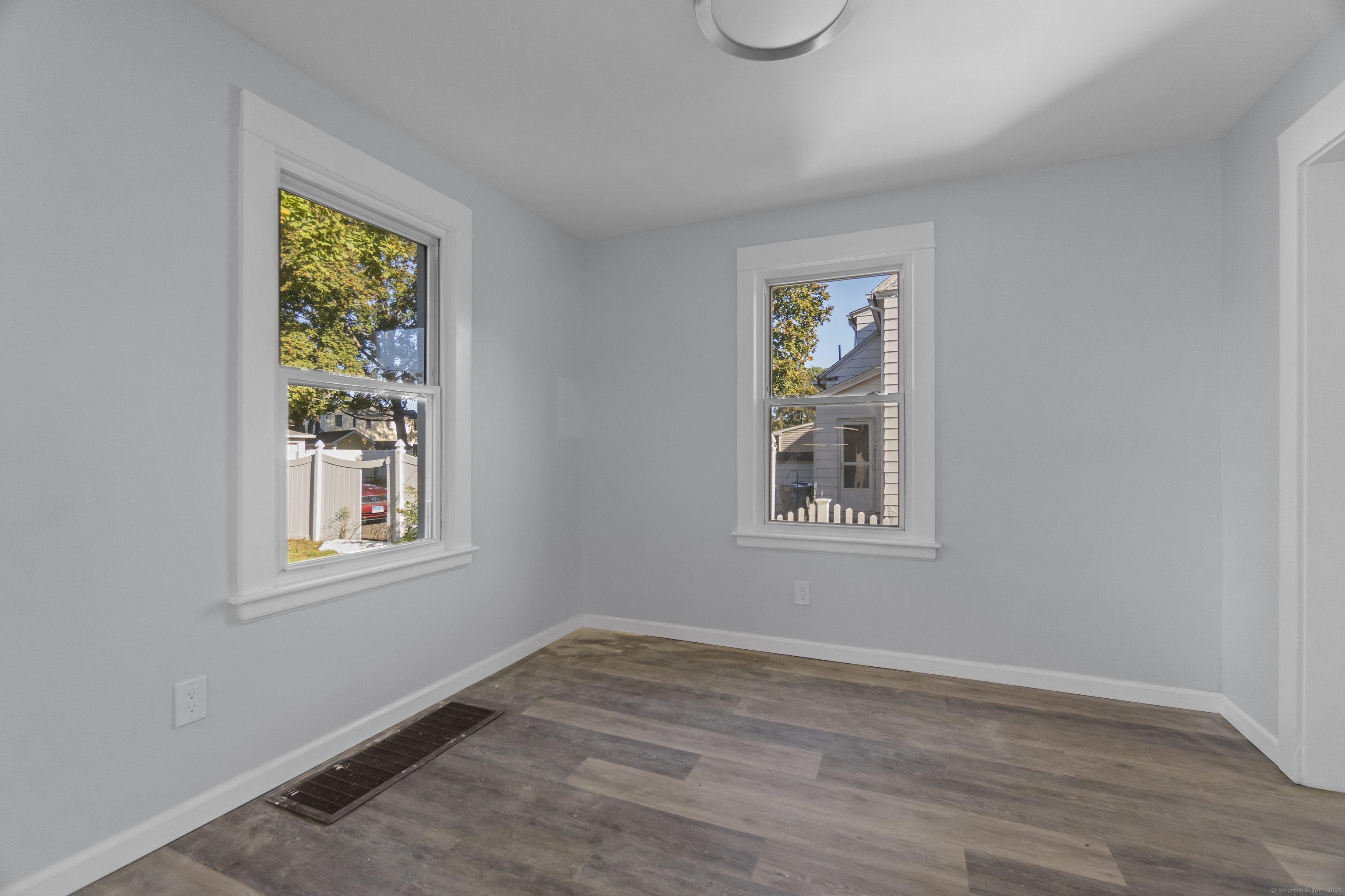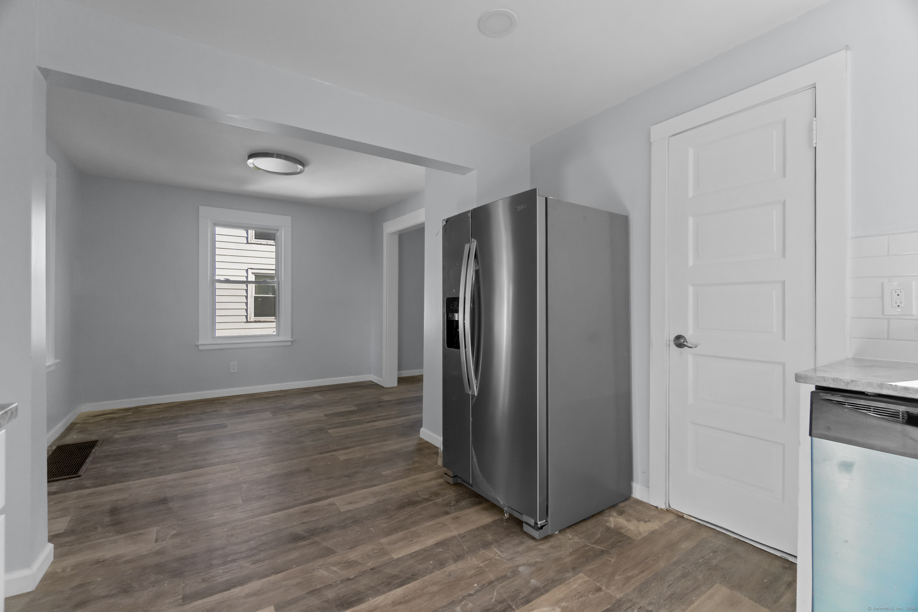 Welcome home! This beautifully renovated two-bedroom, one-bath home is move-in ready and waiting for its new owners. Step inside to gorgeous wood floors flowing through the living and dining areas. The updated kitchen showcases brand-new granite countertops, modern cabinetry, stainless steel appliances, and fresh flooring. Upstairs, you'll find a fully renovated bathroom and two bedrooms, each featuring new flooring. The basement includes a washer and dryer along with plenty of storage space. Outside, enjoy a spacious backyard complete with a large shed-perfect for all your lawn and garden needs. Whether you're a first-time buyer or looking to downsize, this charming home offers comfort, style, and convenience!