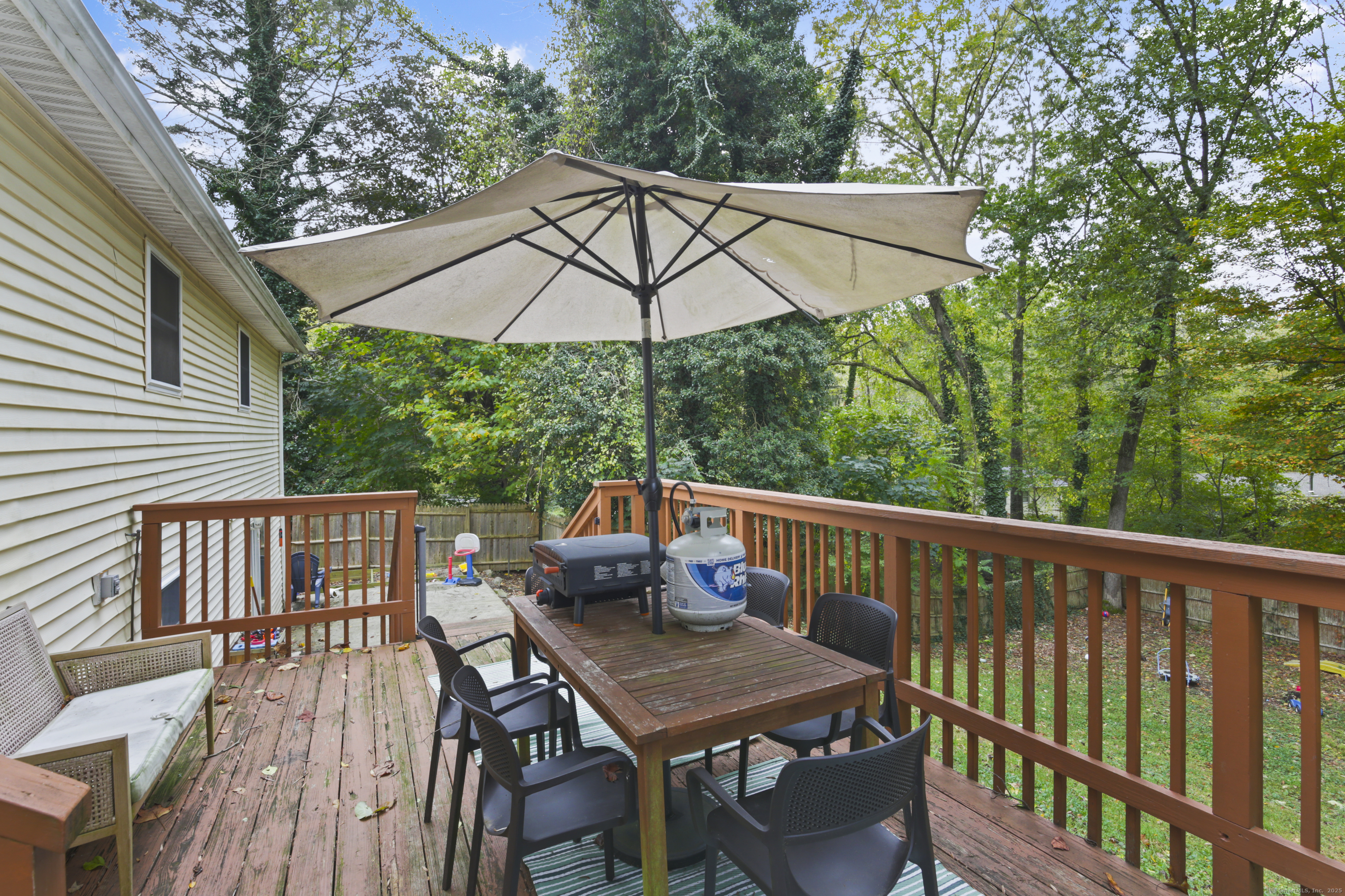 This beautifully updated 3/4-bedroom, 2-full bath home offers 1800+ sq ft of living space. Move right in with a newer roof, remodeled baths, and modern updates throughout. The main level showcases hardwood floors, a cozy gas fireplace in the living room, a large eat-in kitchen with granite counters, stainless steel appliances & gas cooking. The lower level features a spacious 25x12 family room, full bath, laundry room, and a flexible room perfect as a study or 4th bedroom. A slider from the beautifully finished lower-level leads directly to the patio ideal for quiet relaxation. Outdoor living is enhanced with a deck overlooking the fully fenced in yard, great for entertaining. Nestled in the desirable Christy Hill subdivision, this lovely ranch blends privacy with convenience. You'll enjoy easy access to everyday amenities, schools, EB, Subbase, Casinos, and all major routes and highways. Don't let this one get away!