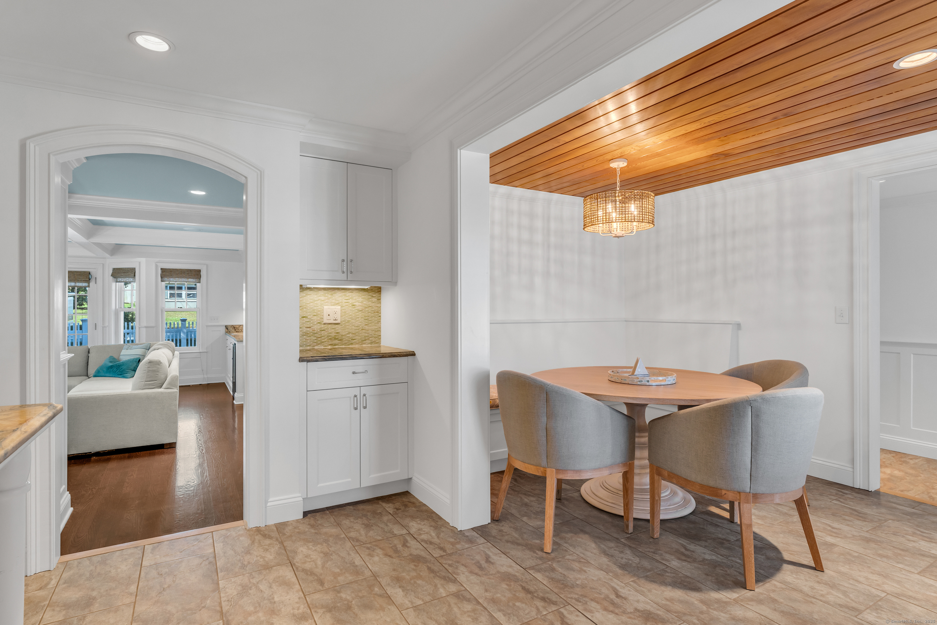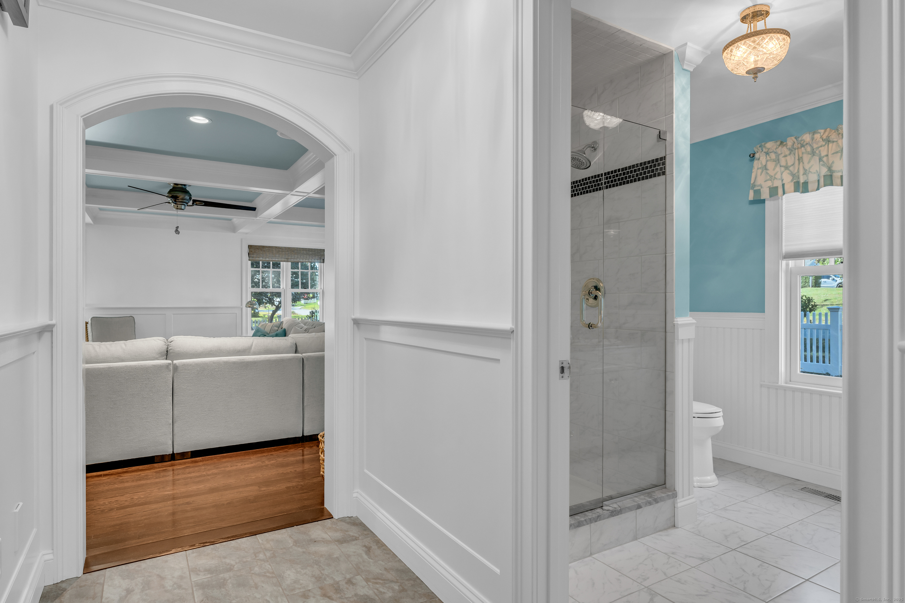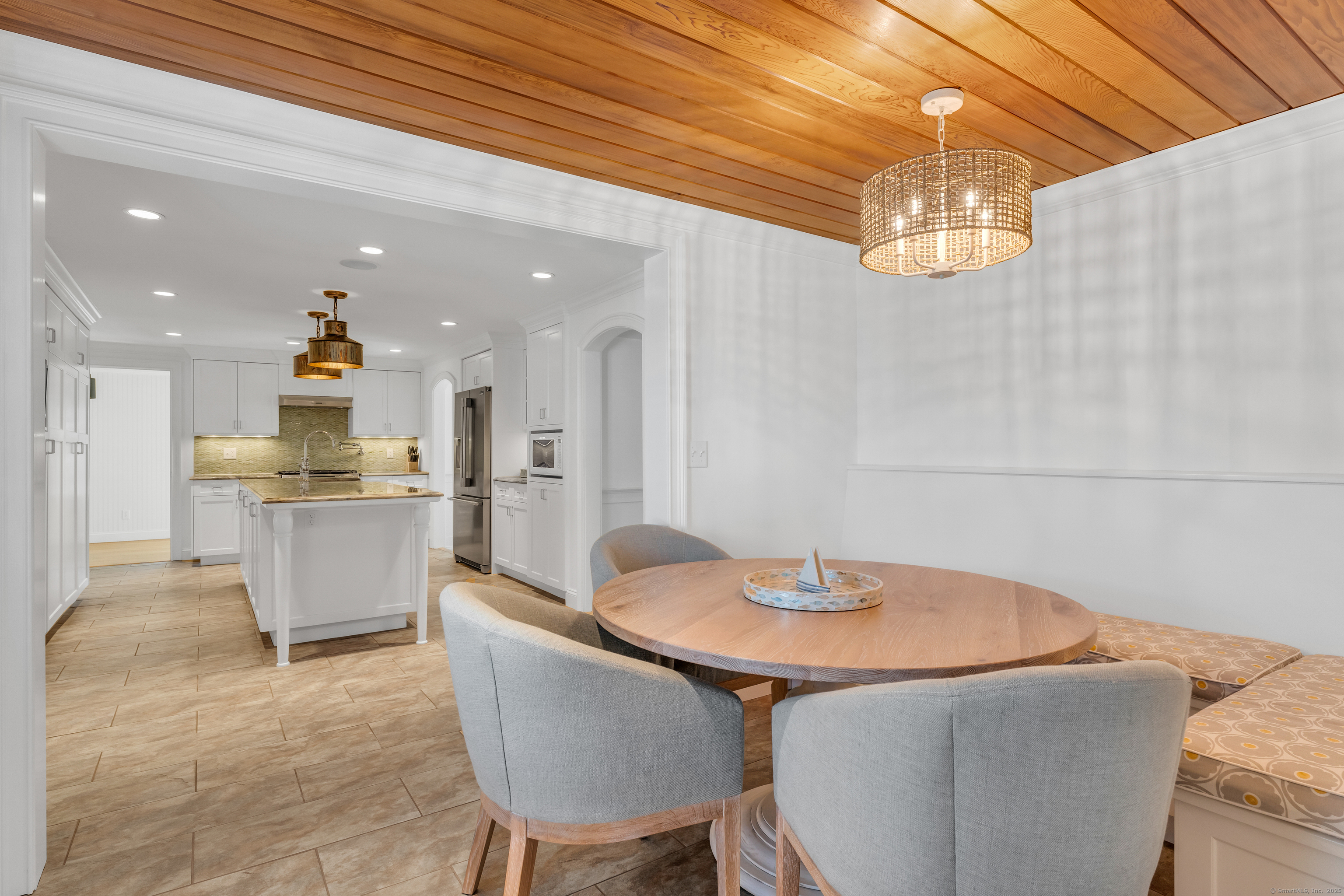 Inspired by the architecture, the homeowner has designed a sophisticated retreat that embodies the feeling of living in a vacation home year round.....Situated on almost 1/4 professionally landscaped acre, this 5 bedroom home comes with a private patio, deck and garden area for outdoor entertaining and was rebuilt in 2012 and reflects double square footage. Generously sized rooms with chic updates include a gas fireplace, wet bar, bookcased Living room, Eat-in kitchen with custom cabinetry and breakfast built-in table. Formal/Casual dining area is the heart of the family designed for seating of 12. The second floor master suite retreat has a home office and luxurious bath with soaking tub and double shower. Accessed by two staircases, the four additional bedrooms have built-ins and walk-in closets all with sunfilled windows with distant waterviews of the beach. The lower level can be finished for playroom or gym and ample storage in the tandam 2-garage. Steps to beach and kayak launch. Association has available programs at the clubhouse, a playscape, tennis, bocci, pickleball courts and gourmet beach store serving breakfast and lunch. Village of Niantic has award winning restaurants, marinas, boardwalk, museum and easy access to I-95 corridor with 2 hr commute to Boston or NYC.