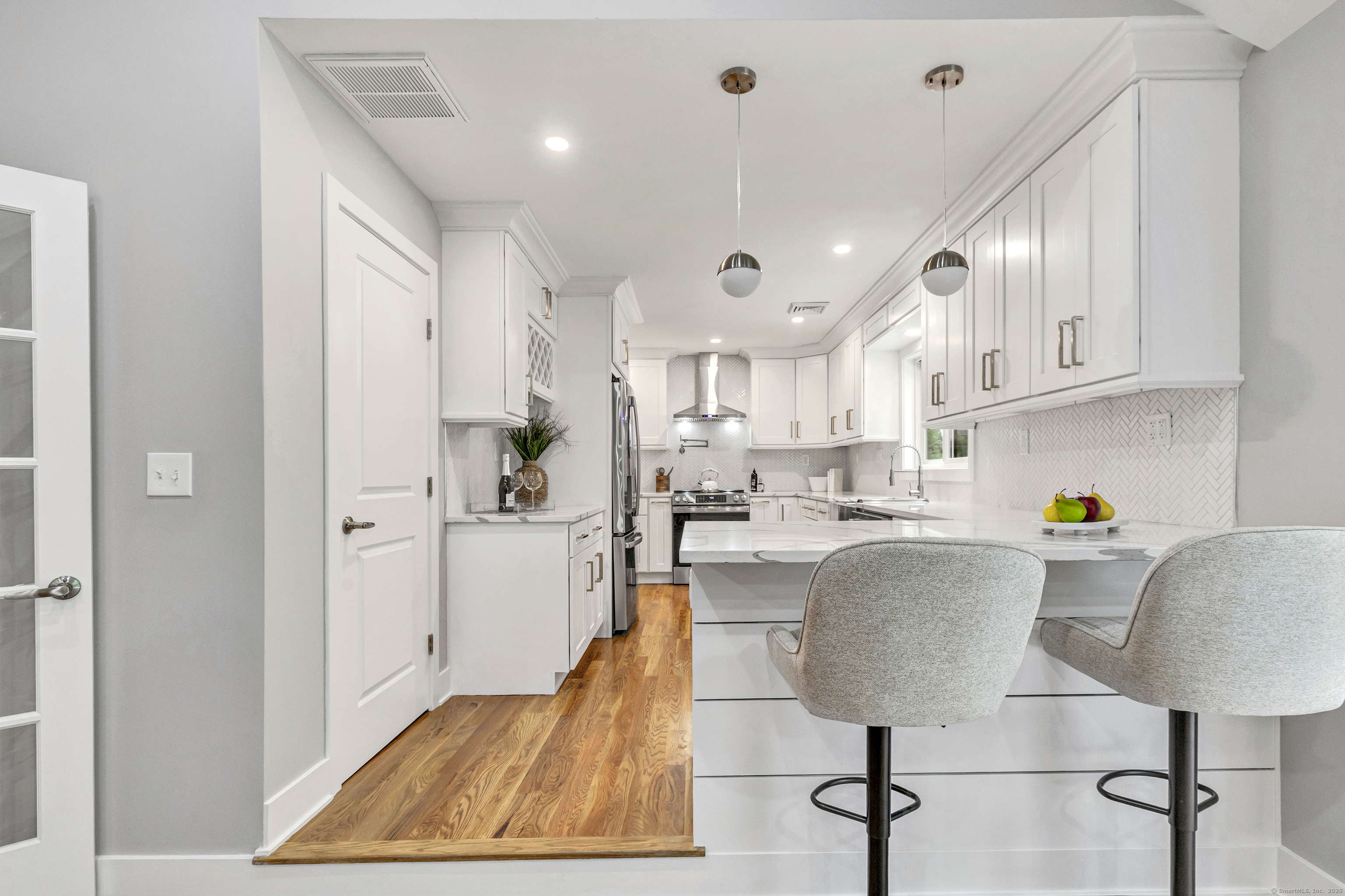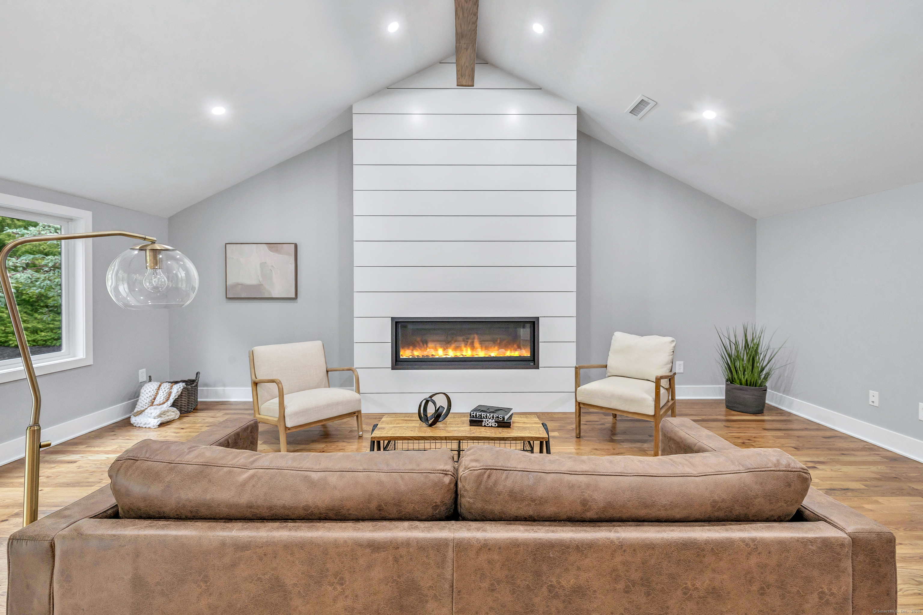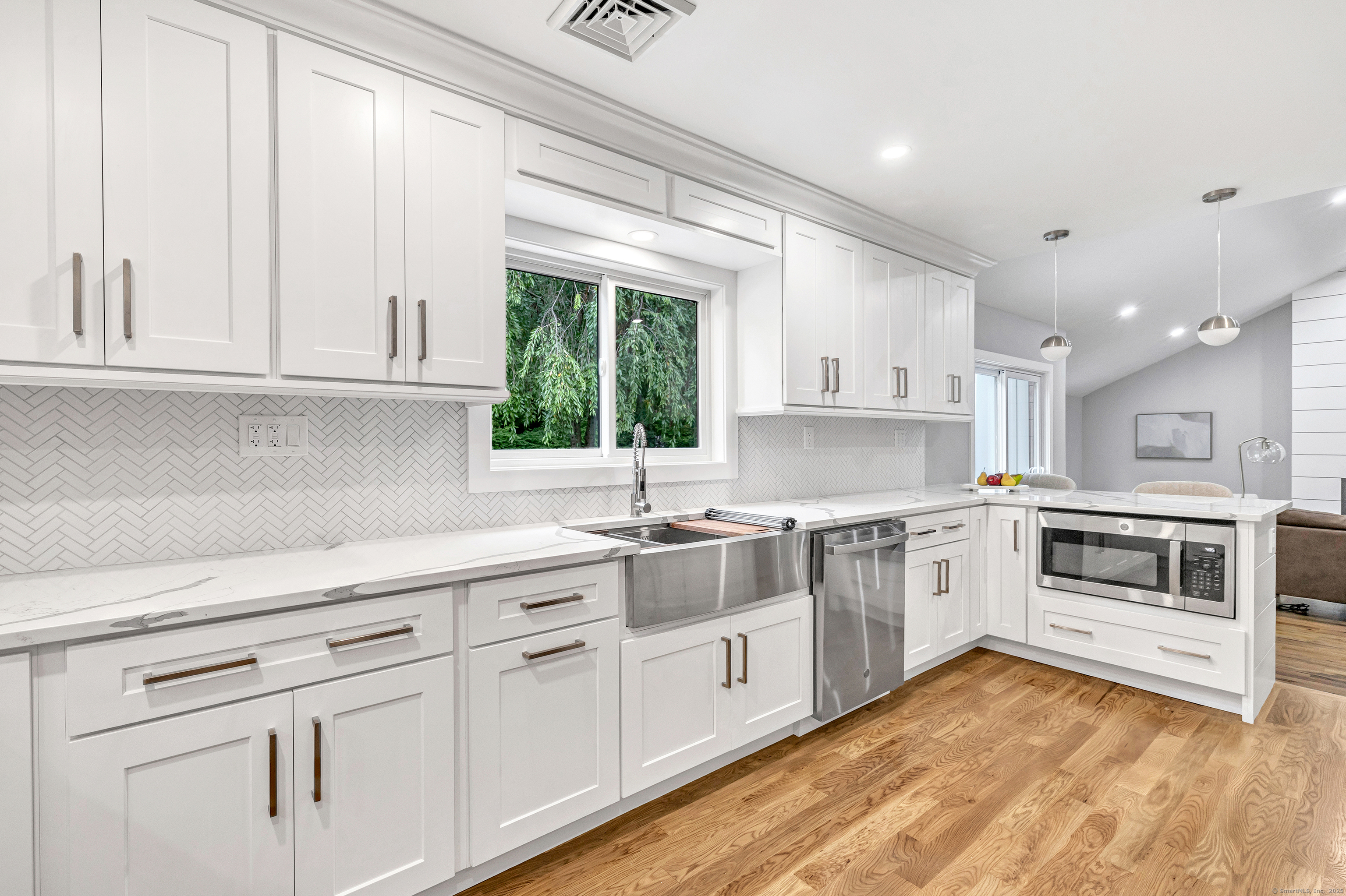 Price Reduced!!! Stylishly renovated 3BR, 2BA ranch in one of Lower Easton's most coveted neighborhoods! Set on .66 acres, this 1,748 sq. ft. home blends modern elegance with everyday ease. Sun-filled open layout showcases rich hardwood floors and a brand-new gourmet kitchen with quartz counters, stainless steel appliances, and upscale finishes-perfect for both casual dining and entertaining. The vaulted family room, featuring a sleek linear fireplace, flows seamlessly to a large deck and sprawling, level yard-your ideal indoor-outdoor retreat. The luxe primary suite features a tray ceiling, custom walk-in closet, and spa-like bath with glass shower and double vanity. Two additional bedrooms and a beautifully updated hall bath offer flexibility for guests, family, or office. Exterior highlights include a one-car garage, Belgian block-lined driveway, and upgraded shed. Just minutes to the Merritt Parkway and Black Rock Turnpike. Turnkey, private, and effortlessly stylish-Easton living at its best.