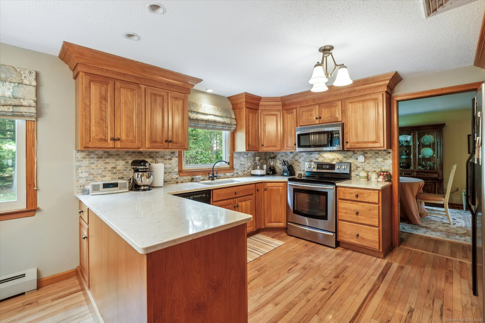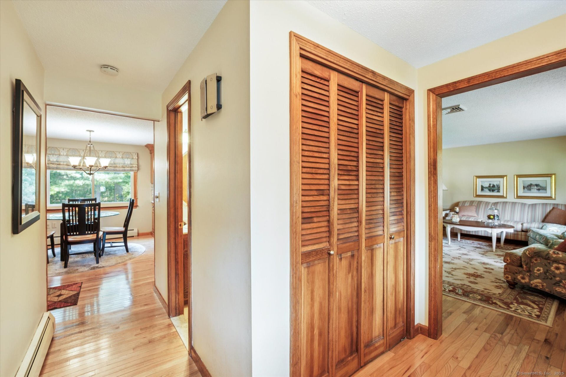Welcome to this beautifully maintained 3-bedroom, 2.5-bath colonial perfectly situated at the end of a peaceful cul-de-sac. Pride of ownership shines throughout this single-owner home, offering a warm and inviting atmosphere from the moment you arrive. The main level features a spacious and light-filled living area, ideal for everyday living and entertaining. The kitchen offers generous cabinet space and seamlessly connects to the dining area with views of the backyard. Upstairs, you'll find three comfortable bedrooms, including a serene primary suite with a private bath and ample closet space. Step outside to enjoy the tranquil backyard that backs up to protected town land lined with mature trees-offering both privacy and a beautiful natural backdrop. Additional highlights include a convenient 2-car garage, central air, and a full basement with potential for future finishing. Located close to town amenities, schools, and major routes, this home offers the perfect blend of neighborhood charm and easy convenience. Don't miss the opportunity to make this well-loved home yours!
