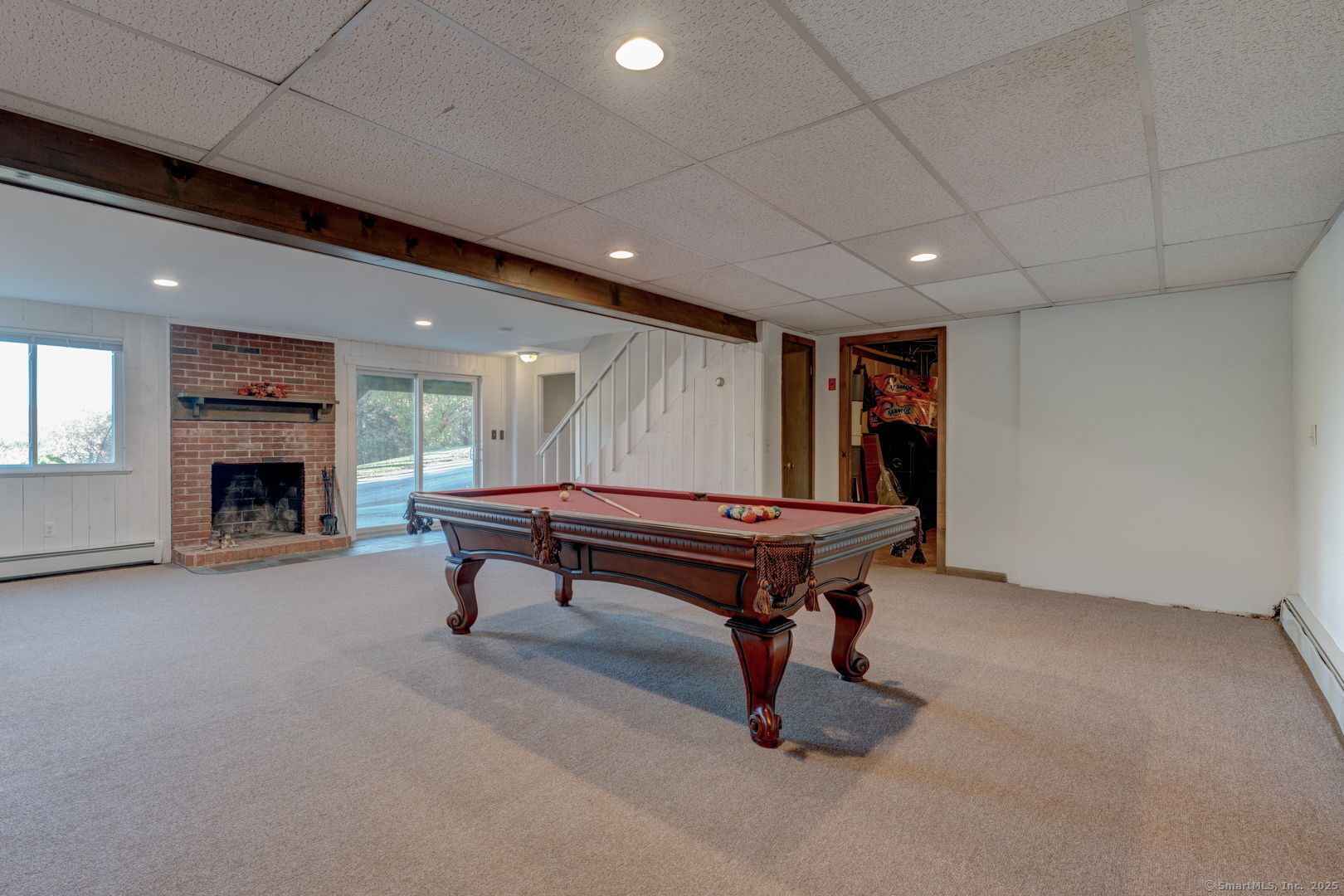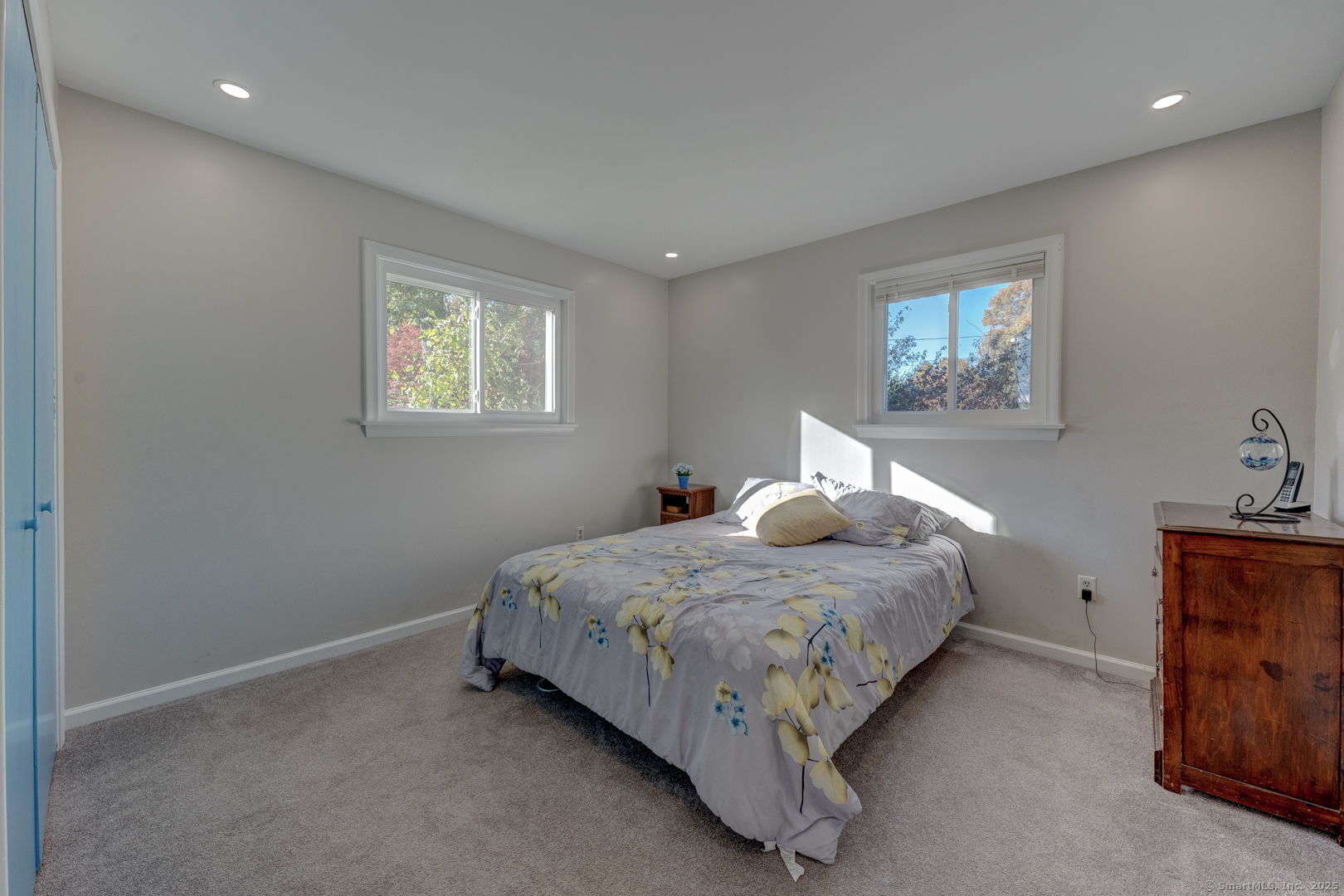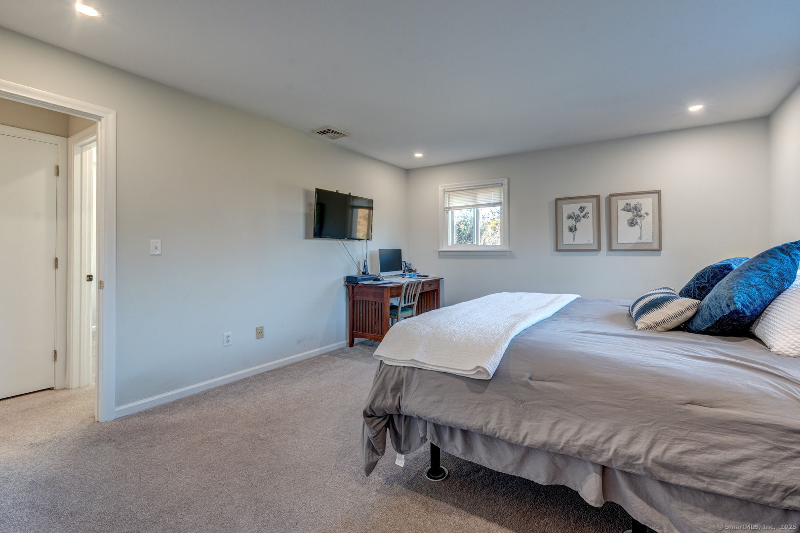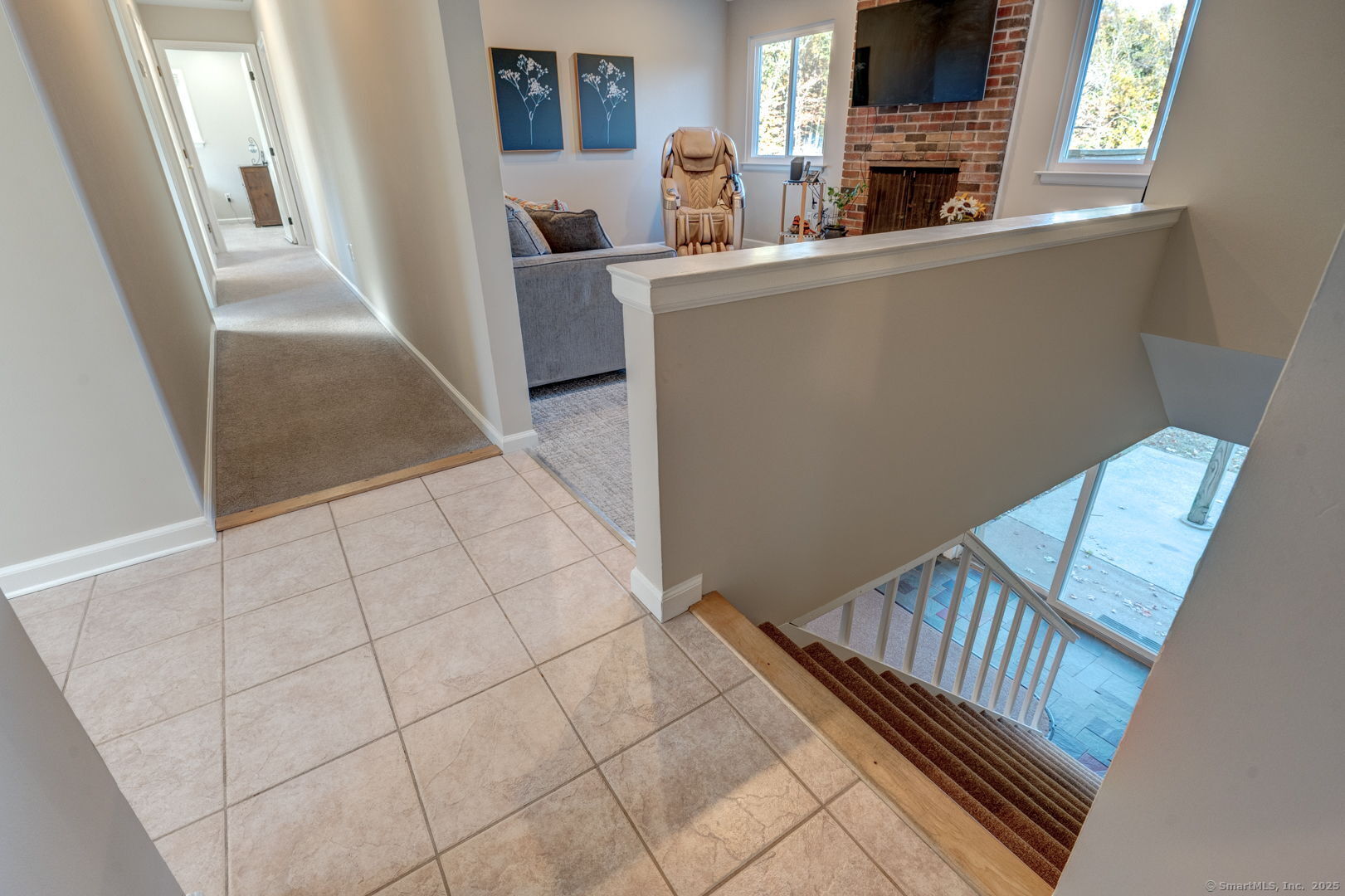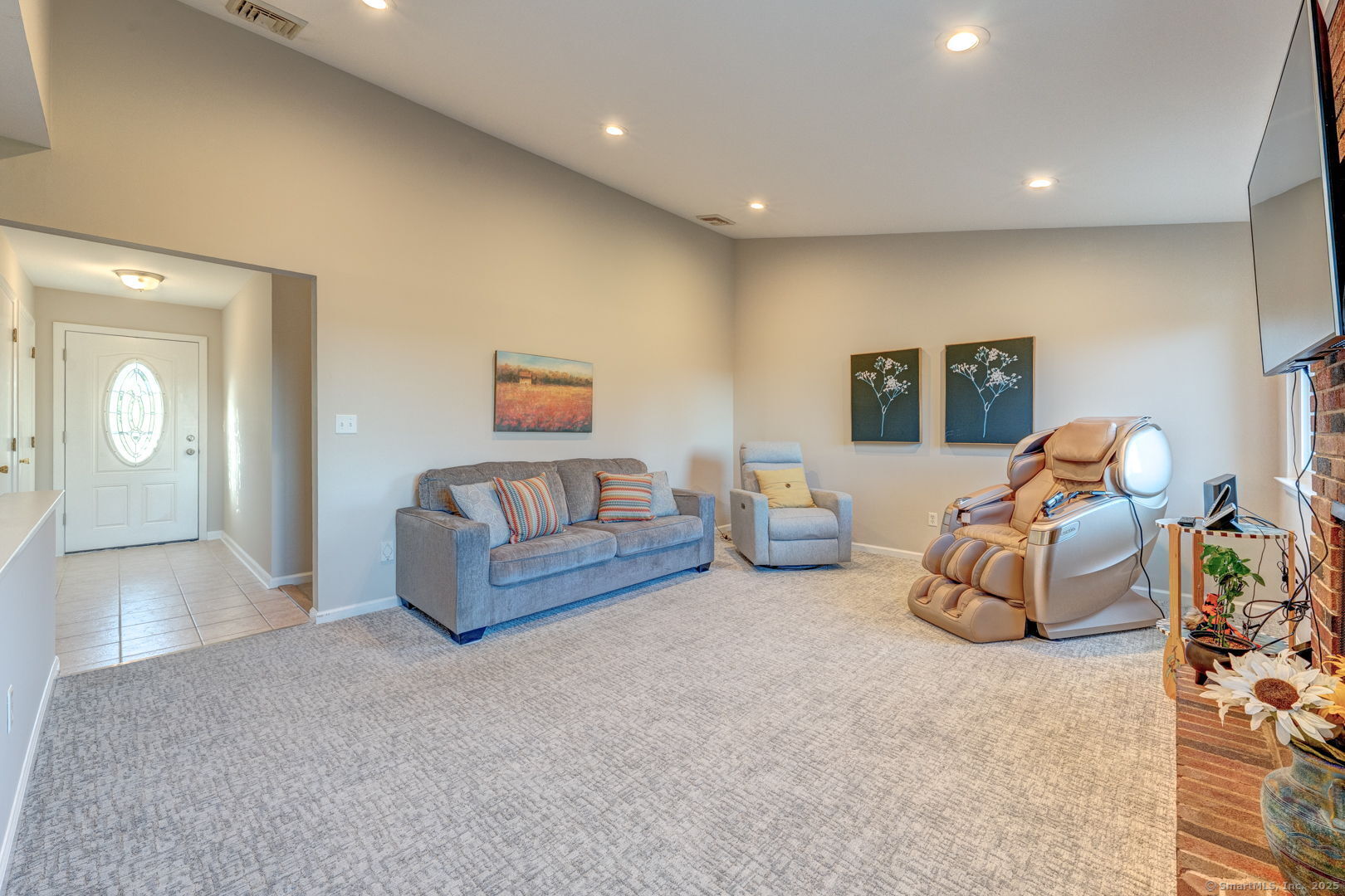 Move-in ready ranch on a large lot with sunset views! A great find in South Glastonbury! Ease of living with all bedrooms and 2 full baths on one level. Kitchen, featuring stainless steel appliances and warm cherry cabinets, is open to the dining area which leads out to the expansive deck. Enjoy peaceful views and beautiful sunsets from the deck! The great room boasts newer carpet, vaulted ceilings, recessed lights & a cozy fireplace. Primary bedroom has a roomy walk-in closet and ensuite full bath with new vanity & light fixture! Two additional well-sized bedrooms share a hallway bath with updated vanity and window. Spread out in the bonus space in the walk-out lower level. Full of natural light, this expansive area has sliders to the patio, a 2nd fireplace, study/den and tons of usable room including additional storage. Many BIG TICKET ITEMS have been taken care of just within the last 3 years: roof, hot water tank, AC, windows, all copper plumbing replaced with PEX piping & railings on trex deck. No popcorn ceilings! Driveway and 2 car garage can accommodate plenty of vehicles and your RV, boat etc! Expansive yard provides year round serenity and views. Solar panels equals energy savings. Don't let the outside fool you: this home has so much space inside and so much to offer! To see it is to appreciate it!