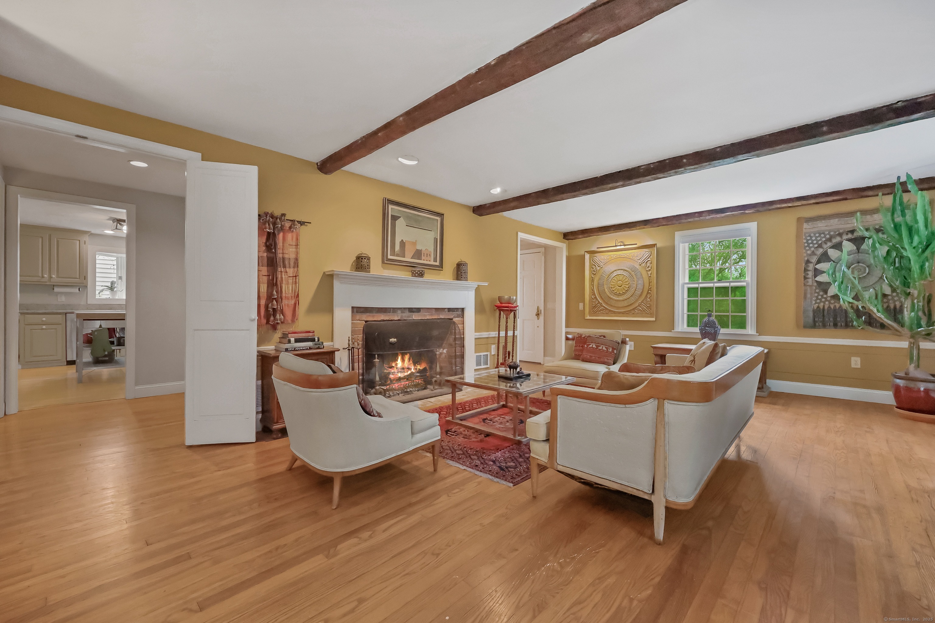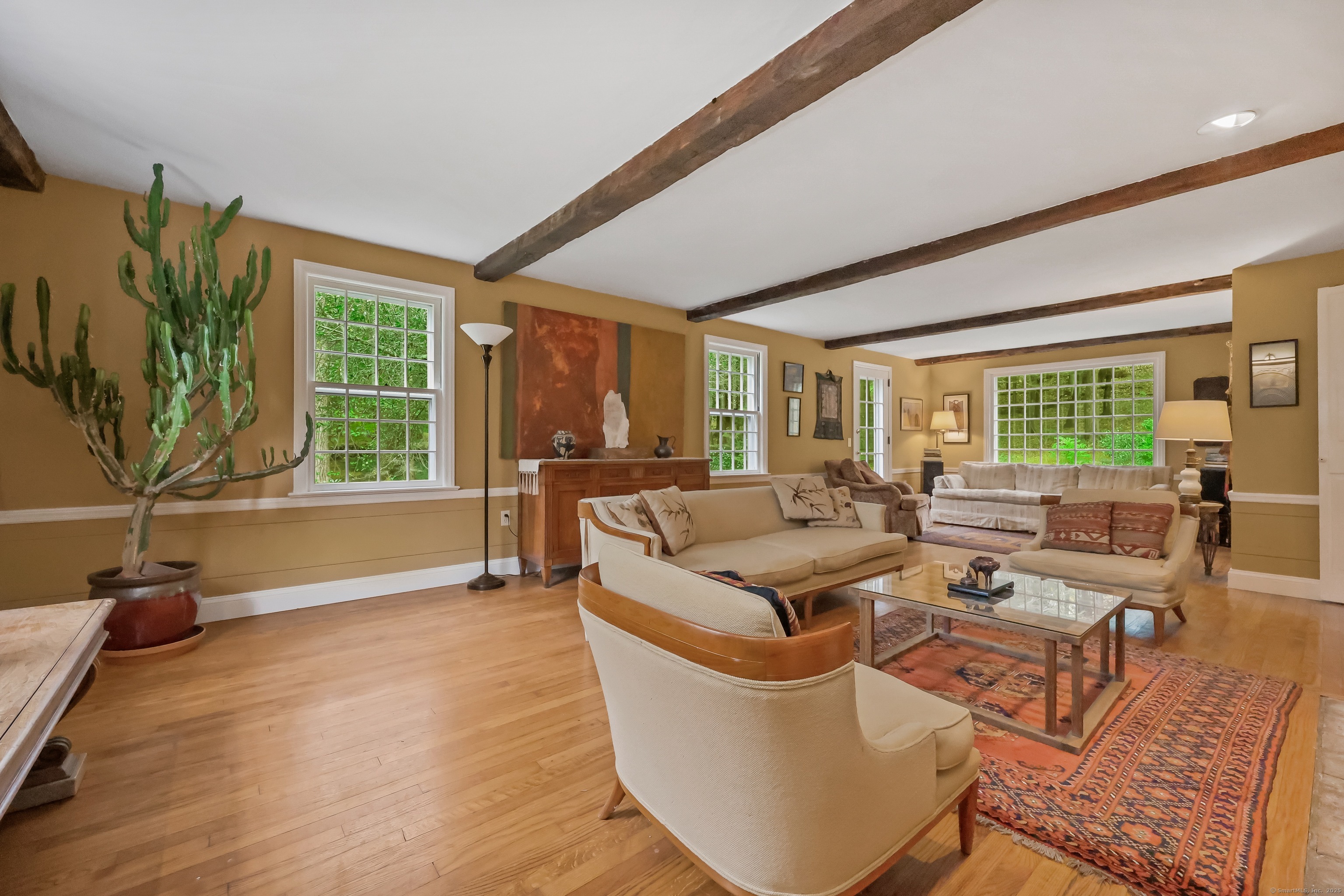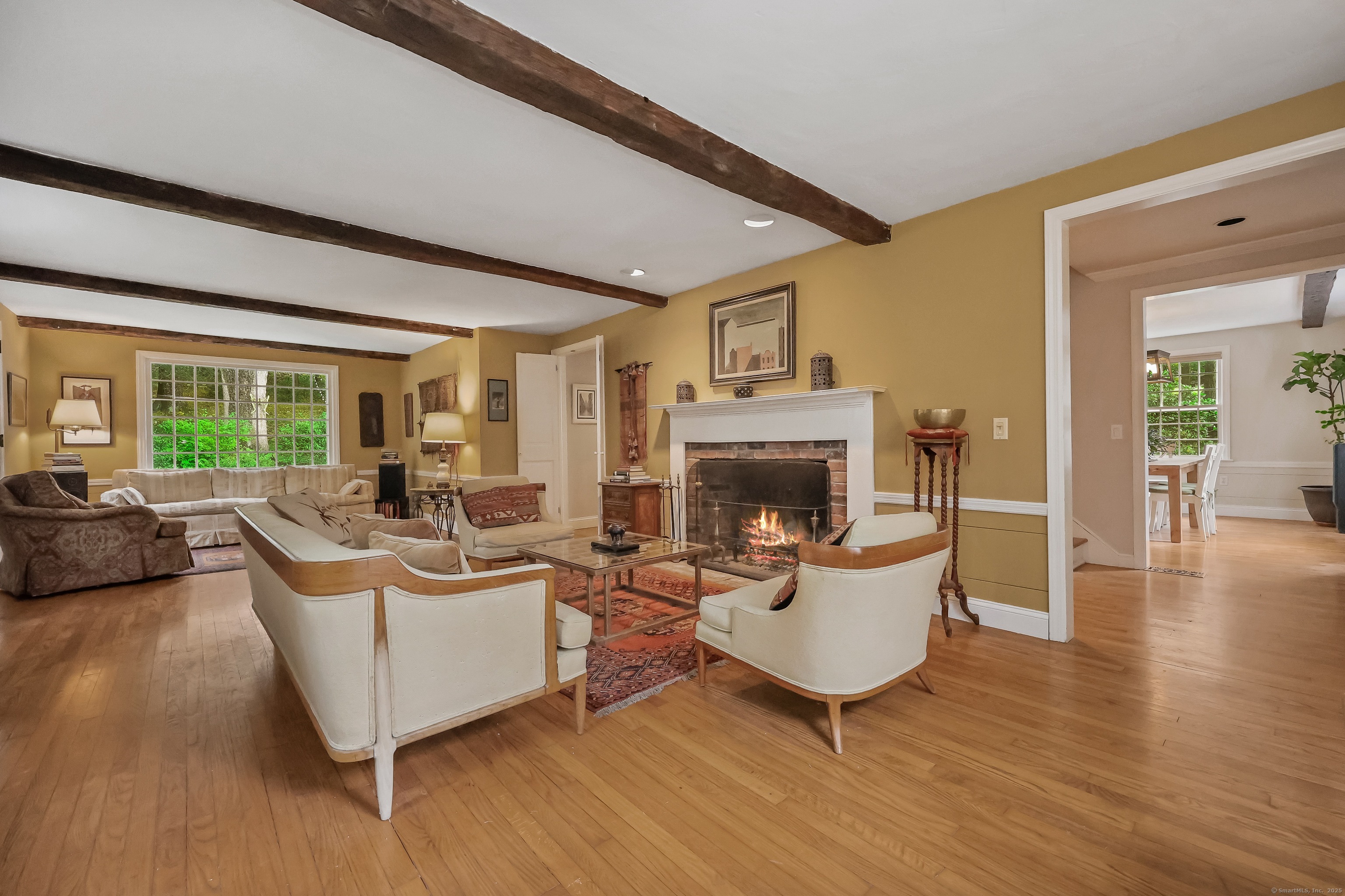 This distinctive Colonial offers tremendous curb appeal on a peaceful country road. It provides scenic views overlooking a nature preserve, the Saugatuck Reservoir & Trout Brook Trails & is just 15 minutes from downtown Westport. The thoughtful layout of this welcoming residence is perfect for seamless entertaining, both inside & on the expansive terrace that overlooks the naturally landscaped yard. Meticulously maintained, the home offers a versatile floor plan, including a potential In-law or Au-Pair Suite within the Office/Studio wing.The main level features an airy, front-to-back Living Room with a fireplace & historic wood beams, a Chef's Kitchen that flows into both the Dining Room & a bright Breakfast Room & a spacious Family Room with its own fireplace. The Den, complete with a full bath, presents an ideal option for a first-floor Bedroom.Upstairs, you will find five generously sized Bedrooms, including the Primary Bedroom with a walk-in closet & beautiful en-suite bath, plus a private Guest Room that includes its own full bath. The finished lower level is home to a comfortable Playroom (featuring the home's third fireplace & a pool table area) & a well-appointed Laundry Room. This residence has seen numerous high-quality improvements, including new AC, furnace & new hardwood floors in multiple rooms (a complete list is available upon request). This exceptional home is located in the sought-after town of Weston, known for its award-winning Blue Ribbon Schools.