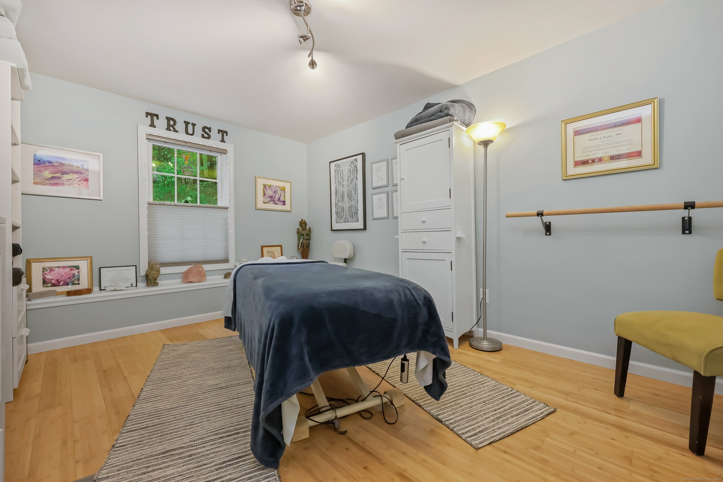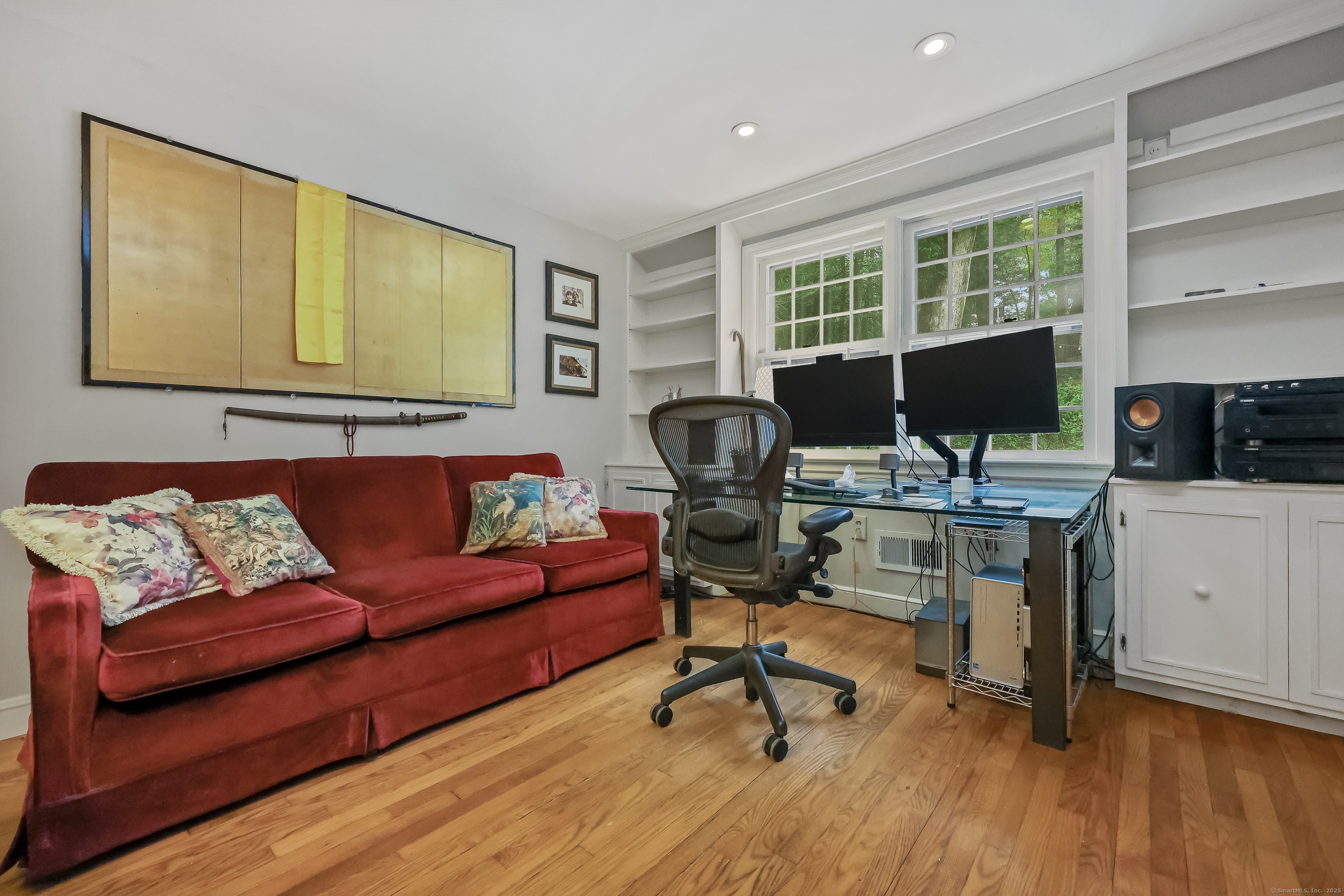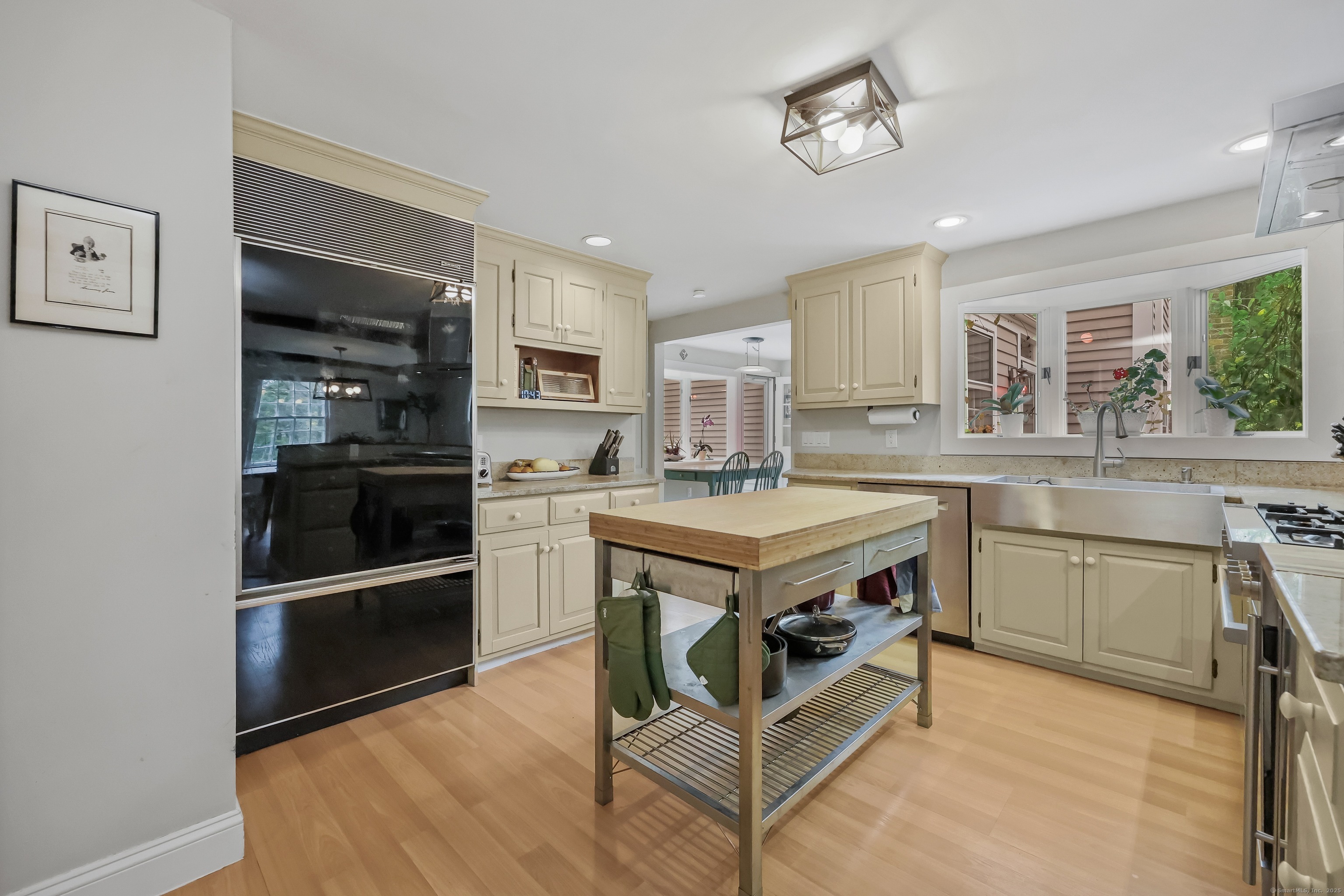 This distinctive Colonial offers tremendous curb appeal on a peaceful country road. It provides scenic views overlooking a nature preserve, the Saugatuck Reservoir & Trout Brook Trails & is just 15 minutes from downtown Westport. The thoughtful layout of this welcoming residence is perfect for seamless entertaining, both inside & on the expansive terrace that overlooks the naturally landscaped yard. Meticulously maintained, the home offers a versatile floor plan, including a potential In-law or Au-Pair Suite within the Office/Studio wing.The main level features an airy, front-to-back Living Room with a fireplace & historic wood beams, a Chef's Kitchen that flows into both the Dining Room & a bright Breakfast Room & a spacious Family Room with its own fireplace. The Den, complete with a full bath, presents an ideal option for a first-floor Bedroom.Upstairs, you will find five generously sized Bedrooms, including the Primary Bedroom with a walk-in closet & beautiful en-suite bath, plus a private Guest Room that includes its own full bath. The finished lower level is home to a comfortable Playroom (featuring the home's third fireplace & a pool table area) & a well-appointed Laundry Room. This residence has seen numerous high-quality improvements, including new AC, furnace & new hardwood floors in multiple rooms (a complete list is available upon request). This exceptional home is located in the sought-after town of Weston, known for its award-winning Blue Ribbon Schools.