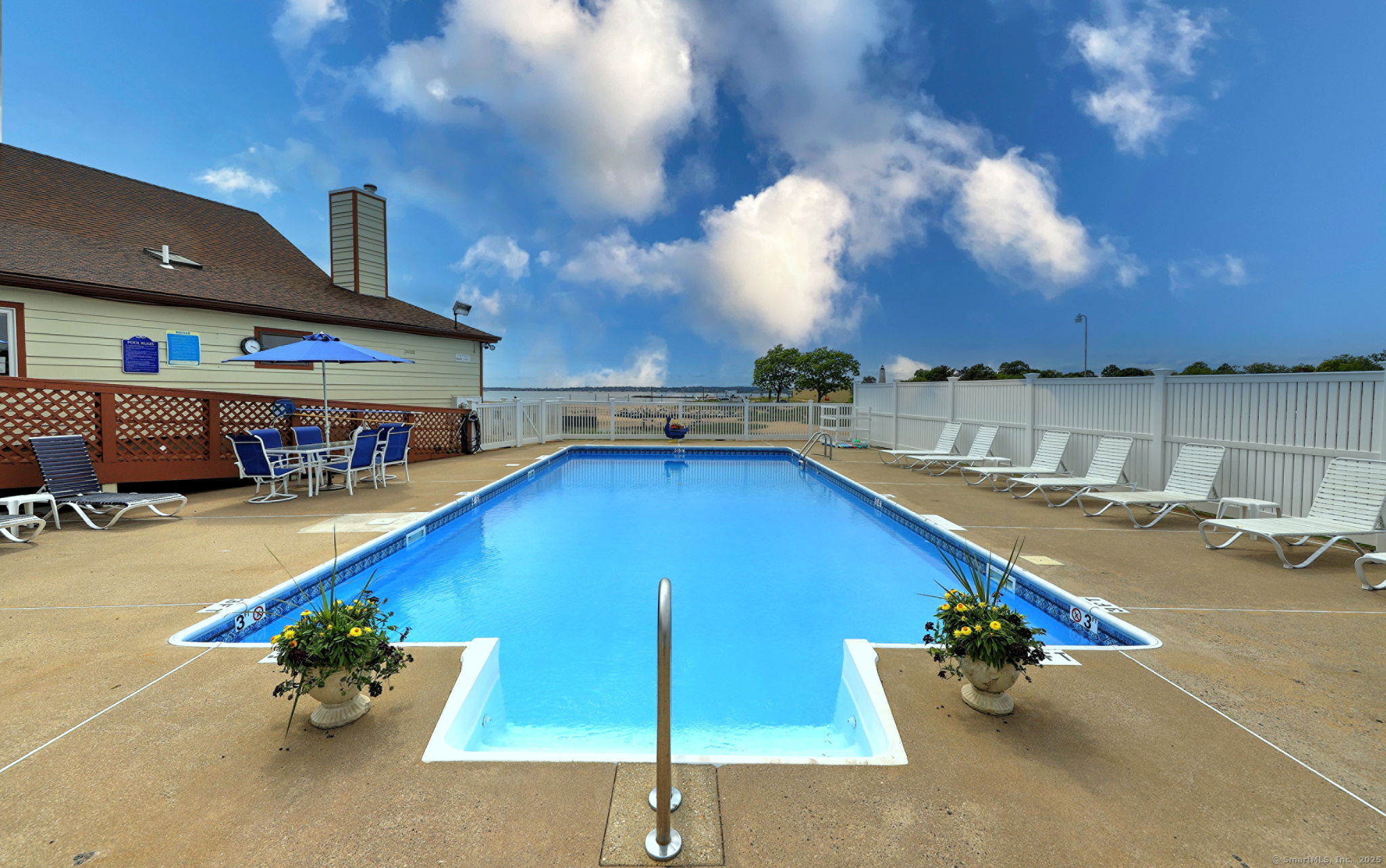 Come see this amazing coastal retreat in popular Shell Beach! Experience year-round vacation living in this rarely available first-floor 1,848 SF Ranch style condo, perfectly positioned in this sought-after gated community. Enjoy breathtaking southwest views of Long Island Sound from most windows, filling your home with natural light & tranquility. Step inside to find an inviting entry foyer with double closets, leading to an expansive open layout. The huge kitchen boasts elegant granite countertops and a sleek tile backsplash, ideal for culinary enthusiasts. Entertain effortlessly in the large dining room overlooking the spacious living room featuring a charming fireplace. The primary bedroom offers a spacious walk-in closet and an en-suite full bath, providing a private sanctuary. A second bedroom and additional full bathroom ensure ample space for guests or family. Bask in the sun on your generous deck, accessed from the living room and primary bedroom, or take a dip in the nearby heated pool. For outdoor enthusiasts, kayak launching into Morris Creek is just steps away, and fishing awaits you just 25 feet from your deck! Step down onto the beach and collect some colorful sea glass and seashells. Convenience is at your fingertips with easy access to Downtown New Haven, Yale University, train station, hospitals, numerous nearby parks and Tweed New Haven Airport. Embrace the ultimate coastal lifestyle 365 days a year. Your waterfront dream home awaits. Come see it soon!