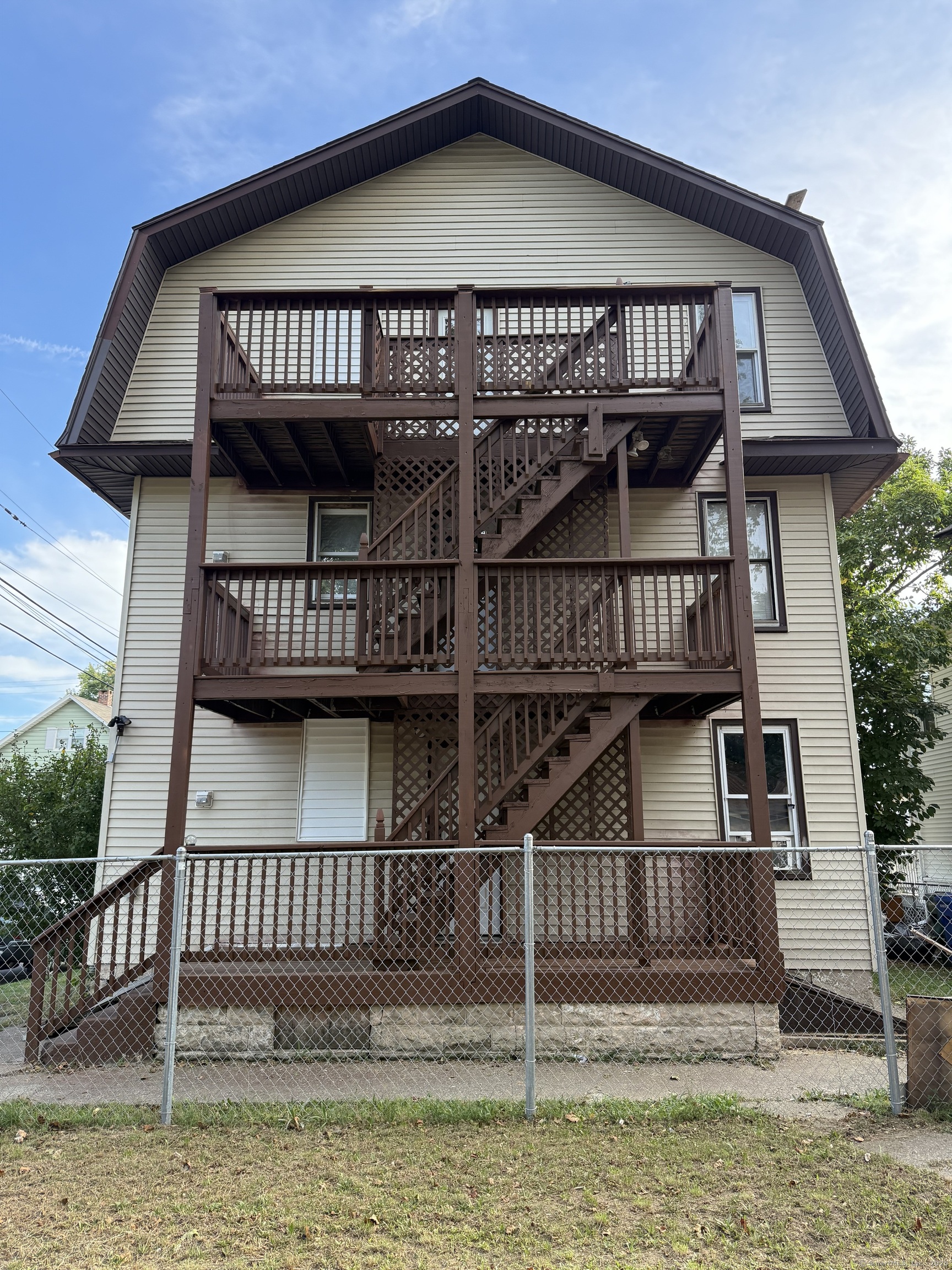 freshly painted unit on a corner lot on a dead end street. It is a spacious third floor unit with washer and dryer hook up plus dishwasher with a park across the street. First floor will be available November 1st.