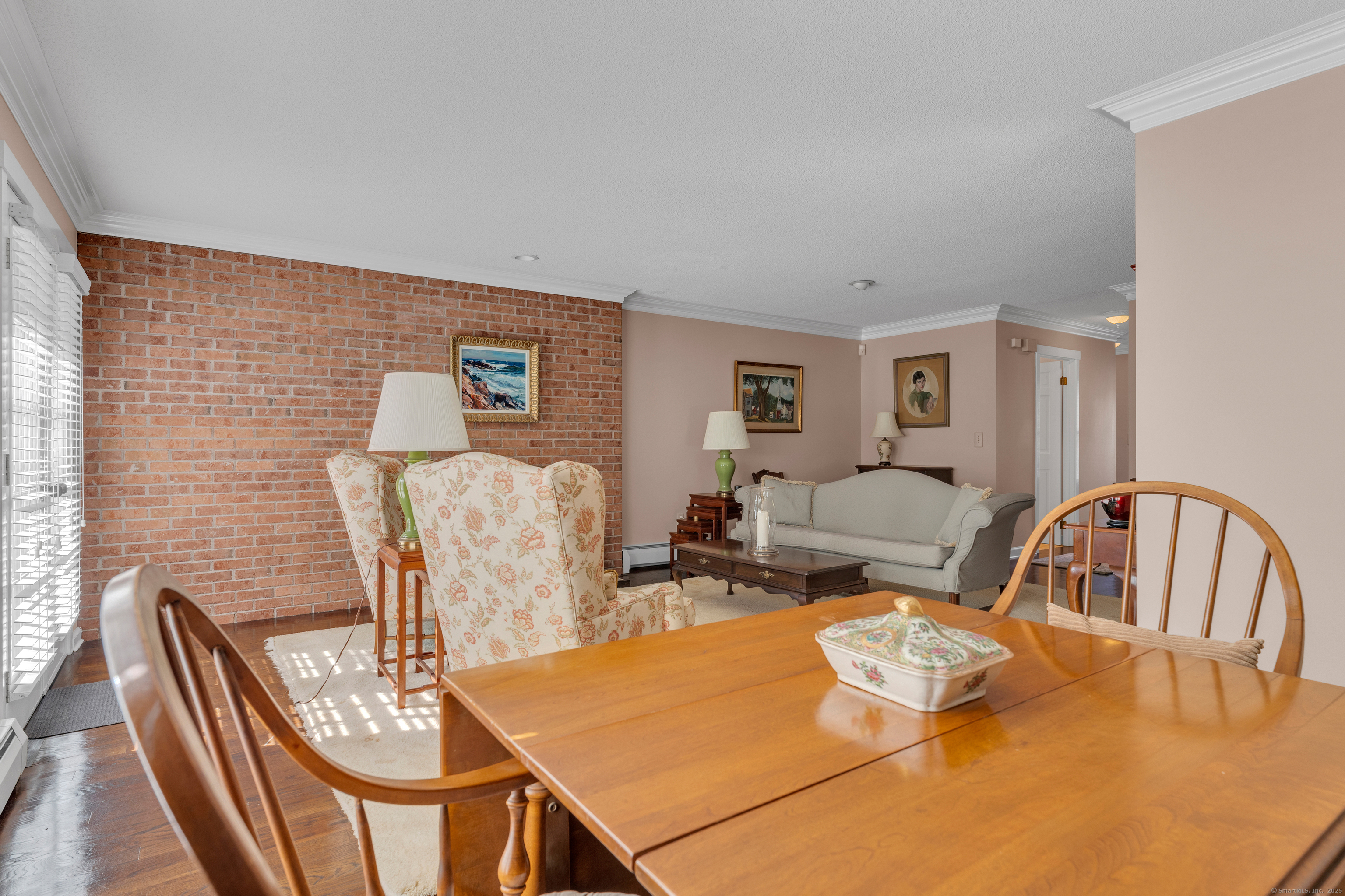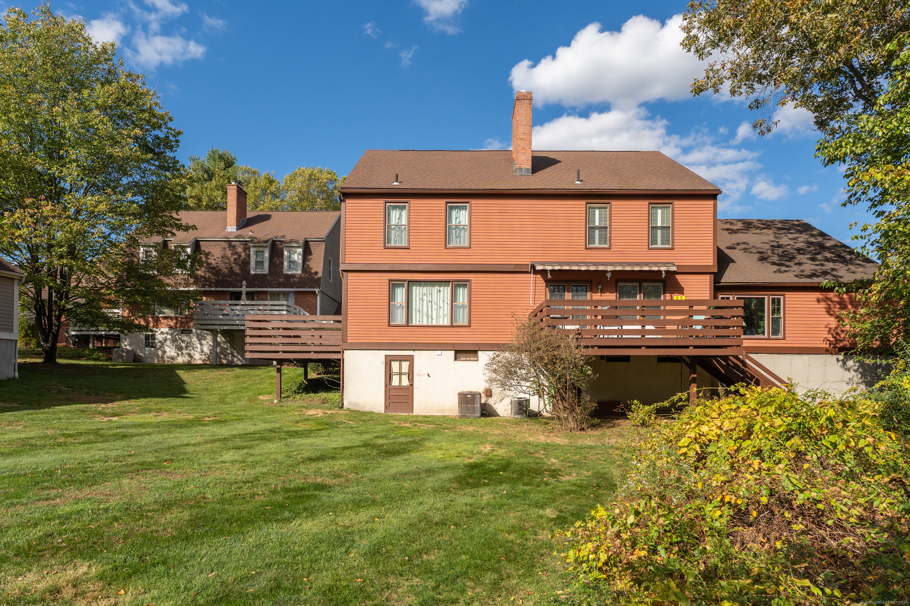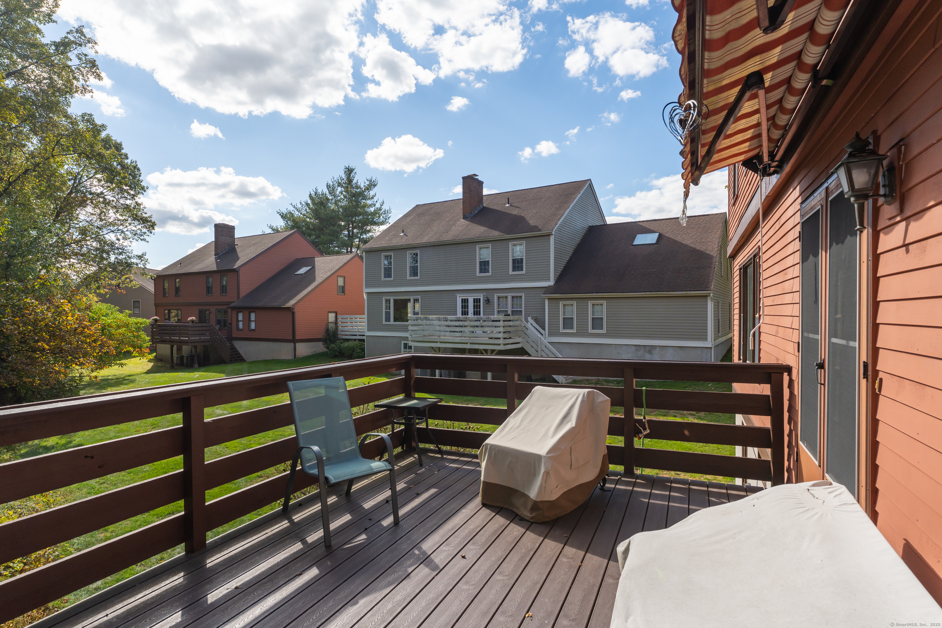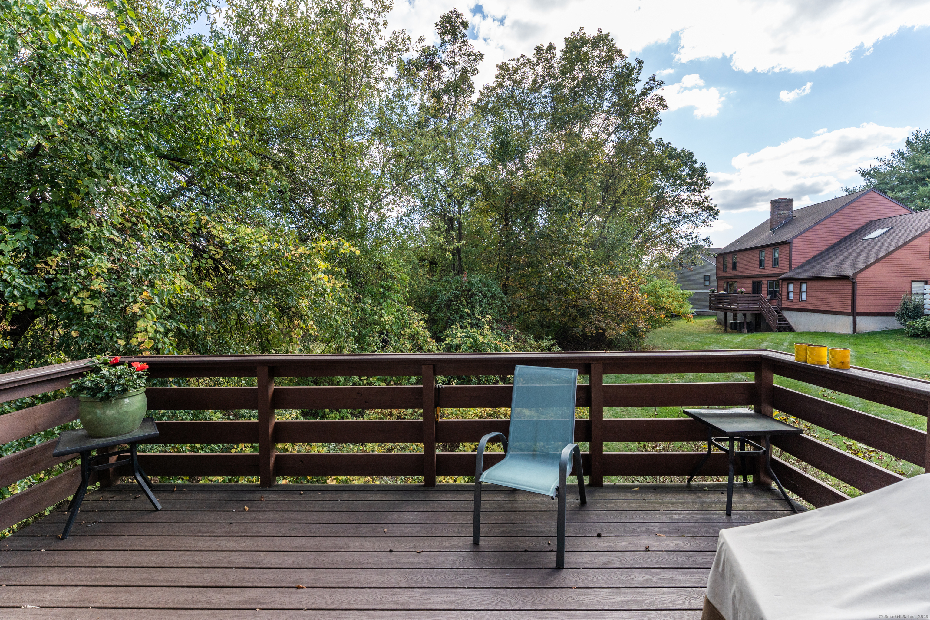 Welcome to this charming 2-bedroom townhouse offering a timeless, classic feel with beautiful dark-stained hardwood floors throughout the main living areas. The inviting living room with brick wall, woodburning fireplace flows seamlessly into the dining area-perfect for entertaining or relaxing evenings at home. Just off the main living space, a large family room provides additional comfort and versatility for gatherings, a home office, or a media space. The spacious kitchen features a tile floor, Corian counters, and ample cabinetry-ideal for the cook in the family. Step outside to your private Trex deck with an awning, creating a wonderful outdoor retreat for morning coffee or summer dinners. Upstairs, you'll find two generous bedrooms and a beautifully updated full bath. Enjoy resort-style living in this beautiful complex, complete with a sparkling pool, welcoming clubhouse, and a convenient dog park for your furry friends. This lovely townhouse combines traditional elegance, comfort, and is located in a great community setting. Enjoy all that Wallingford has to offer, close to the Merritt Parkway and downtown area.