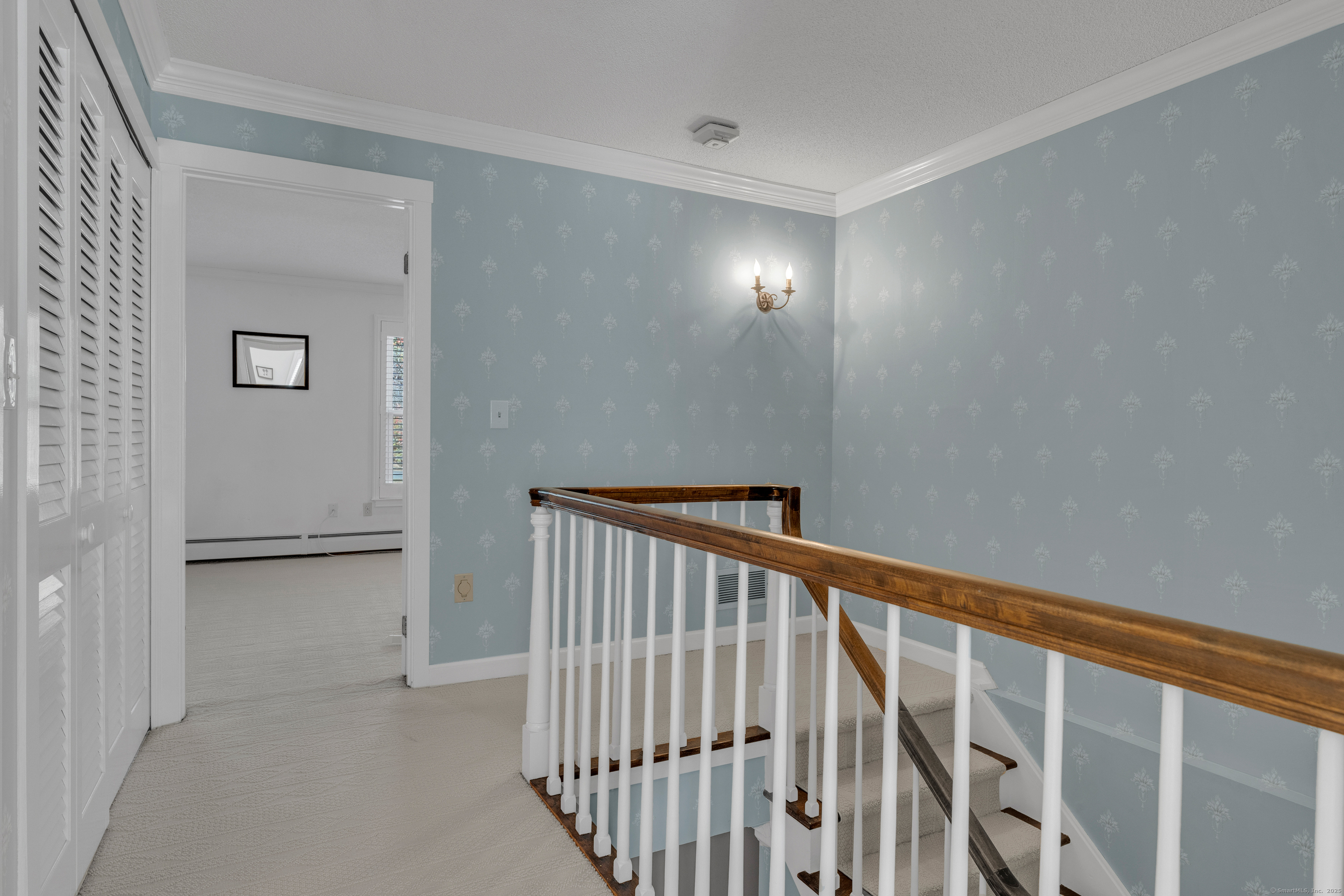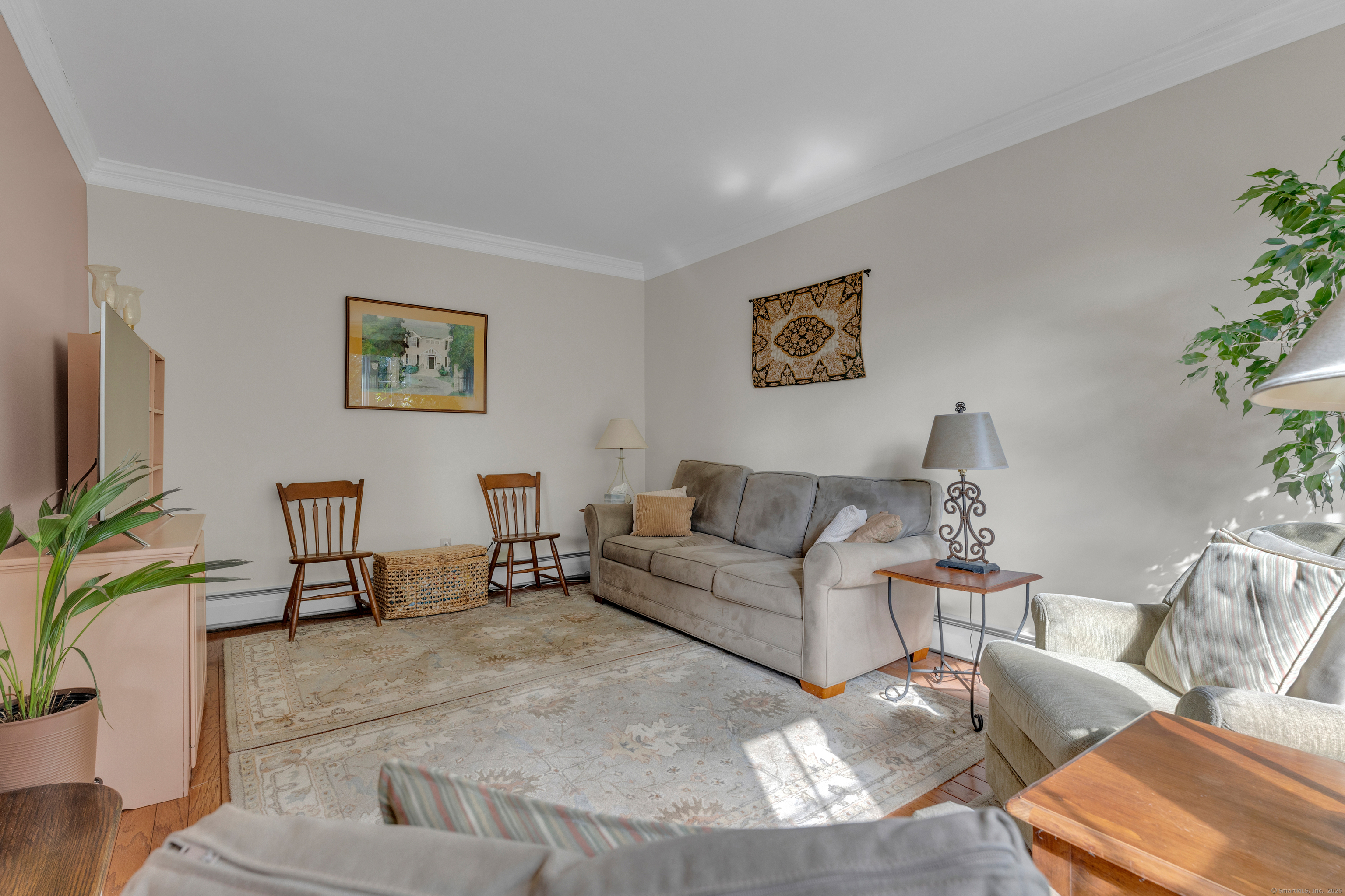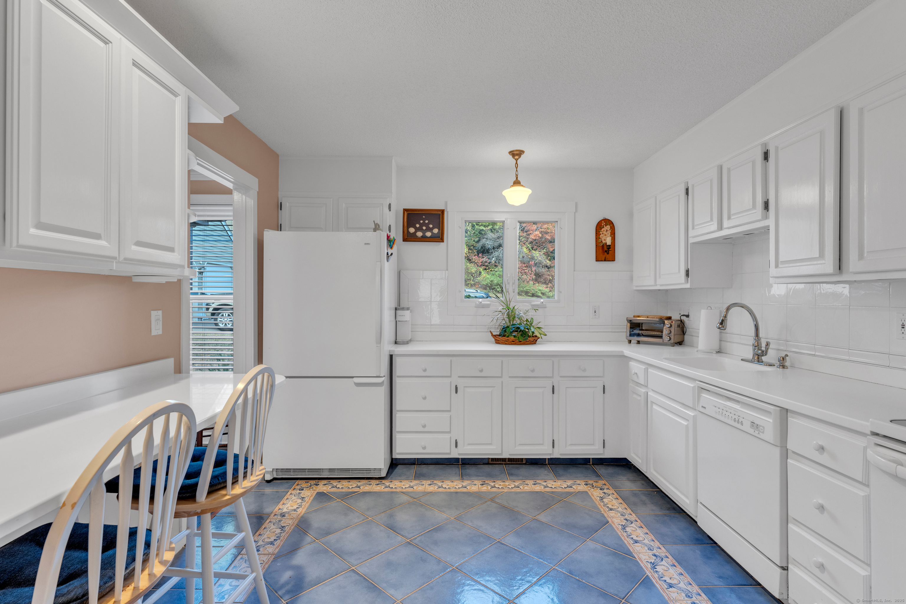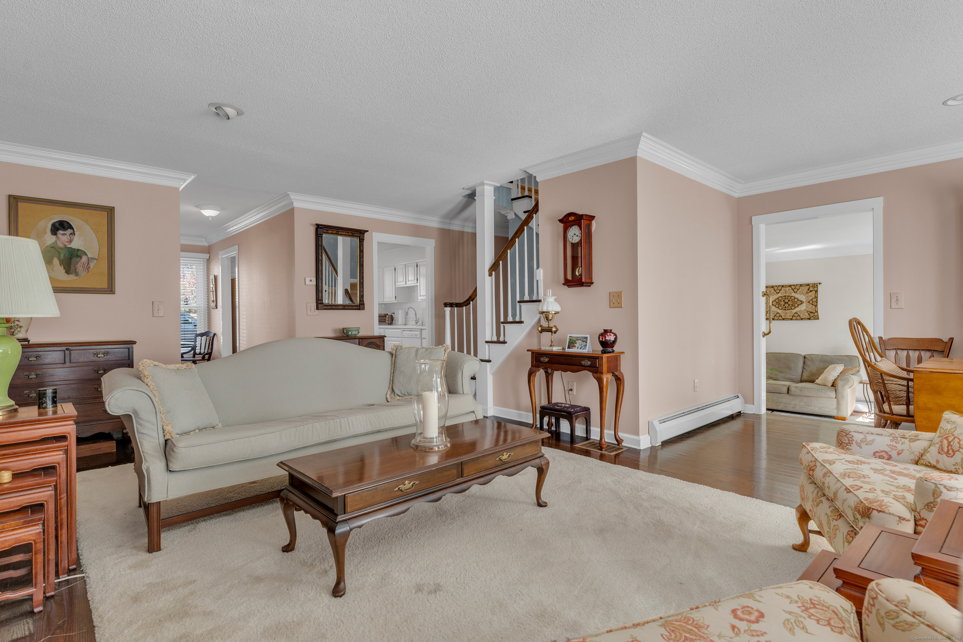 Welcome to this charming 2-bedroom townhouse offering a timeless, classic feel with beautiful dark-stained hardwood floors throughout the main living areas. The inviting living room with brick wall, woodburning fireplace flows seamlessly into the dining area-perfect for entertaining or relaxing evenings at home. Just off the main living space, a large family room provides additional comfort and versatility for gatherings, a home office, or a media space. The spacious kitchen features a tile floor, Corian counters, and ample cabinetry-ideal for the cook in the family. Step outside to your private Trex deck with an awning, creating a wonderful outdoor retreat for morning coffee or summer dinners. Upstairs, you'll find two generous bedrooms and a beautifully updated full bath. Enjoy resort-style living in this beautiful complex, complete with a sparkling pool, welcoming clubhouse, and a convenient dog park for your furry friends. This lovely townhouse combines traditional elegance, comfort, and is located in a great community setting. Enjoy all that Wallingford has to offer, close to the Merritt Parkway and downtown area.