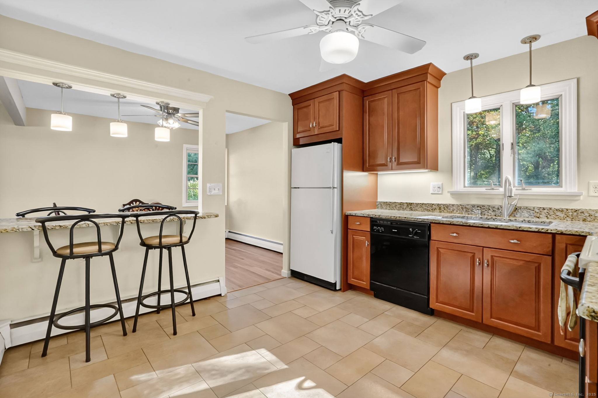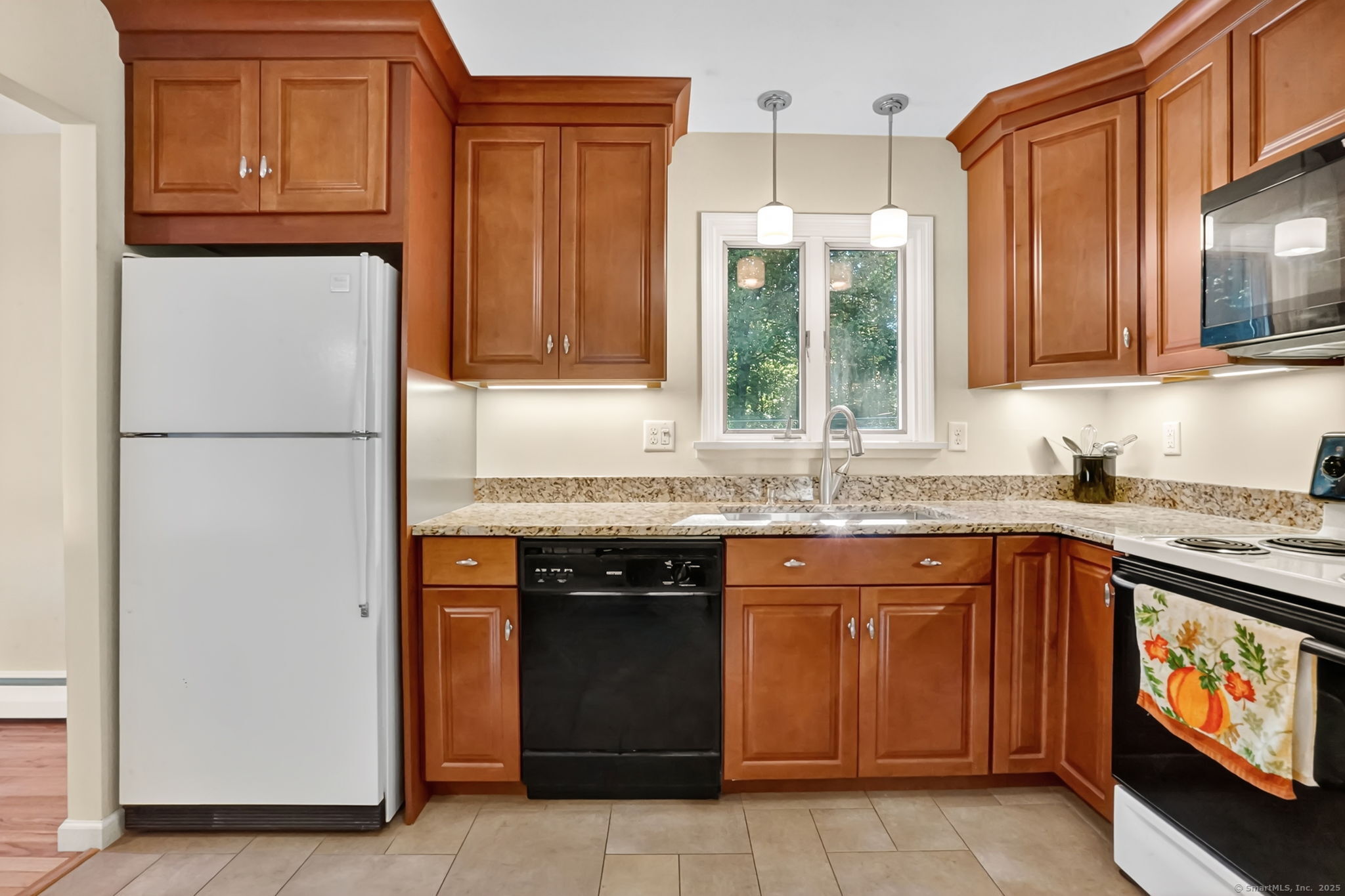 Welcome to this beautifully maintained 3-bedroom,2 bath home located on a super quiet street in Enfield. This inviting home offers a spacious layout with a sunlit bay window, gleaming hardwood floors, updated kitchen with granite countertops, beautiful maple cabinetry, and even a breakfast bar for your morning coffees. The bathrooms have also been remodeled for your convenience. The bedrooms are on the upper level and offer hardwood floors and plenty of closet space. The backyard features a nice patio area for grilling and entertaining, a newer shed for outside tools, and a private treed backdrop. Recent updates include an energy efficient Viessmann cast iron Boiler & Hot water tank, Honeywell Wi-Fi Thermostats, newer windows and updated Kitchen/Baths. This home is enhanced by an attached oversized 2-car garage with a pull-down entry way for an enormous storage area above. It also features many electrical units for your workspace, tools, and hobby enthusiasts. This is certainly a wonderful home that has so much to offer.