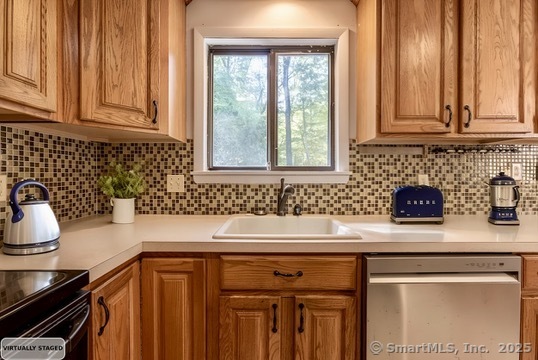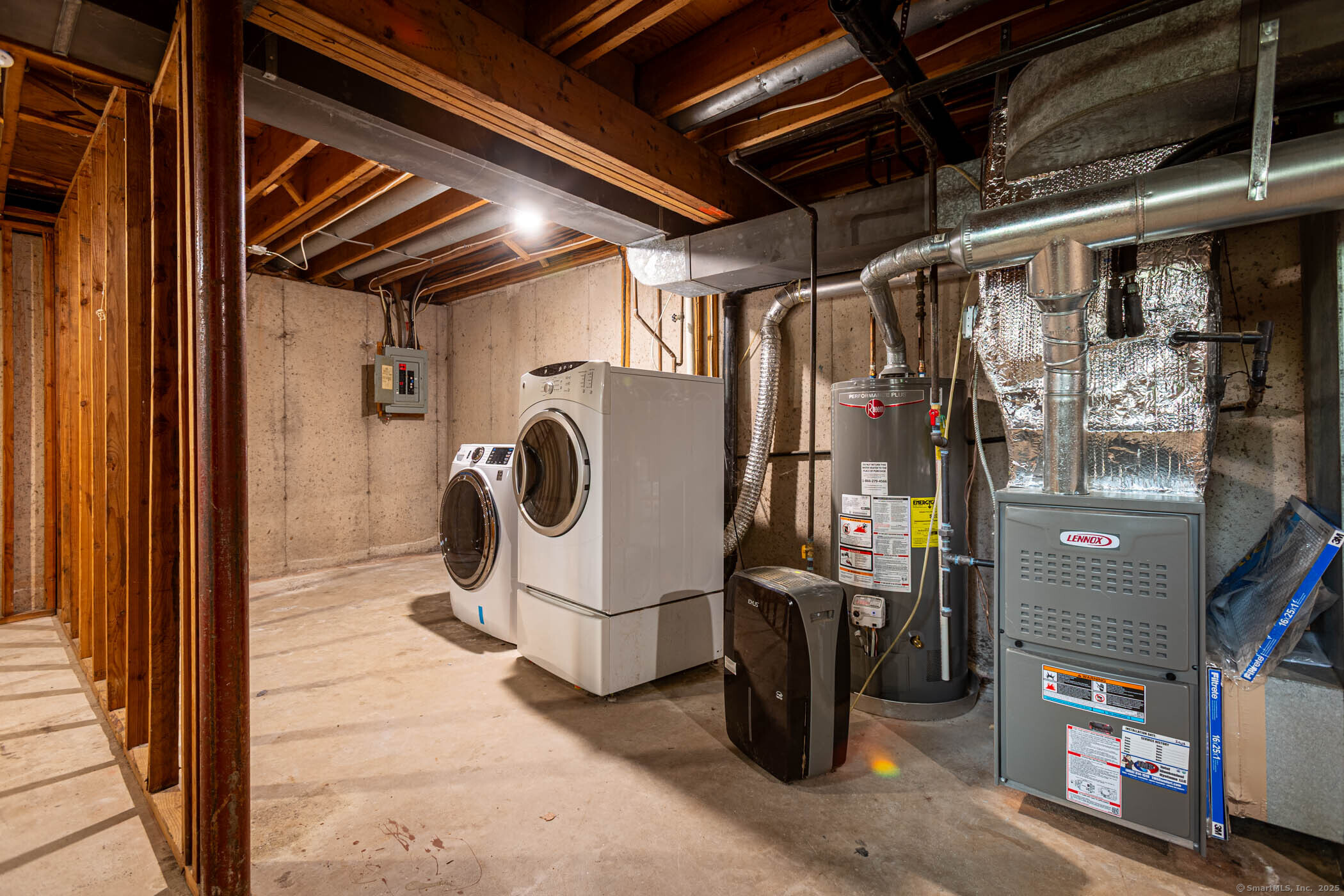 Beautifully updated 3BR, 2.5BA end-unit condo offering the perfect blend of comfort, privacy, and modern living. Step inside to find new laminate wood flooring, fresh paint, and custom blinds throughout the main level. The dining area opens to a private rear patio, ideal for relaxing or entertaining. The kitchen features a new refrigerator, dishwasher, and washing machine, while major upgrades include a new heating system, new hot water heater (H2O), and updated electrical and ductwork for the furnace and water heater. Enjoy SMART HOME features including an ECOBEE smart thermostat, Ring camera, smart lock, with Alexa/smartphone integration, making this home as connected as it is convenient. Upstairs, the primary suite offers a walk-in closet and full bathroom, while the lower level is ready to be finished, complete with plumbing for an additional bath. As an end unit, you'll love the extra privacy and natural light. The roof is less than 10 years old, and the well-managed association handles annual power washing, snow removal, salting, and maintains a strong financial budget. Just 3 minutes to Rotary Park with a shared recreation area perfect for sledding and outdoor fun - this home delivers modern updates, easy living, and a prime Glastonbury location!
