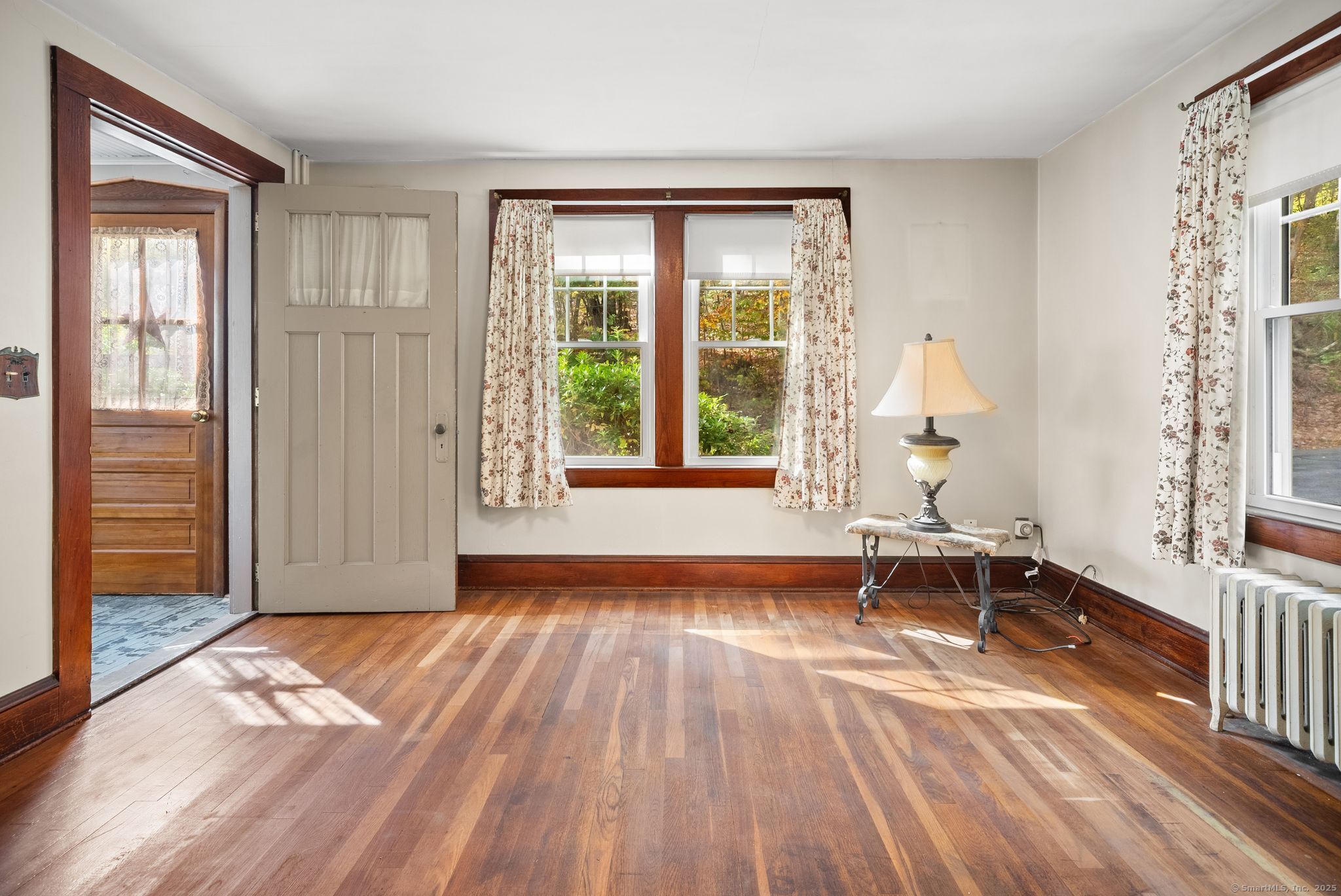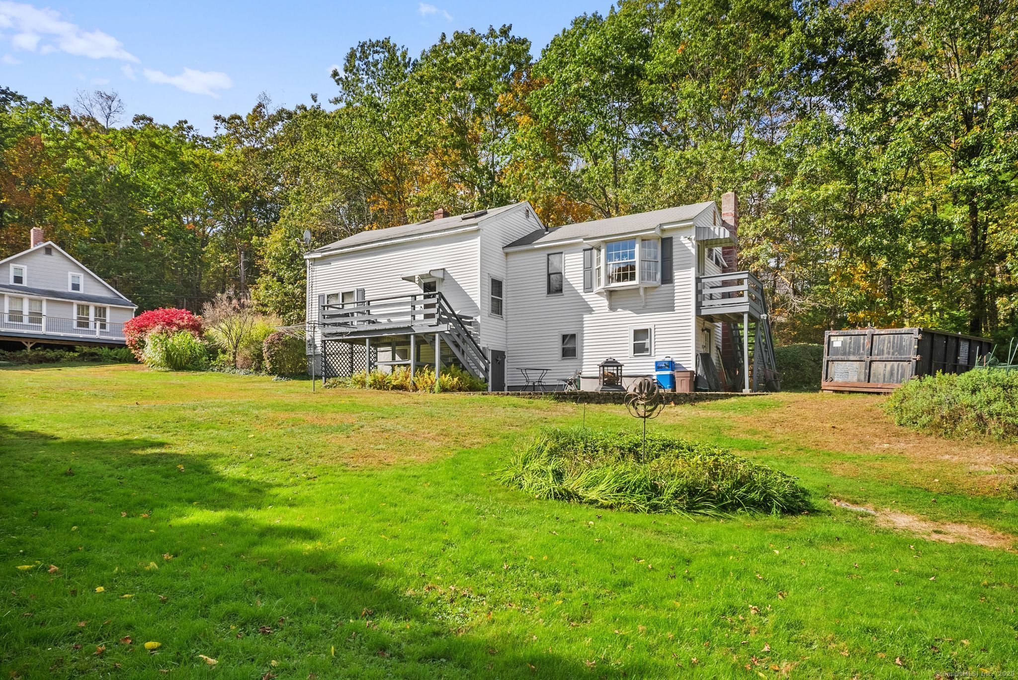 A rare and special find - this beautiful 1.5-acre estate features two single-family homes, each filled with warmth, character, and endless potential. The front residence offers classic New England charm with three bedrooms, one full bath, hardwood floors, a spacious Trex deck, and an attached under-house garage. The rear residence continues the story with two bedrooms, two full baths, hardwood floors throughout, and serene views of the property's private pond - a peaceful retreat just steps from your door. A two-car detached garage provides additional parking, storage, or workspace, adding to the property's versatility and appeal. Perfect for multi-generational living, guest accommodations, or rental income, this property blends vintage charm with natural beauty in a tranquil country setting less than 15 minutes to UConn. Each home has its own private well and septic system, offering convenience and independence on this one-of-a-kind property.