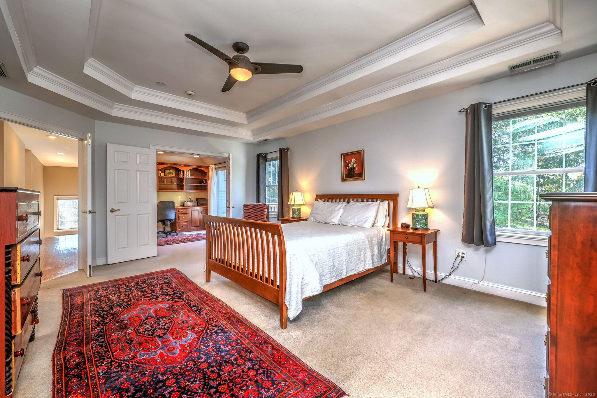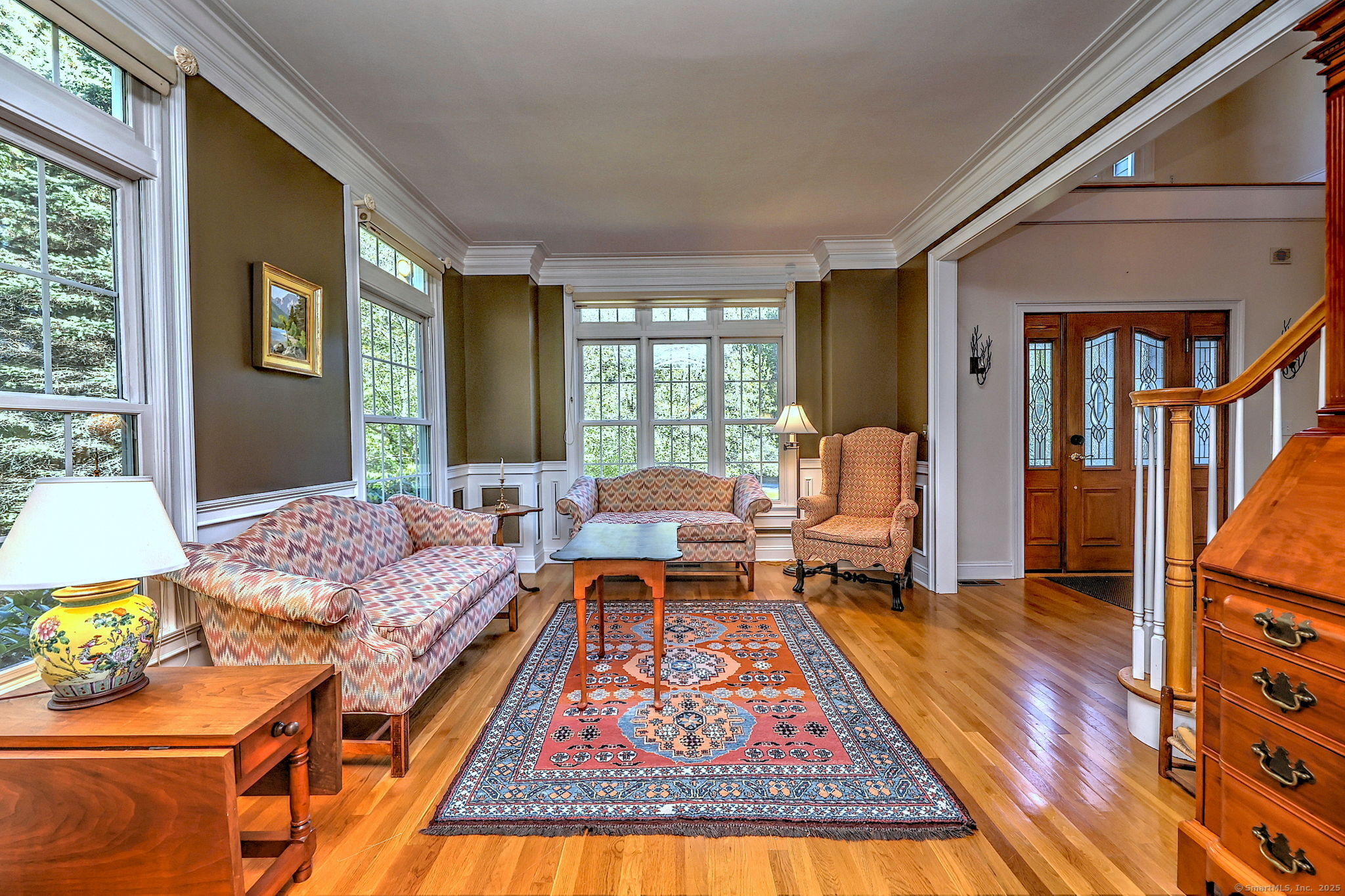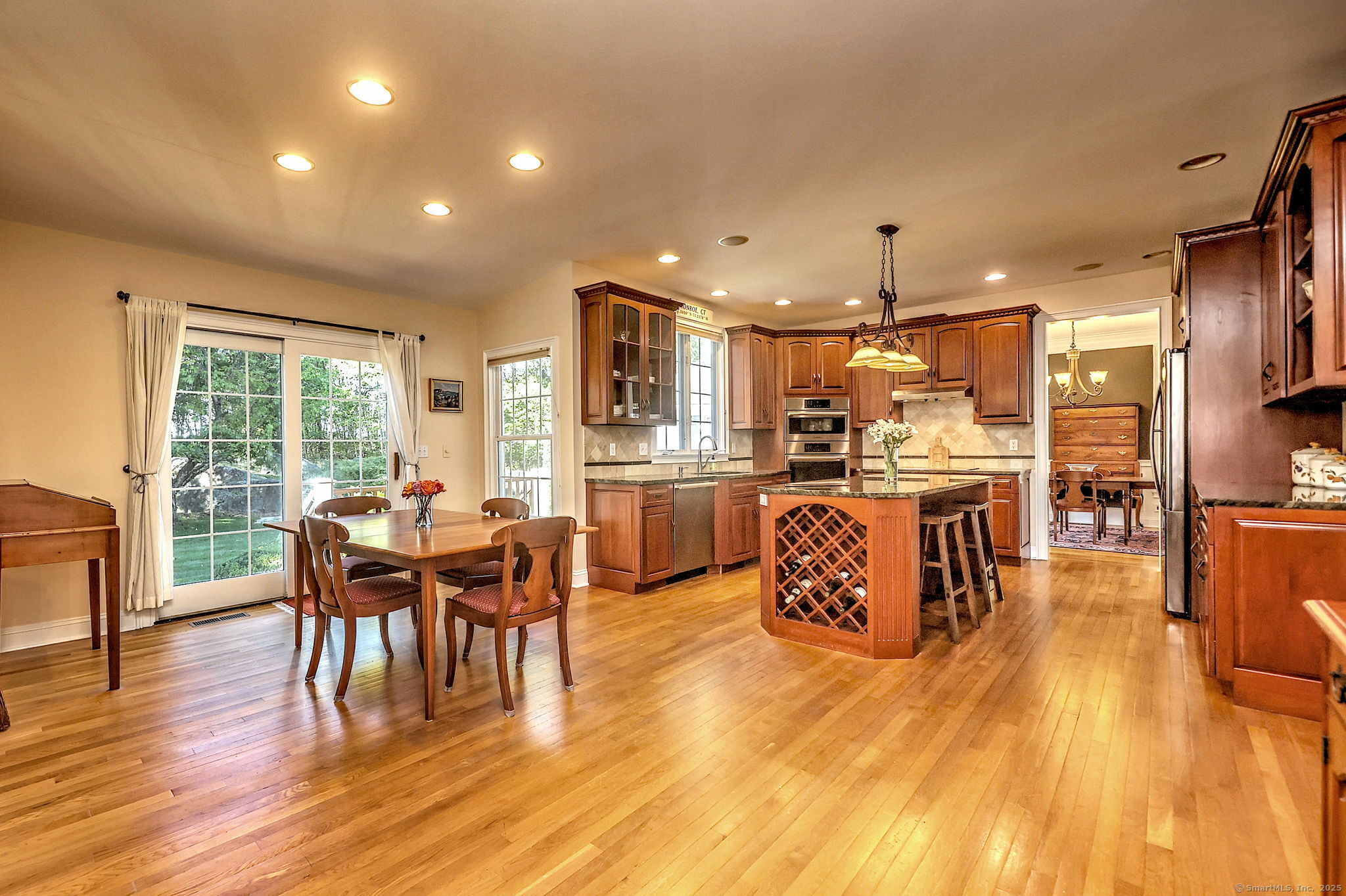 Step into timeless elegance in this impeccably maintained Colonial, gracely situated in Monroe's prestigious Hammertown Estates. From the monent you enter the soaring 18-foot foyer, gleaming hardwood floors, and intricate crown molding set the stage for refined living and sophisticated design. The versatile first-floor Bedroom/Office features french doors & a full bath-ideal for guests or remote work. The heart of the home is the eat-in Kitchen showcasing rich cherry cabinetry, granite countertops, a spacious island breakfast bar, & premium appliances including a new double oven, exhaust hood, and dishwasher. The open-concept layout flows into a bright family room with 18-foot ceilings, expansive windows, and a cozy gas fireplace. Additional first-floor highlights include a formal Living Room, elegant Dining Room w/built-in china cabinet, & french doors opening to a relaxing Deck w/remote-controlled retractable awning. Upstairs, the luxurious Primary Suite offers a full bath & a private Office w/custom built-ins & Balcony access. 3 additional Bedrooms, a full bath, & 2nd floor Laundry complete the upper level. Outside, enjoy a serene backyard w/stone patio & a fully updated detached Home Office-200 sq ft of flexible space w/ Brazilian cherry floors & energy-efficient HVAC. A whole-house generator, house painted 2024 & updated central air add peace of mind. Enjoy easy commuting, Wolfe Park, Great Hollow Lake, & Monroe's award-winning school