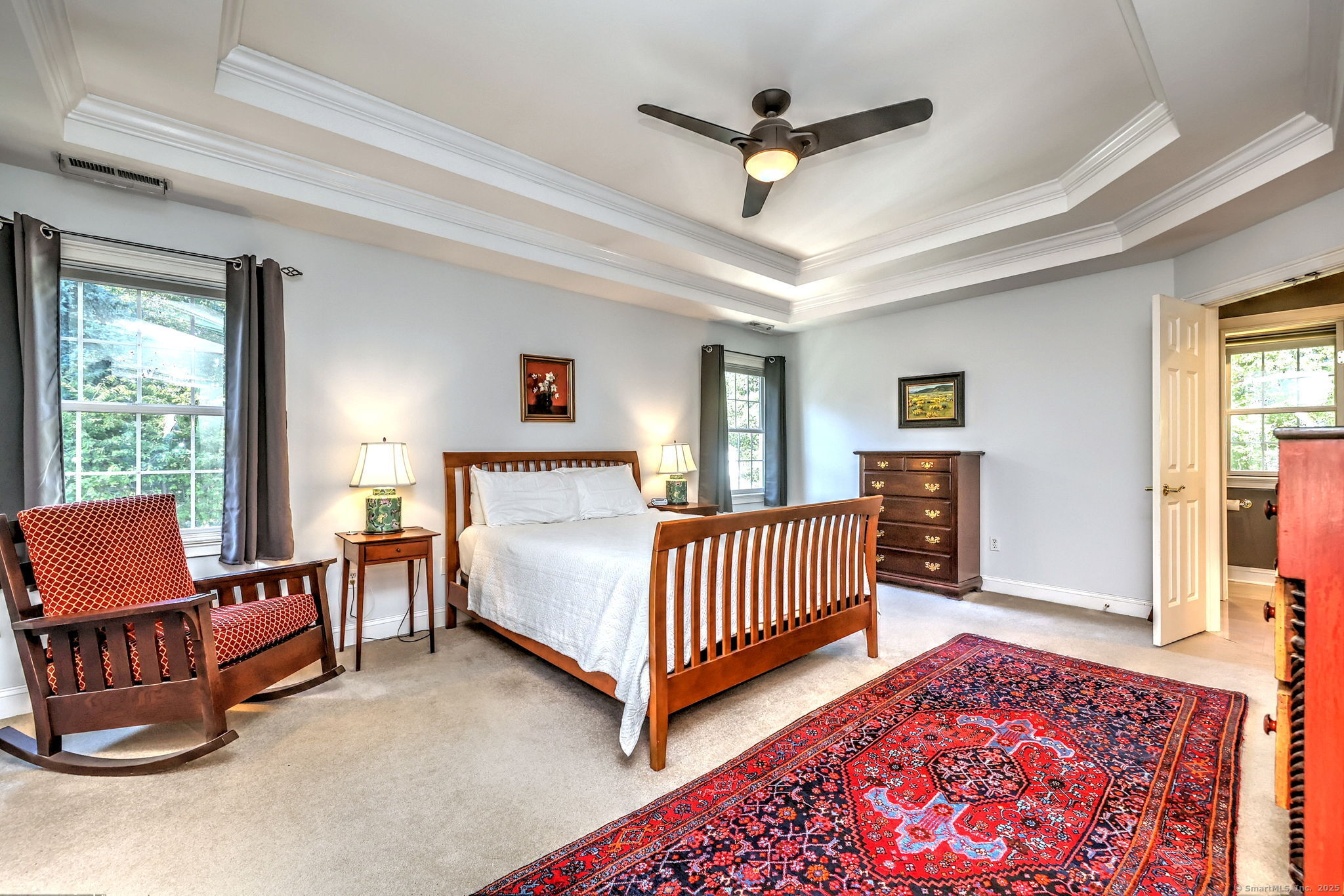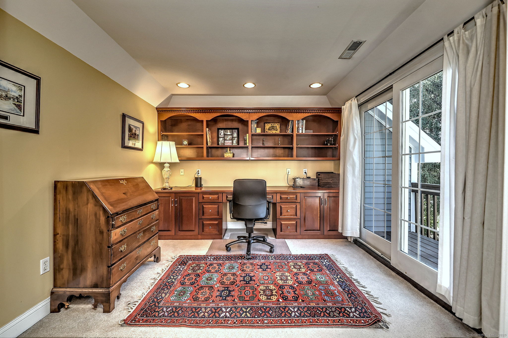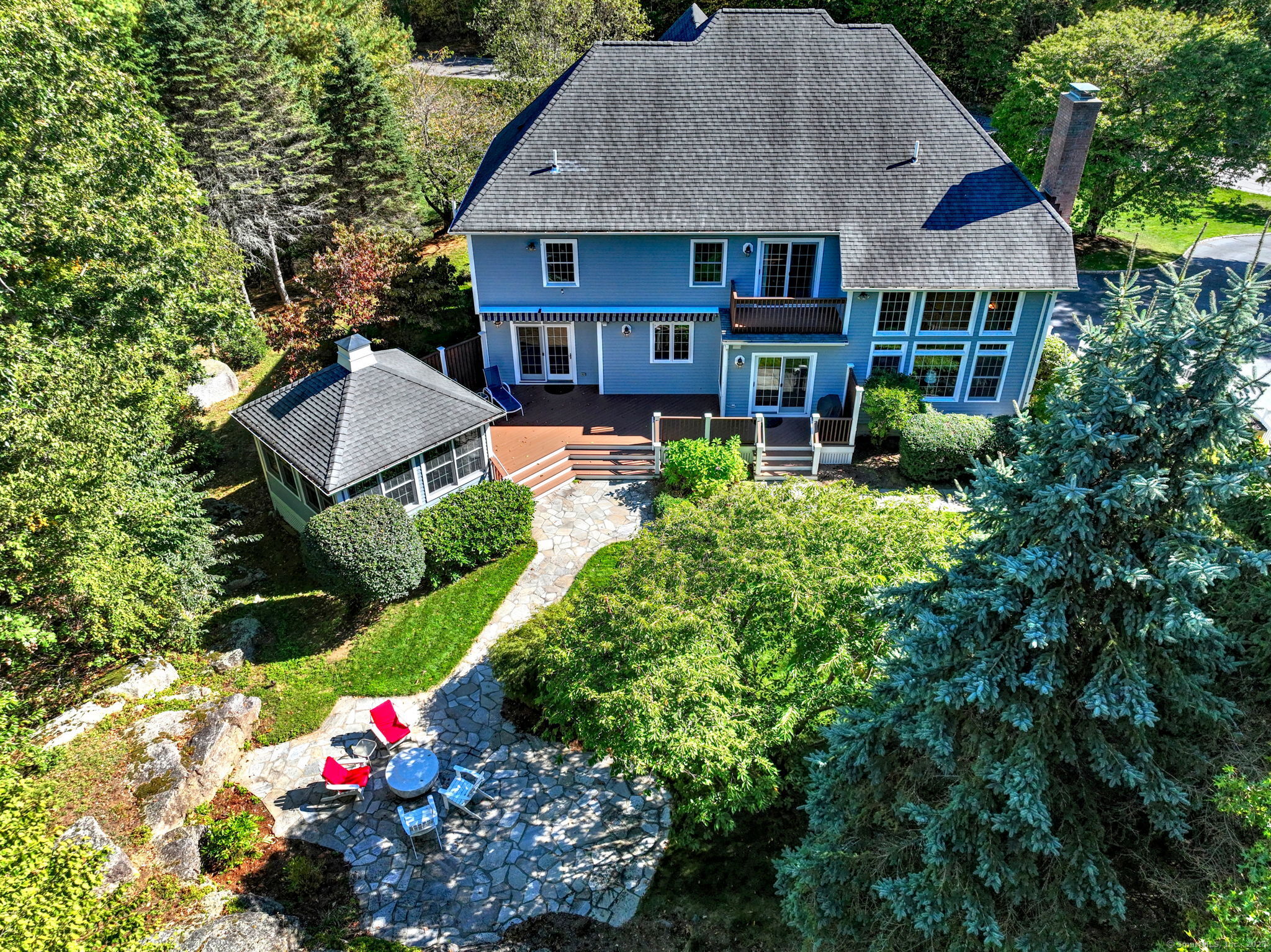 Step into timeless elegance in this impeccably maintained Colonial, gracely situated in Monroe's prestigious Hammertown Estates. From the monent you enter the soaring 18-foot foyer, gleaming hardwood floors, and intricate crown molding set the stage for refined living and sophisticated design. The versatile first-floor Bedroom/Office features french doors & a full bath-ideal for guests or remote work. The heart of the home is the eat-in Kitchen showcasing rich cherry cabinetry, granite countertops, a spacious island breakfast bar, & premium appliances including a new double oven, exhaust hood, and dishwasher. The open-concept layout flows into a bright family room with 18-foot ceilings, expansive windows, and a cozy gas fireplace. Additional first-floor highlights include a formal Living Room, elegant Dining Room w/built-in china cabinet, & french doors opening to a relaxing Deck w/remote-controlled retractable awning. Upstairs, the luxurious Primary Suite offers a full bath & a private Office w/custom built-ins & Balcony access. 3 additional Bedrooms, a full bath, & 2nd floor Laundry complete the upper level. Outside, enjoy a serene backyard w/stone patio & a fully updated detached Home Office-200 sq ft of flexible space w/ Brazilian cherry floors & energy-efficient HVAC. A whole-house generator, house painted 2024 & updated central air add peace of mind. Enjoy easy commuting, Wolfe Park, Great Hollow Lake, & Monroe's award-winning school