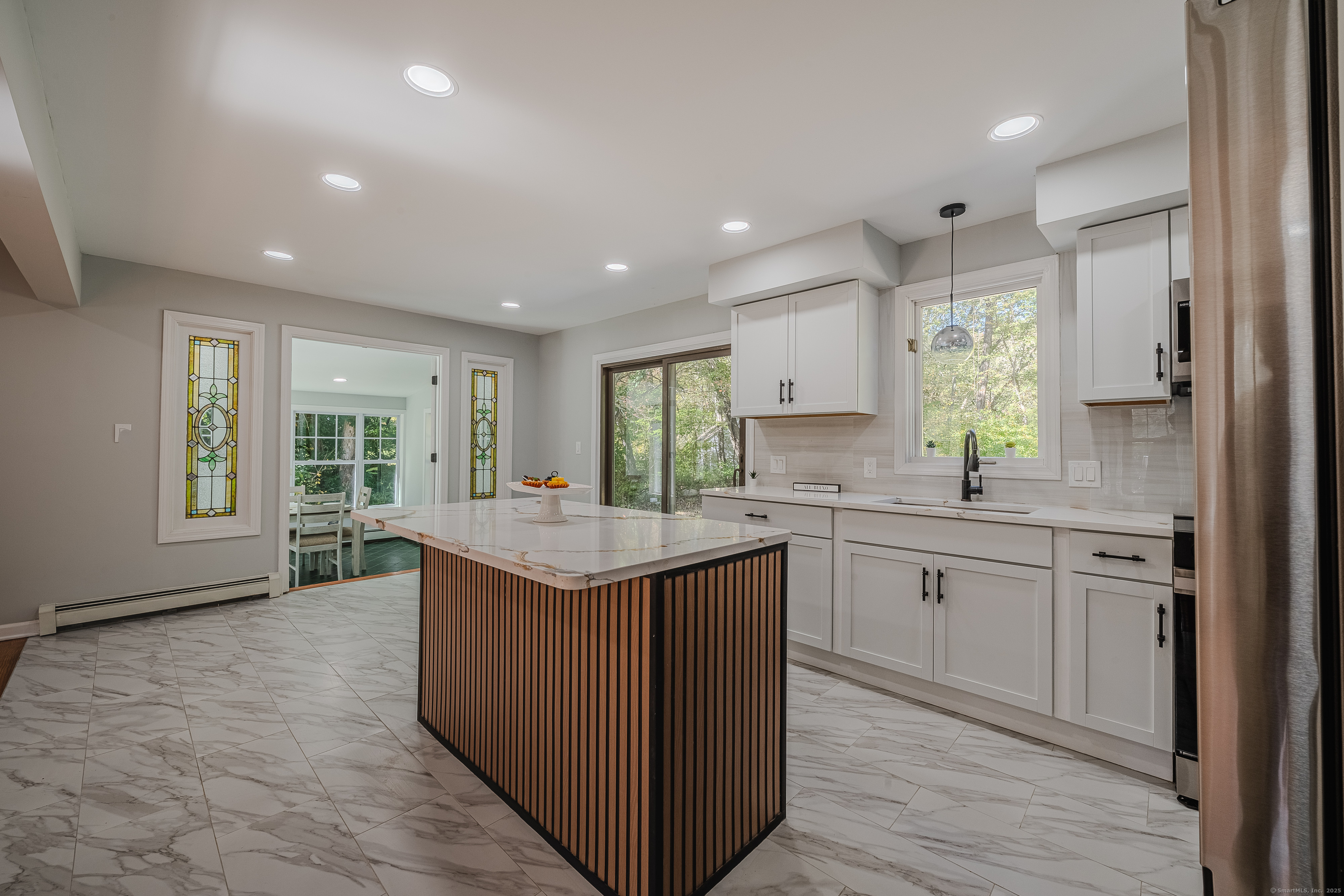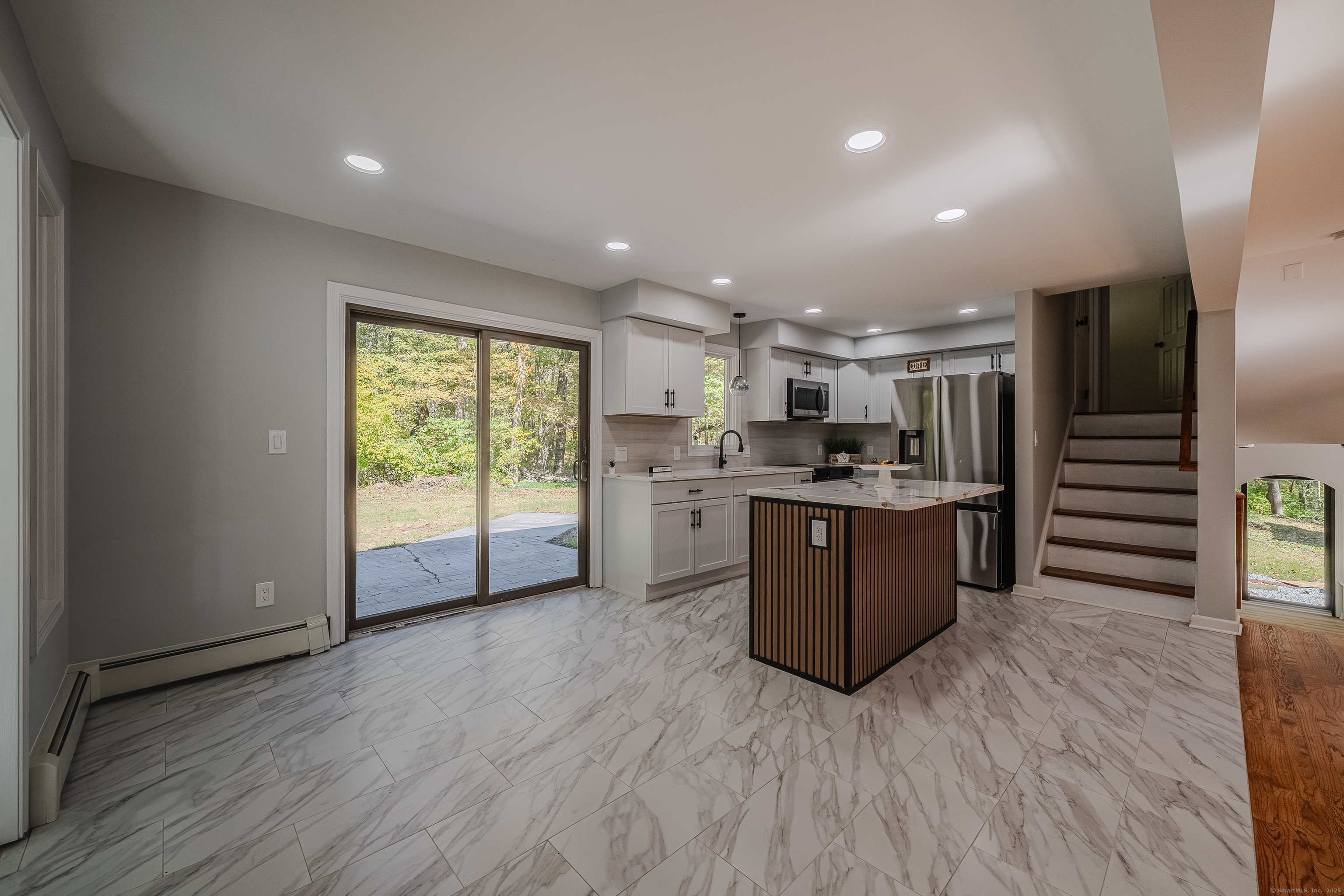 Welcome to this charming split-level home, perfectly situated on a private 4.5 acre lot in the scenic town of Bozrah. The exterior boasts brand-new, low-maintenance vinyl siding, offering a crisp, fresh curb appeal that will last for decades. Inside, the heart of the home is a timeless stone kitchen, complete with modern appliances and durable countertops, ideal for both everyday meals and entertaining. With a comfortable and versatile multi-level layout, this property provides the perfect blend of countryside tranquility and modern, convenient living.