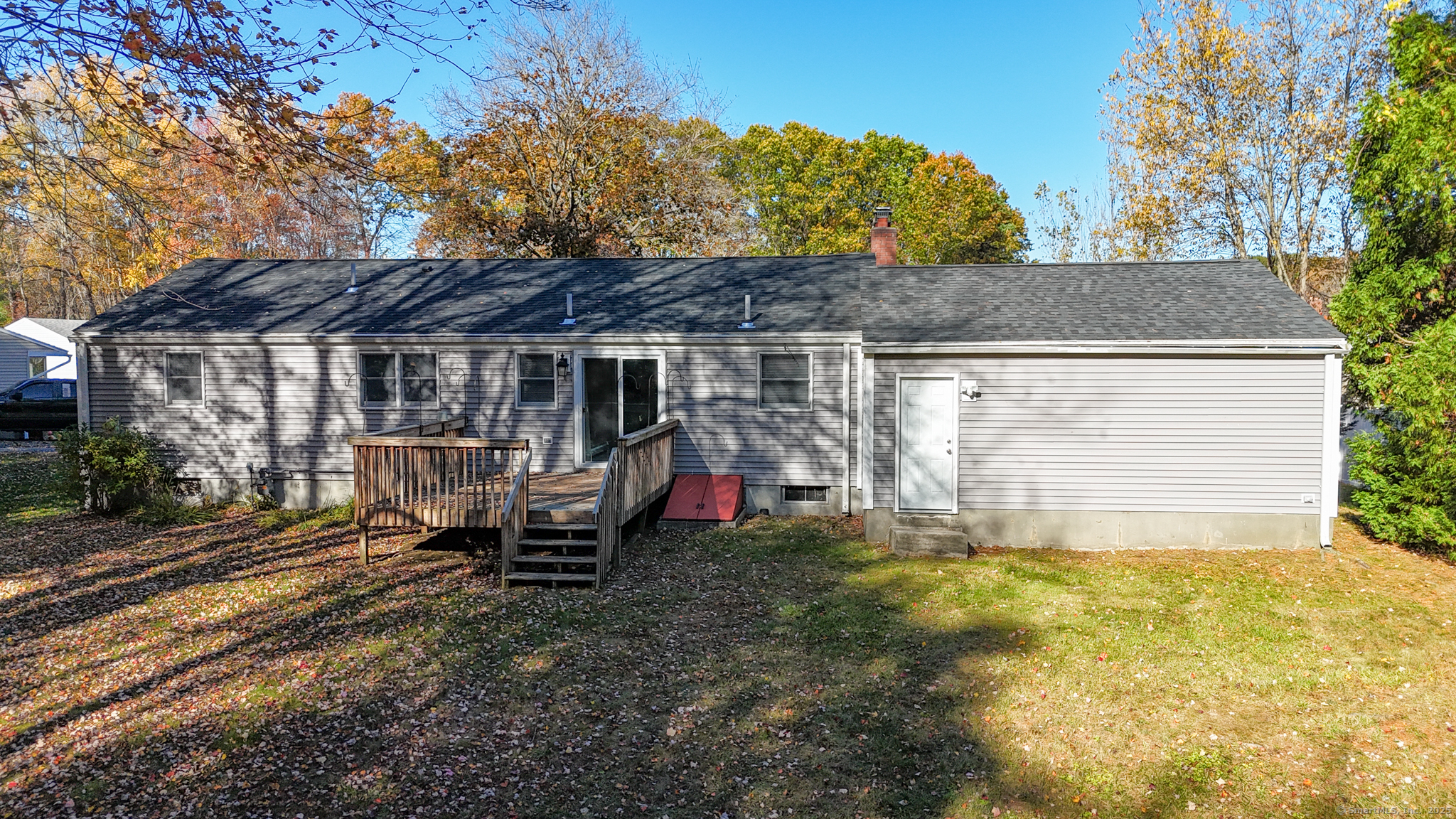LOCATION, LOCATION, LOCATION! A true gem in a prime Enfield location - close to everything yet perfectly nestled in a peaceful, serene setting. Fully renovated featuring an updated kitchen with granite countertops, remodeled bathrooms, newer roof and newer siding and more! Gleaming hardwood floors throughout compliments a spacious layout with plenty of storage space. Large primary bedroom features a half bathroom. Oversized living room with an amazing stone-surround fireplace. Huge recreation room with built-ins, is perfect for a home gym, office, or entertainment space. Attached 2-car garage offers additional storage. Step outside to the private backyard oasis and enjoy morning coffee or evening relaxation on the deck overlooking lush greenery. A rare combination of convenience, style, and tranquility - schedule your showing today!