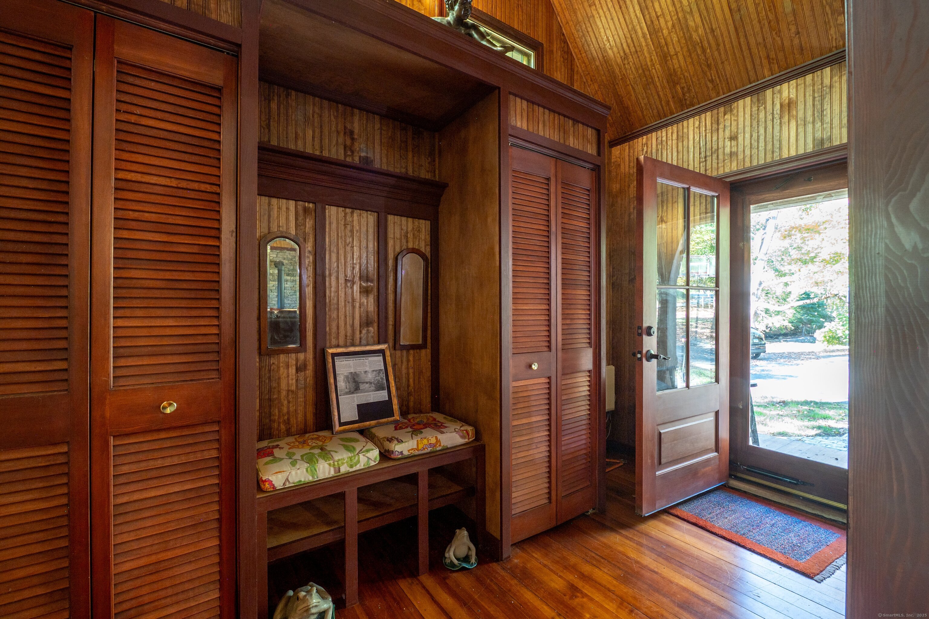 Step into history with this charming circa 1780 Mill House combined with a historic chapel converted to a modern AUD. Located in the Hadlyme area of East Haddam, this unique property boasts many upgrades. Just under two miles from the Historic Hadlyme Ferry and Gillette's Castle State Park. This enchanting home spans 1,786 sf and beautifully balances antique elegance with modern amenities. Bedrooms: Two second floor primary bedrooms, plus two cozy attic rooms for flexible living arrangements. First-Floor Suite: A welcoming suite features a fireplace and private entrance, offering stunning views of the historic spring fed pond. Original Hardwood Floors: Original hardwood floors flow throughout the home with chestnut paneling adding character and warmth to the home. Modern Amenities: Enjoy year-round comfort with central AC, oil heating and a recently installed hot water heater. Outdoor Enhancements: Two security cameras with motion lights are installed for added peace of mind. Invisible fence for pets safety. Natural Setting: A nature lovers dream situated alongside Hungerford Brook including a historic spring fed pond, abutting 250 acres of conservation land ideal for exploration and enjoyment, Outbuildings: Historic chestnut post and beam barn, Carefree Shed and an electrified Carefree Shed chicken coop. Conveniently located just under 5 miles from Fox Hopyard Golf Course, Devils Hopyard State Park and The Goodspeed Opera House. Don't miss this park like pr