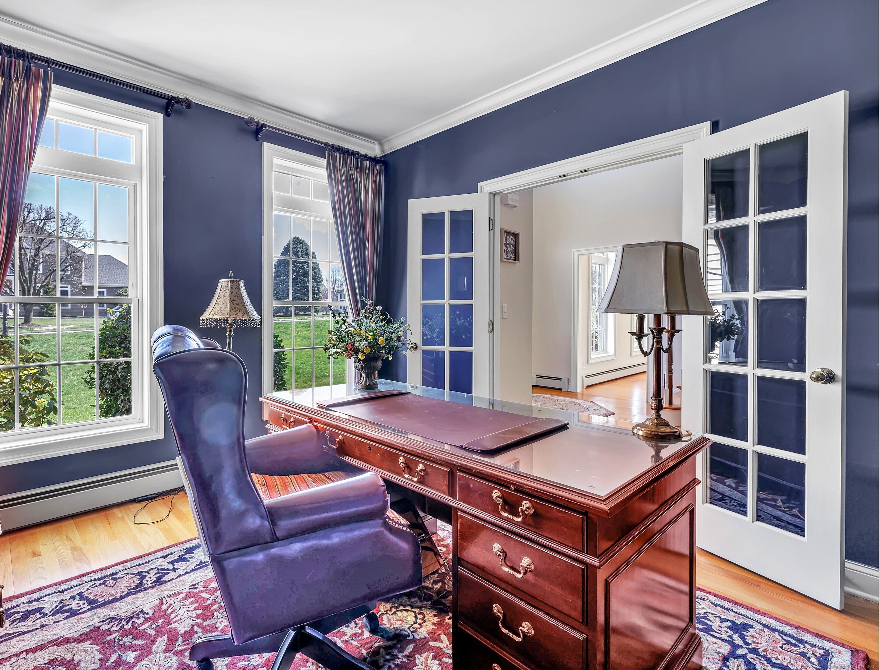 Welcome to Old Dairy Estates. A 1 owner, custom built vinyl-sided colonial designed for indoor/outdoor enjoyment. Attached garages & extended driveway space offers additional off street parking. This 3300+ sf home with a full w/o lower level is plumbed for a full bath & has great potential for future expansion or plenty of storage options. This 9 room versatile floor plan has a 2 story foyer, transoms over the 1st floor windows & 9' ceilings on the main level letting in plenty of natural light. The oversized eat-in-kitchen w/a walk in pantry accommodates all your kitchen necessities. Double built-in ovens & an x-long breakfast bar offers plenty of seating or serving choices. In addition there is a spacious dining area w/access to an sizable deck overlooking your backyard, which borders open space. Relax in your cozy family room with a gas (propane) fireplace or enjoy the formal dining room/living room. There is plenty of room for all. A private office with glass French doors & a 1/2 bath complete the first level. The 2nd flr consists of a private primary bedroom w/a walk-in closet & roomy bath w/a whirlpool tub, separate shower and an extended vanity with double sinks. There are 3 additional generously-sized bedrooms with another full bath & laundry. Gleaming hardwood floors (refinished in 2025) , 2 zoned c/a, 4 zones of heating (boiler approx 3 yrs old) sprinkler system, city water, city sewer & underground utilities. Schedule your private viewing today