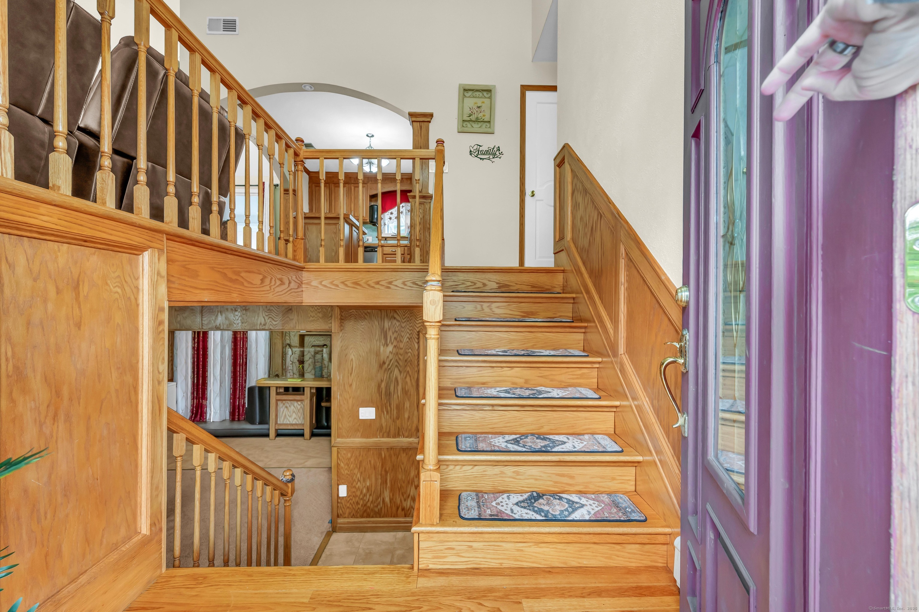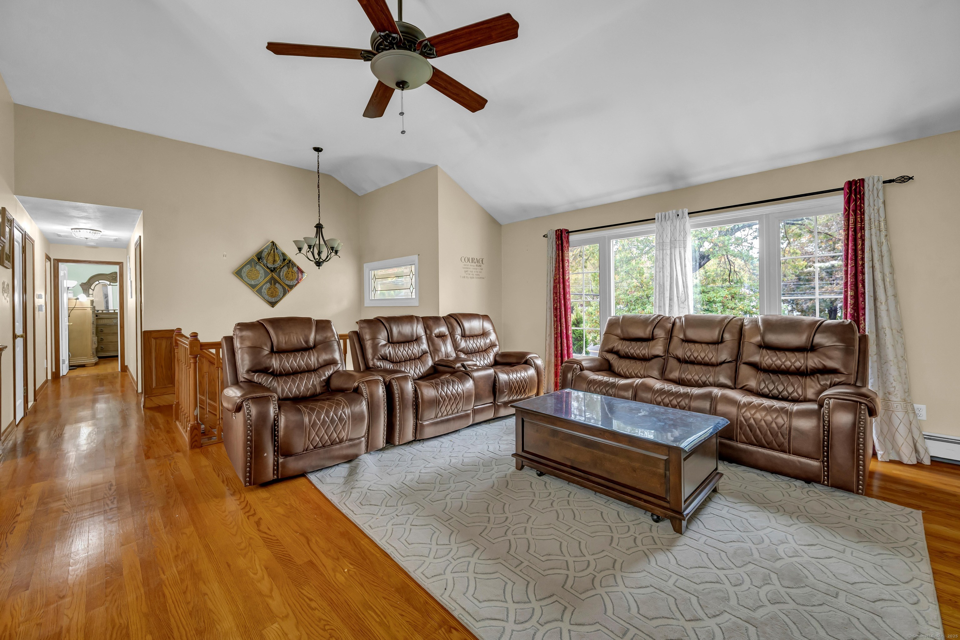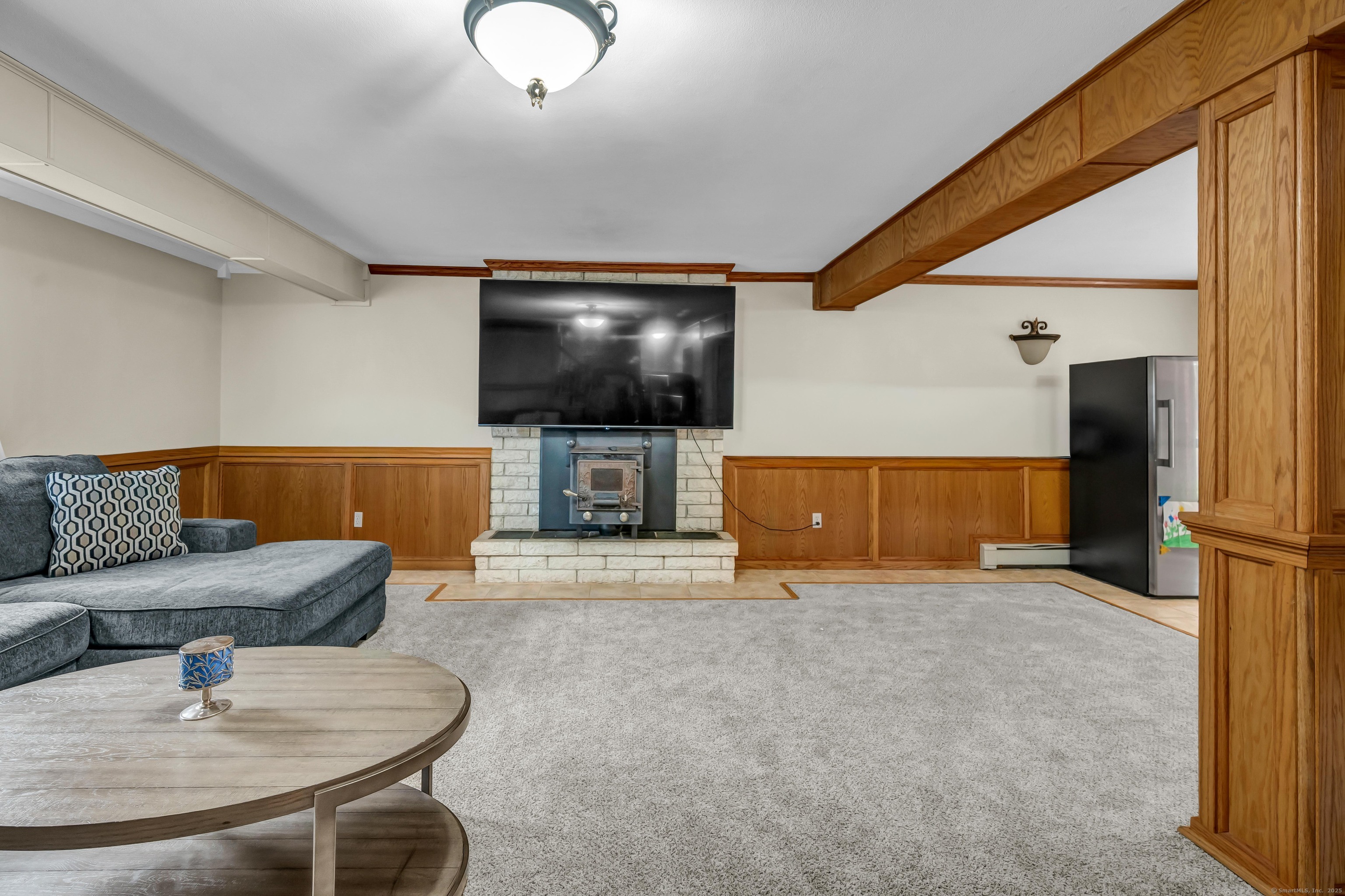 Spacious well maintained raised ranch on well manicured level corner lot waiting for its new owner to enjoy. Open bright living area features hardwood floors, cathedral ceilings and a stone fireplace. The kitchen features granite countertops, stainless steel appliances and ample cabinet space. Right off the formal dining room is a three season sunroom with views of the meticulously landscaped property where you can enjoy a morning coffee or afternoon tea. All three bedrooms are generously sized. The heated lower level features another fireplace with a wood-burning stove, wet bar, newer carpeting, additional bath, laundry, and walkout to the tiled patio. There is a large storage shed in the level backyard. The two car garage has a recessed area perfect for a work bench or storage. Public water and sewer is offered here as well.
