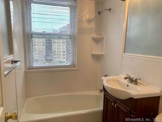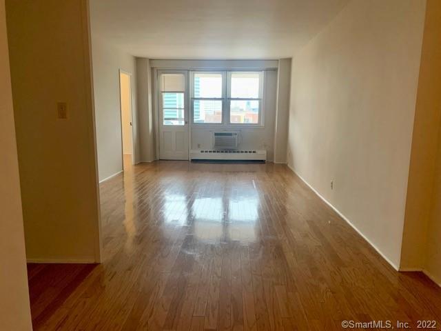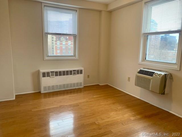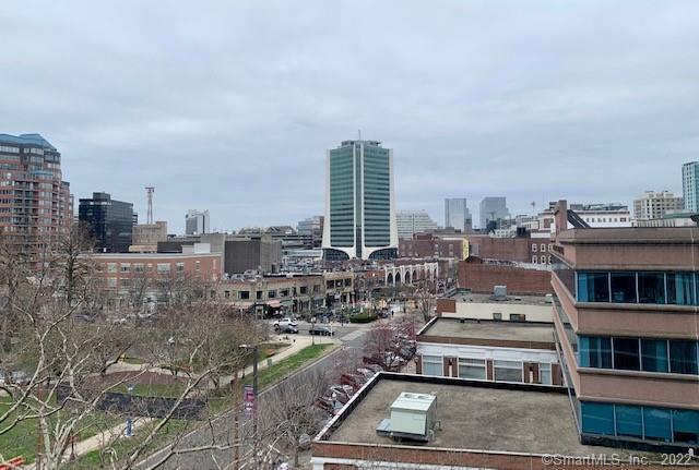 This spacious freshly painted 2 bedroom condo is one of the most sought after downtown locations within easy walking distance to everything in vibrant downtown Stamford. Enjoy popular Latham Park located directly across the street or take a leisure walk to restaurants, library, theaters, shopping, seasonal farm and transportation. Open floor plan, hardwood floor throughout and kitchen with ample light oak cabinetry, granite countertop and gas range. Bathroom with a new vanity. Plenty of closets, private oversized 11X6 balcony with great city views. This condo is located in a well maintained and managed, secured downtown building with bright laundry facilities and a storage on main level with a live in superintendent on site. Heat and hot water and cooking gas included in rent. Reserved off street parking #40. Excellent Credit and References Required.
