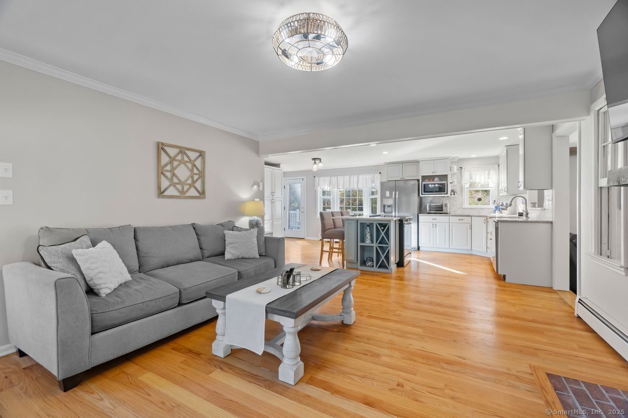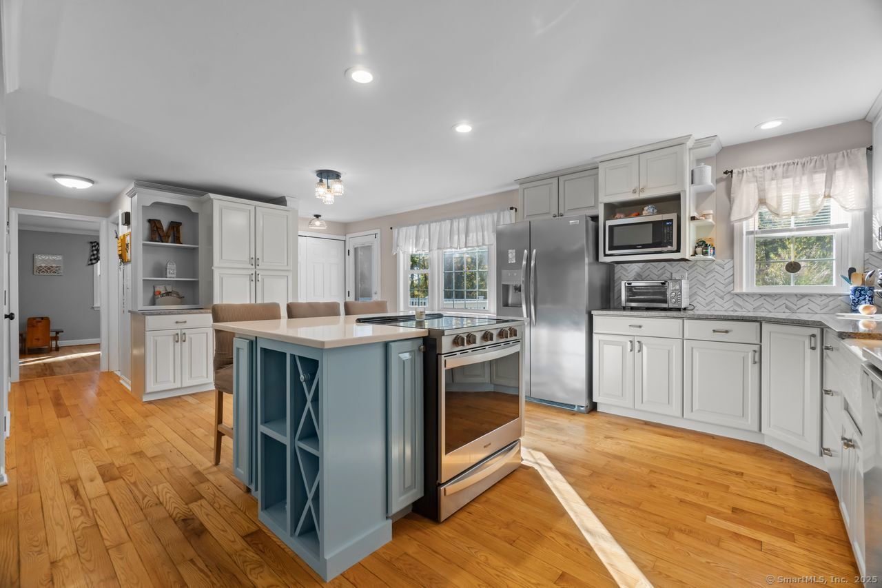 Welcome to 219 Martin Road in Hebron, CT - a beautifully updated and meticulously maintained, 2,490 square foot home offering comfort, style, and the perfect layout for everyday living and entertaining. This spacious 9-room Cape style home features 3 bedrooms and 2.5 baths, including a spacious primary suite complete with a full bath and generous closet space. Sunlight floods the interior through ample windows, enhancing the open and inviting floor plan. Hardwood floors flow through the formal living and dining rooms into the kitchen, which boasts island seating and opens seamlessly to the cozy family room with a fireplace. Additionally, there is a spacious 17x20 entertainment room which leads to the adjoining sunroom and out to a serene paver stone patio overlooking a tranquil koi pond with waterfall and brook-like features. Also, you will enjoy outdoor living at its finest with a large wood deck all set on a picturesque, lightly treed 1+ acre lot adorned with stonewalls, a firepit patio, and handy storage sheds. Additional highlights include first-floor laundry, an oversized 2-car attached garage, and approximately 400 square feet of finished space in the lower level. All of this nestled in a peaceful country setting, yet just minutes from town amenities, commuting routes, golf, stables, the Hebron Harvest Fairgrounds, and more. This home offers the ideal blend of comfort, charm, and convenience - ready to welcome you home.