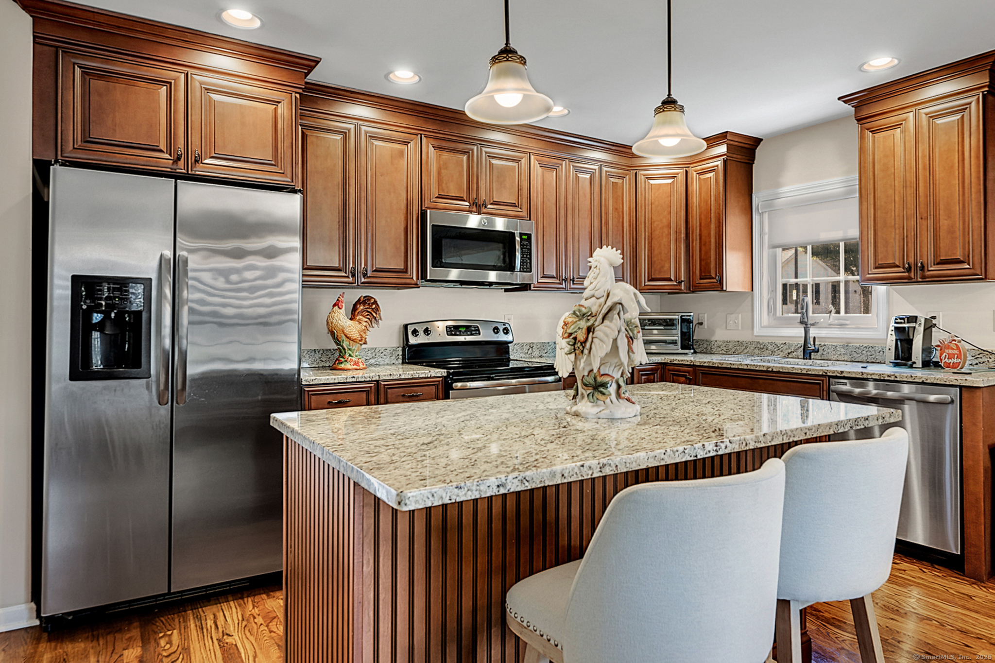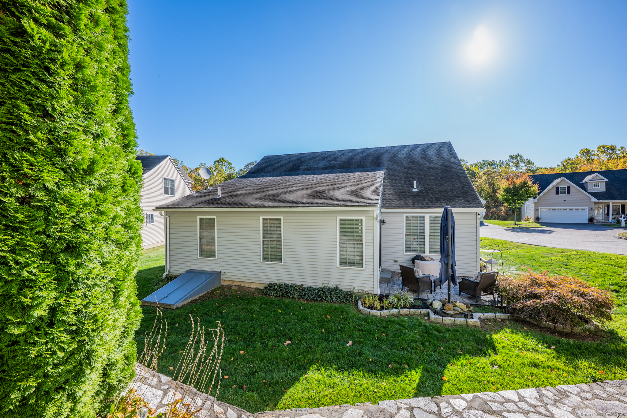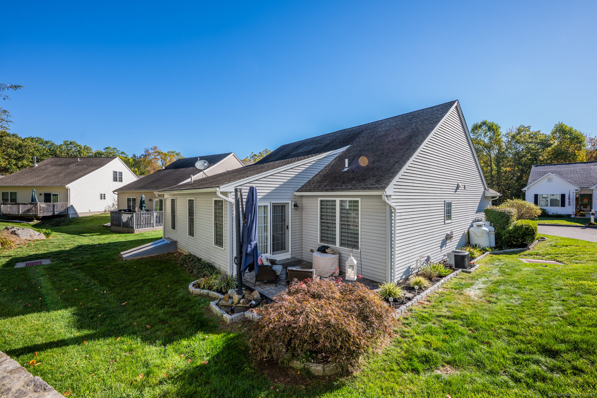 WELCOME to your next chapter of living, at Waterbury's one and only 55+ADULT LIVING COMMUNITY!! WOODS EDGE is a 20 unit, free standing home community nestled in the East End and bordering the Wolcott line. 55+ADULT LIVING gives you the ability to come and go whenever you desire. The HOA includes ground maintenance with 2 easy to get to green spaces one with a gazebo. Meander over and just watch the world go by, meet your neighbors and enjoy this new phase in your life! This Ranch style unit has everything you need on one level. Primary suite has a full bath, second bedroom/guest/office room is adjacent to the main full bathroom. Entertain in the spacious, open style kitchen, living, dining area. The kitchen was custom built for this owner featuring upgraded cabinetry and granite counters. The laundry room is conveniently located in the main hall. The 2 car attached garage features custom cabinetry with granite counters, perfect for storing your treasures! The back patio is a wonderful retreat area, relax and unwind, your home now!