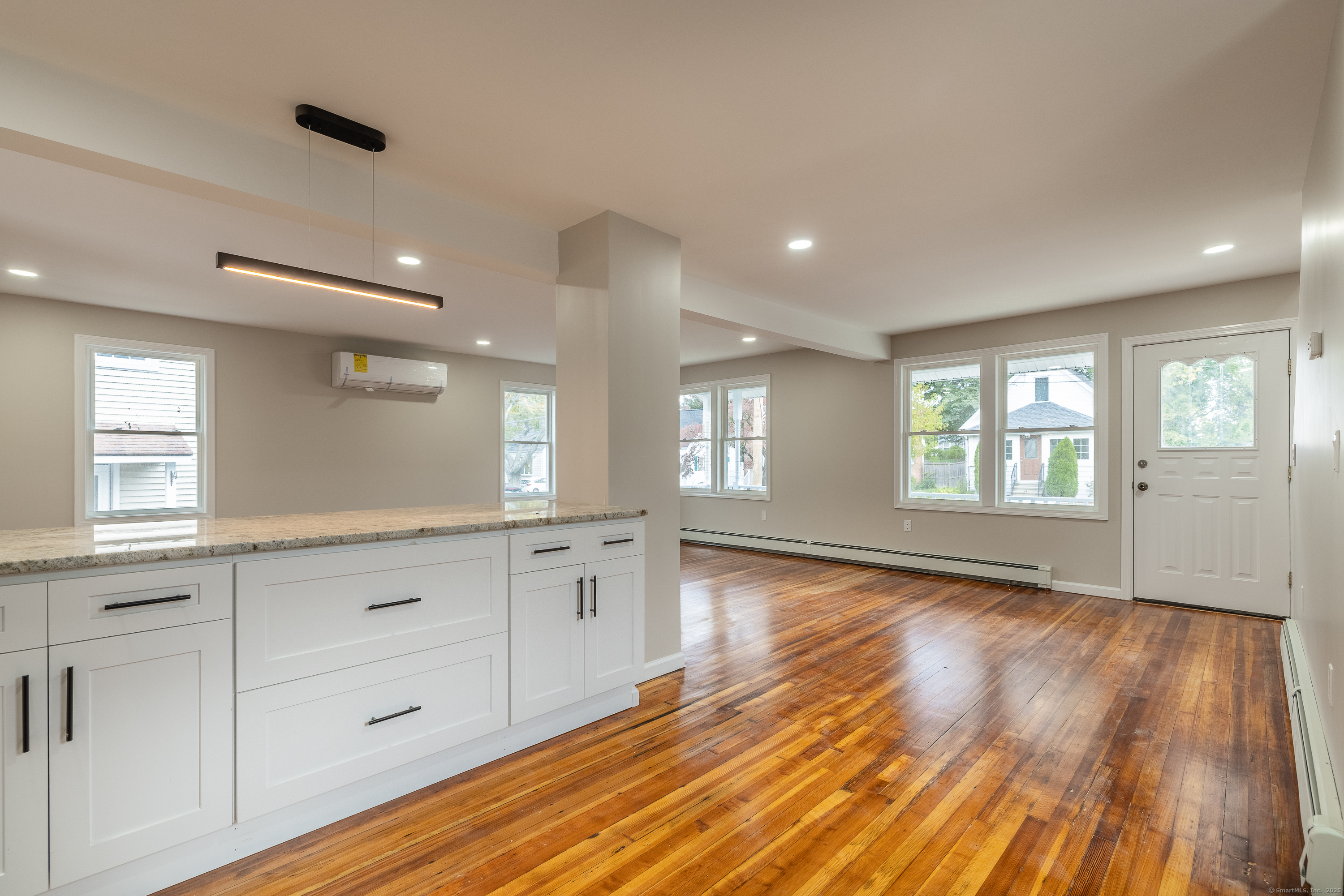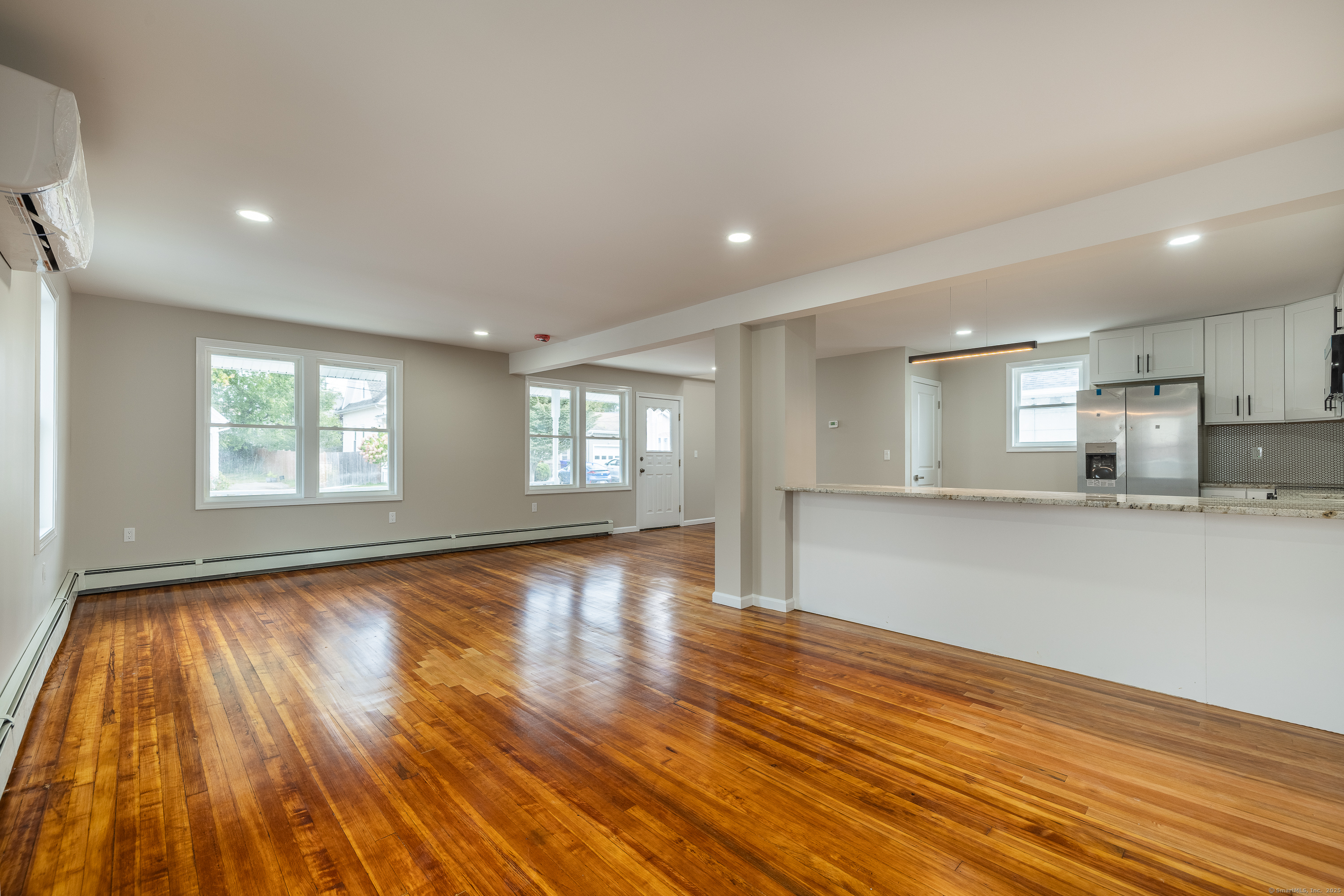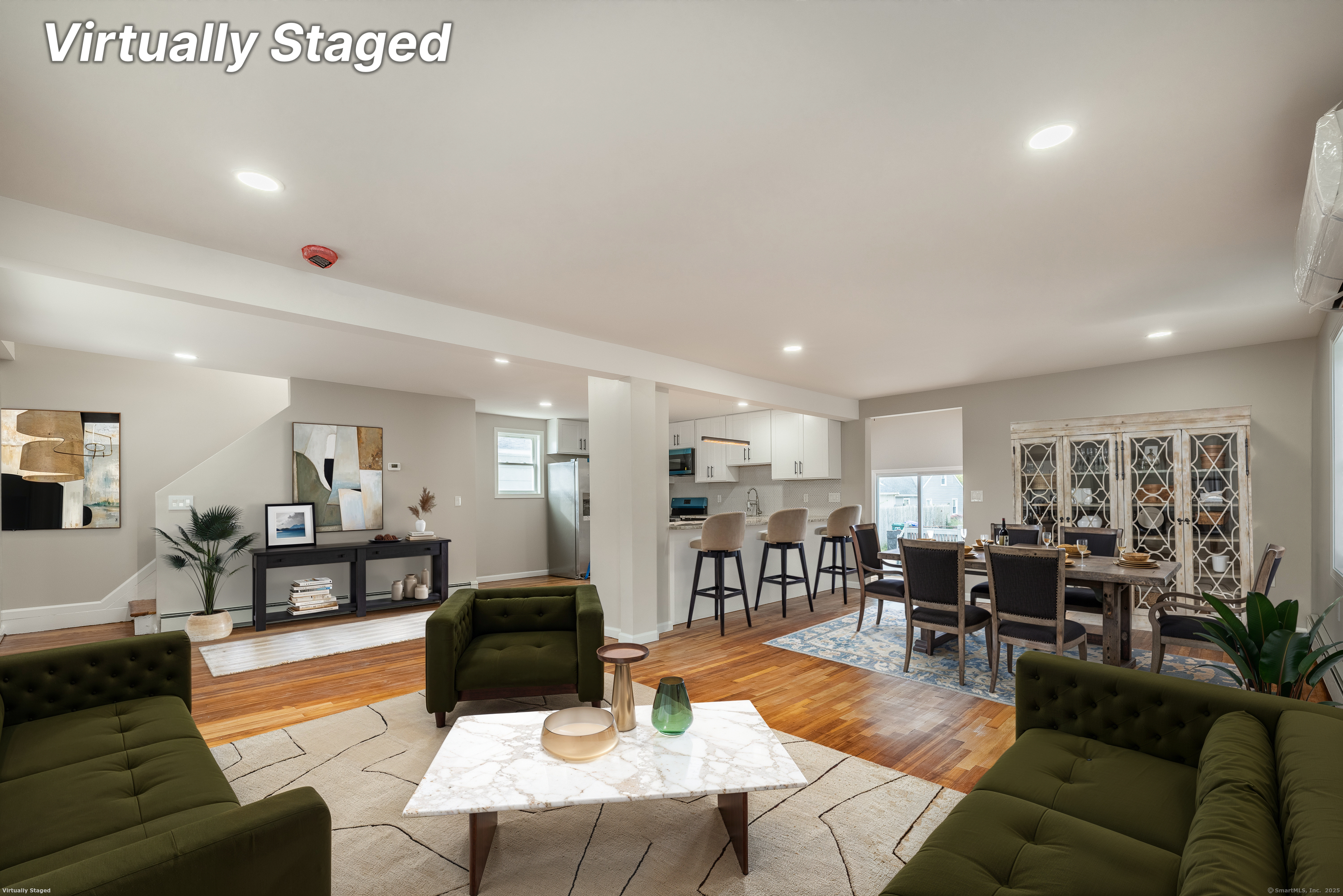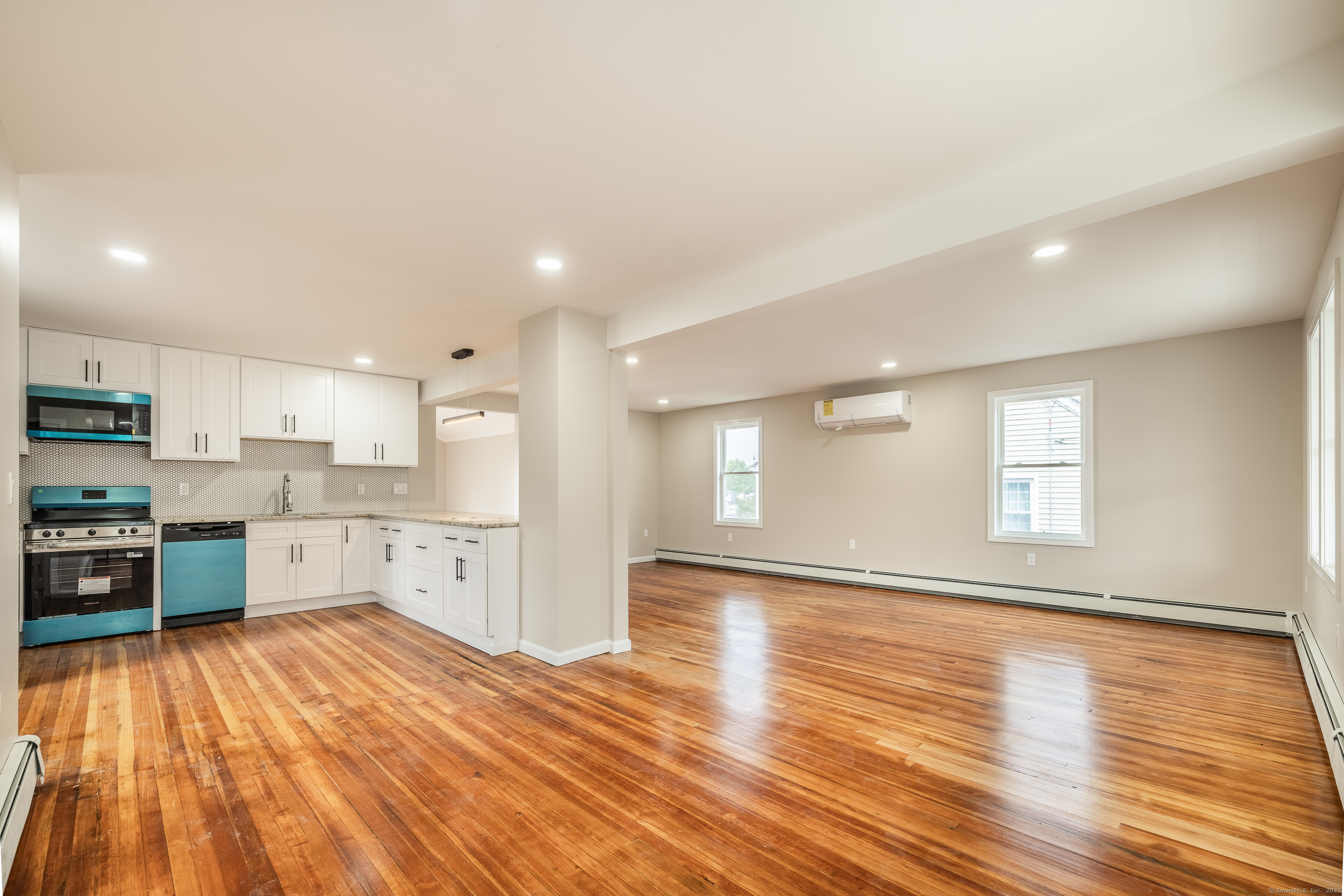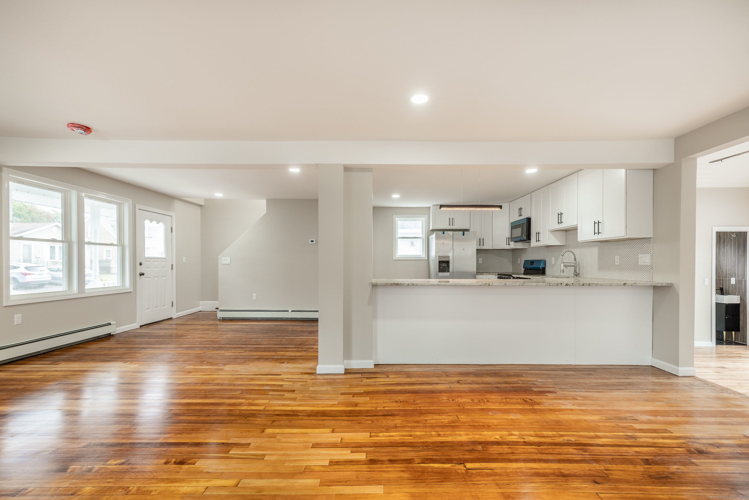 Beautifully remodeled and expanded 4 bedroom Colonial. When you first walk in you will be amazed by the open concept Living room/dining room/kitchen space this home has. The kitchen offers brand new white cabinetry with granite counter tops, gorgeous backsplash, stainless steel appliances, and a huge island that connects with the dining room area. Living room/dining room and kitchen all have new recessed lighting and a split system making this section bright and airy. From the dining area you can go to the family room with vaulted ceilings, sliders to deck and a brand new half bath with a unique black vanity. On this home 2nd level you can find 3 good size full bedroom with large mirror closet doors. A full bath with stunning finishes on tile and vanity and the designated laundry room. Both 1st and 2nd floors offer gleaming hardwood floors throughout. But wait there's MORE! This home is completed with a BRAND NEW PRIMARY ROOM with vinyl floor, new large windows, recessed lighting, walk in closet and a full bath with the latest styles in vanity and tile. This property also comes with a brand new roof, most of the windows are new, brand new oil tank. Home has a welcoming open front porch and a fenced backyard with a large deck ideal for entertaining. Home is just minutes from train station, major shopping areas and I-95. Truly a must see!