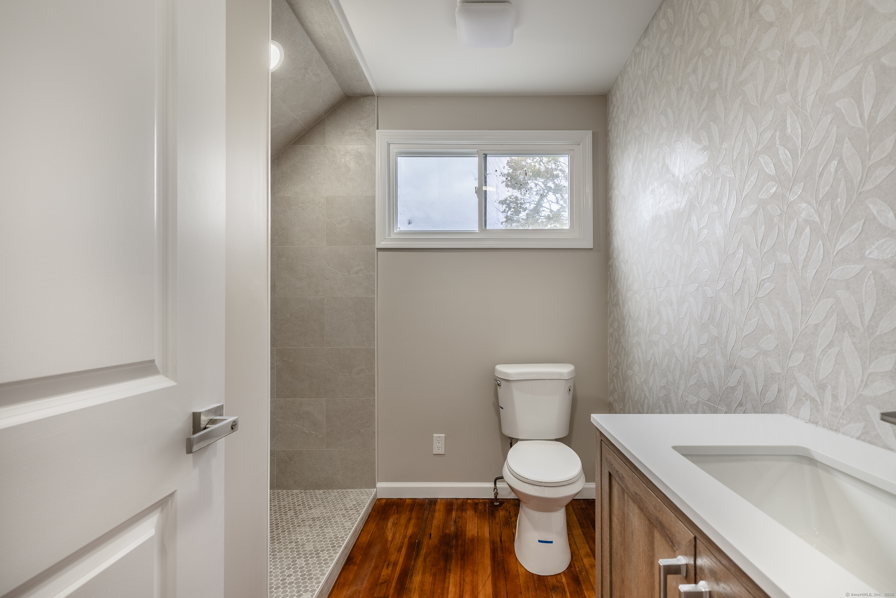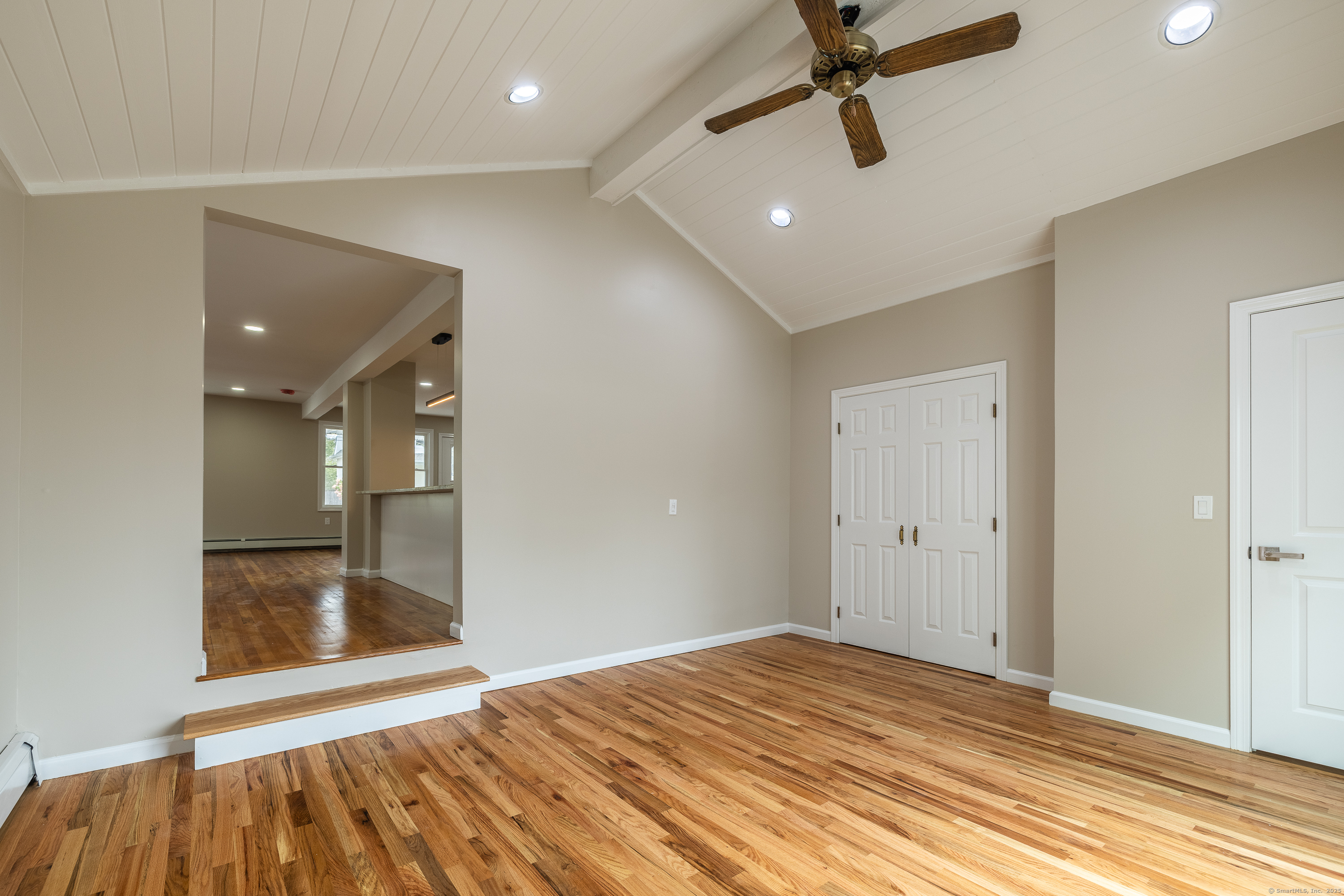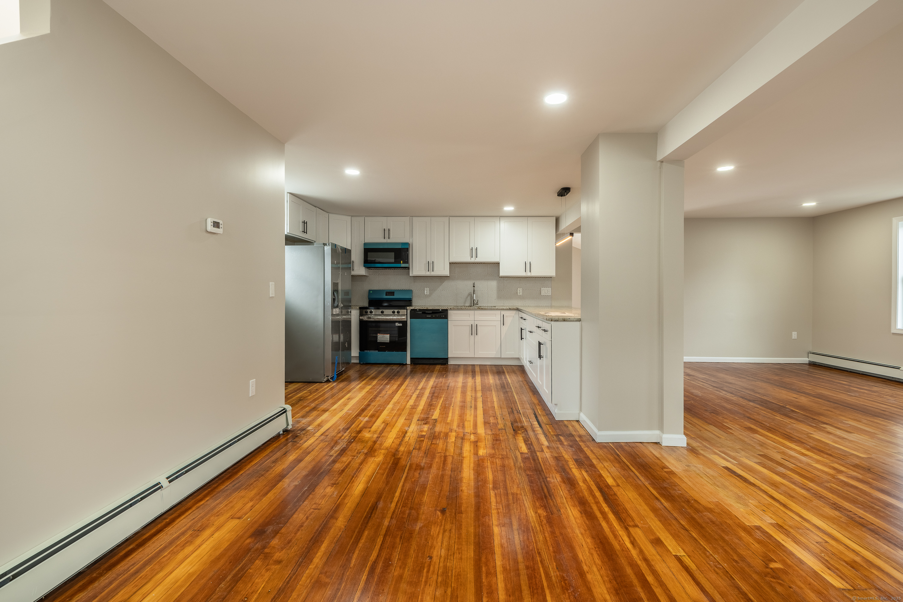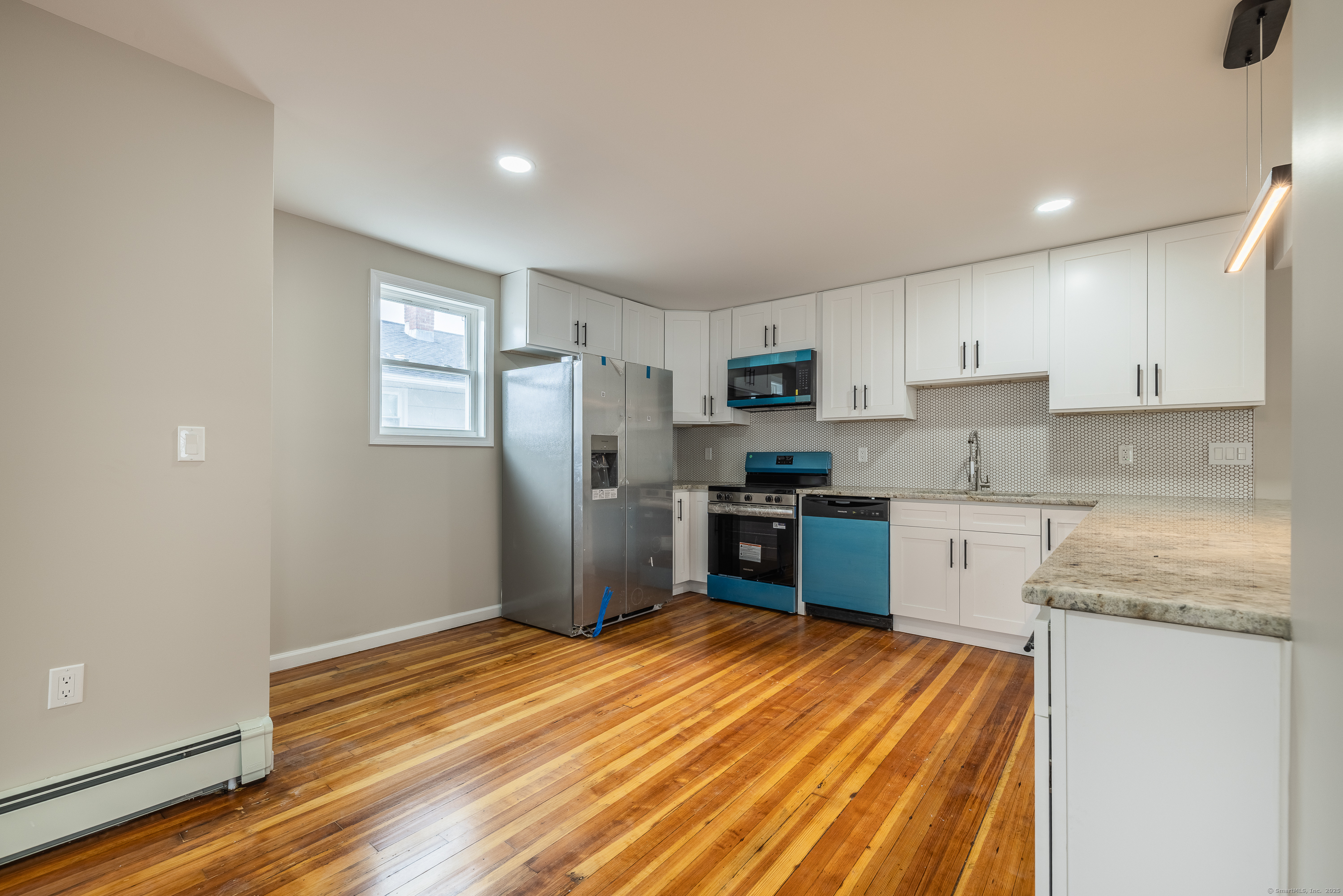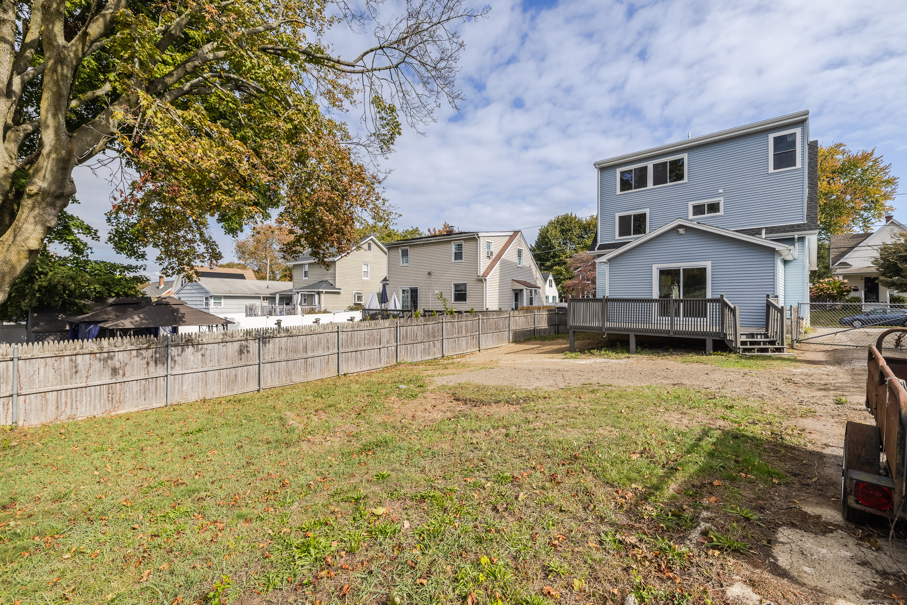 Beautifully remodeled and expanded 4 bedroom Colonial. When you first walk in you will be amazed by the open concept Living room/dining room/kitchen space this home has. The kitchen offers brand new white cabinetry with granite counter tops, gorgeous backsplash, stainless steel appliances, and a huge island that connects with the dining room area. Living room/dining room and kitchen all have new recessed lighting and a split system making this section bright and airy. From the dining area you can go to the family room with vaulted ceilings, sliders to deck and a brand new half bath with a unique black vanity. On this home 2nd level you can find 3 good size full bedroom with large mirror closet doors. A full bath with stunning finishes on tile and vanity and the designated laundry room. Both 1st and 2nd floors offer gleaming hardwood floors throughout. But wait there's MORE! This home is completed with a BRAND NEW PRIMARY ROOM with vinyl floor, new large windows, recessed lighting, walk in closet and a full bath with the latest styles in vanity and tile. This property also comes with a brand new roof, most of the windows are new, brand new oil tank. Home has a welcoming open front porch and a fenced backyard with a large deck ideal for entertaining. Home is just minutes from train station, major shopping areas and I-95. Truly a must see!