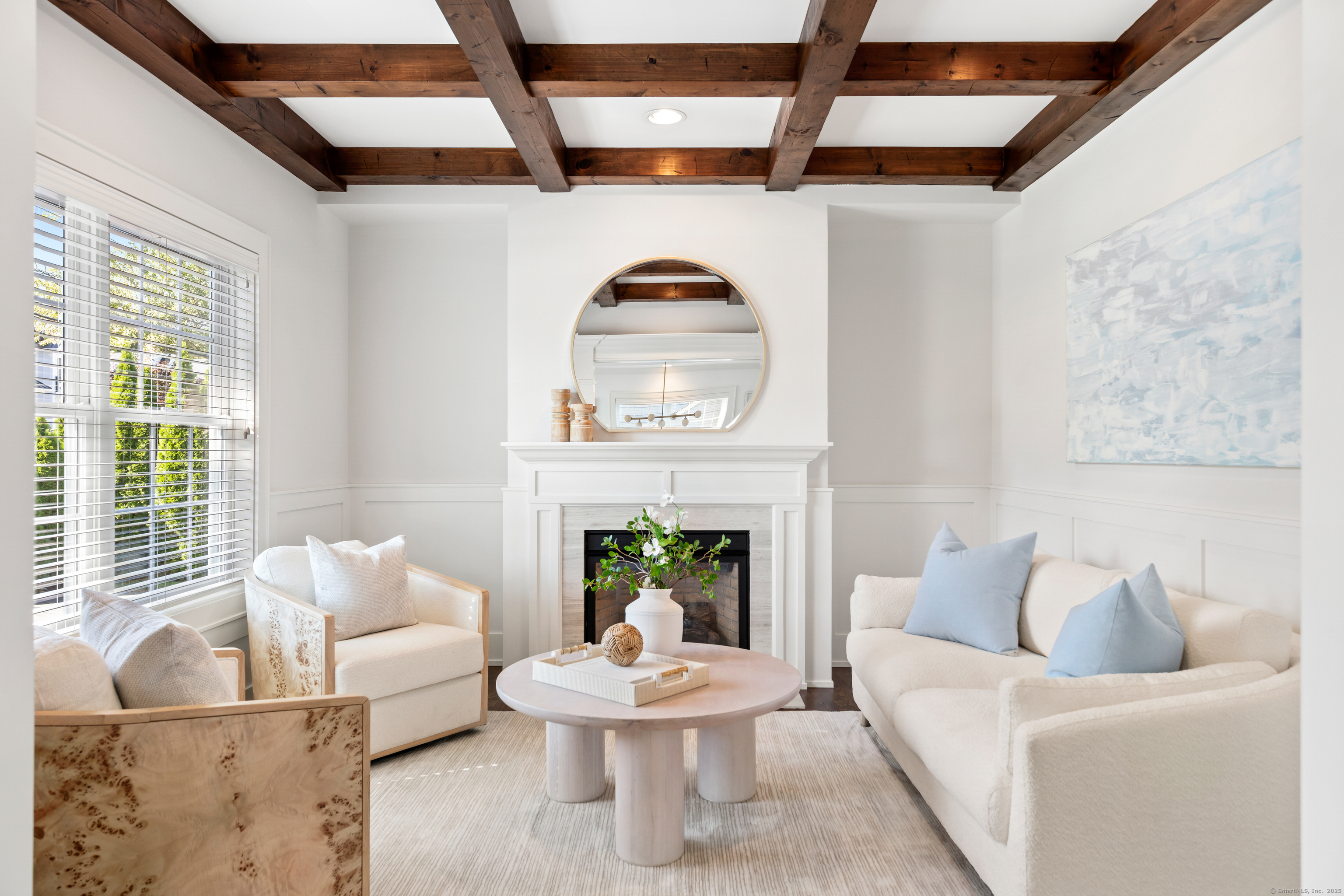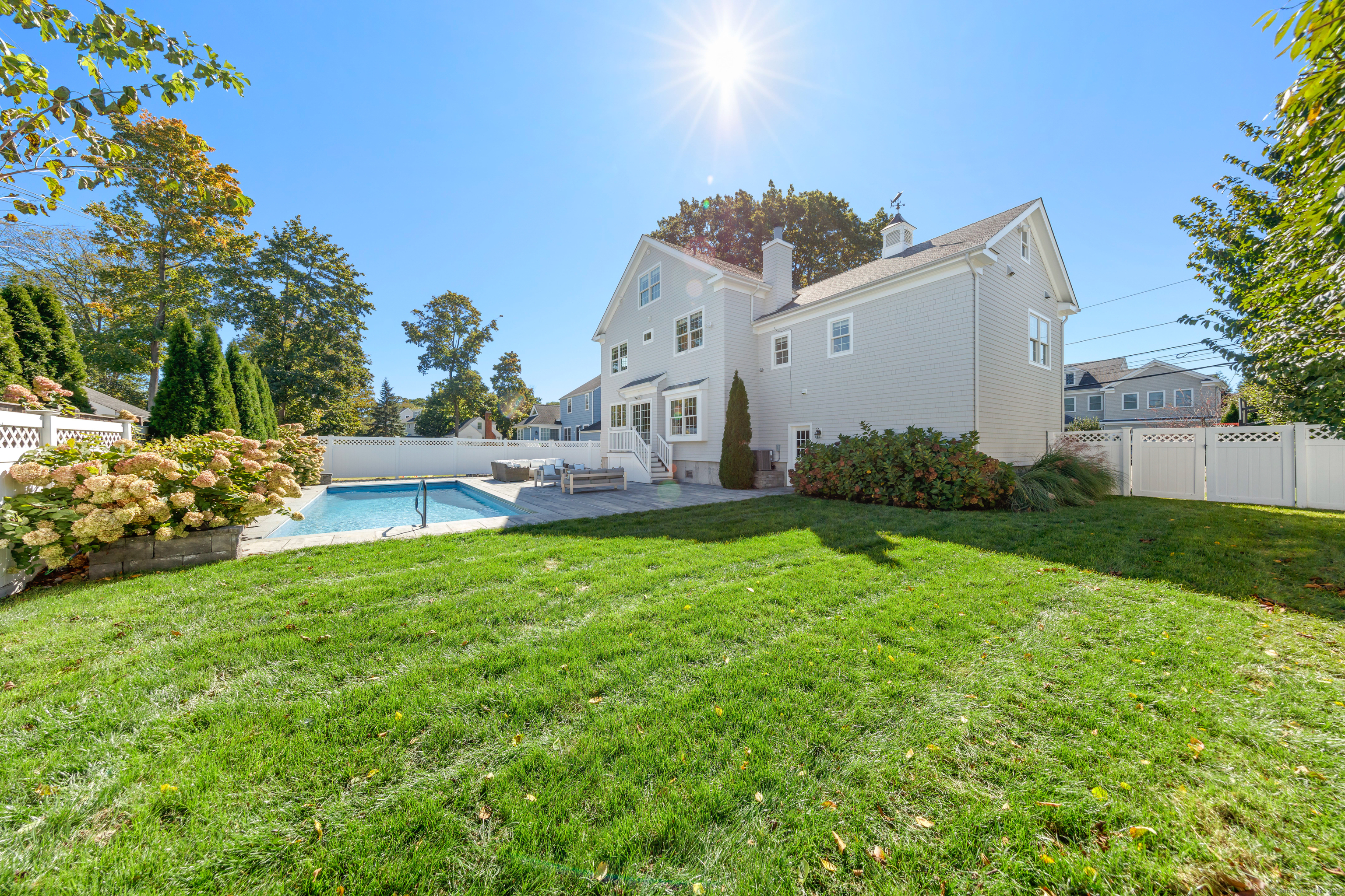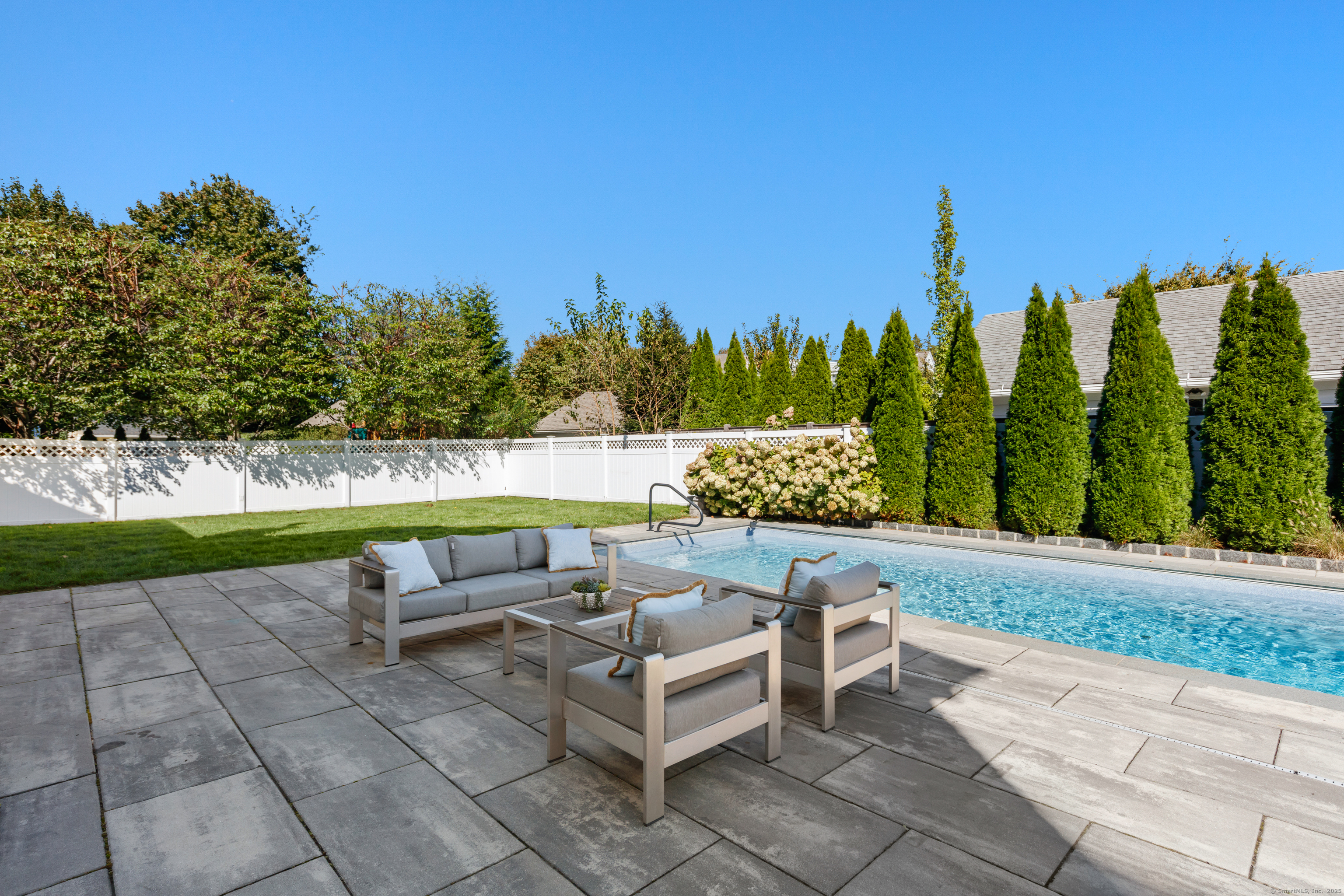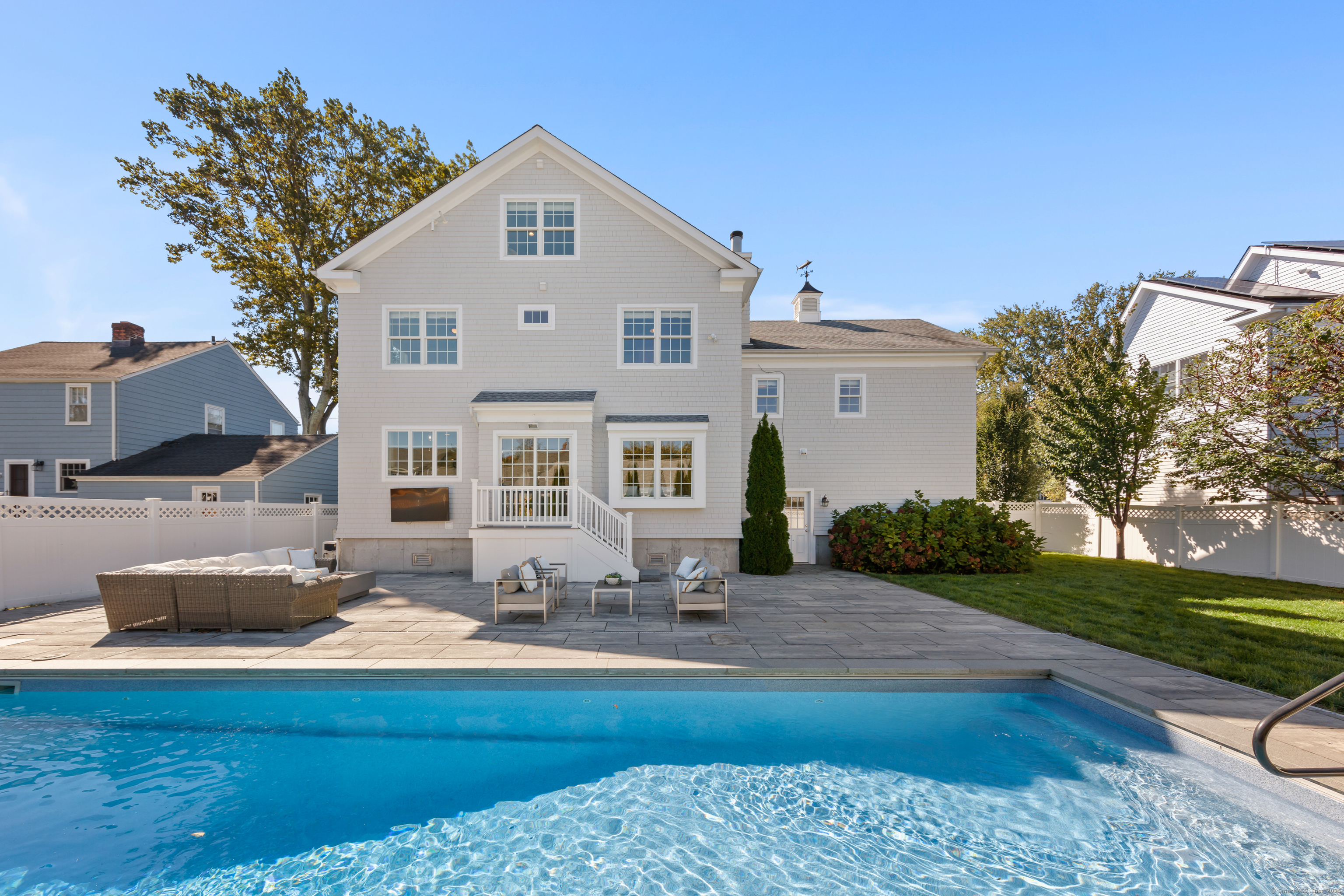 The beach house that truly has it all - light, luxury & location. Set on a nearly 1/4 acre lot on one of Fairfield Beach's most coveted, low-traffic streets where neighbors still host block parties & bike to the shore, this 4-5 BR, 4 1/2 BA home captures the spirit of coastal living w/timeless Nantucket style & effortless sophistication. Inside 9-ft ceilings & natural light define the main level. Living room w/wood beamed ceiling & gas fireplace faces dining room w/coffered ceiling that glows in afternoon light. A deep, moody designer powder room makes a bold statement while the show-stopping navy wet-bar w/warm wood counters, glass cabinetry & beverage fridge connects the dining room & kitchen - an entertainers dream. Chefs kitchen w/custom cabinetry & marble island opens to family room w/stone fireplace & built-ins overlooking the backyard retreat: heated pool w/automatic cover, expansive patio & lush landscaping. 2nd level offers a stunning guest suite, home office & large laundry room. Above, the primary suite is a sanctuary w/large walk-in closet & sublime bath redesigned by celebrated Fairfield County designer w/dual vanities, window seat, soaking tub, oversized marble shower & water closet. Two add'l BRs share a chic Jack-and-Jill bath. Top floor delivers huge finished flex room w/full bath perfect for home gym, playroom or guest suite. Oversized attached 2 car garage, mudroom w/custom built-ins, irrigation, tons of storage, gas, sewer, FEMA compliant. A coastal dream!