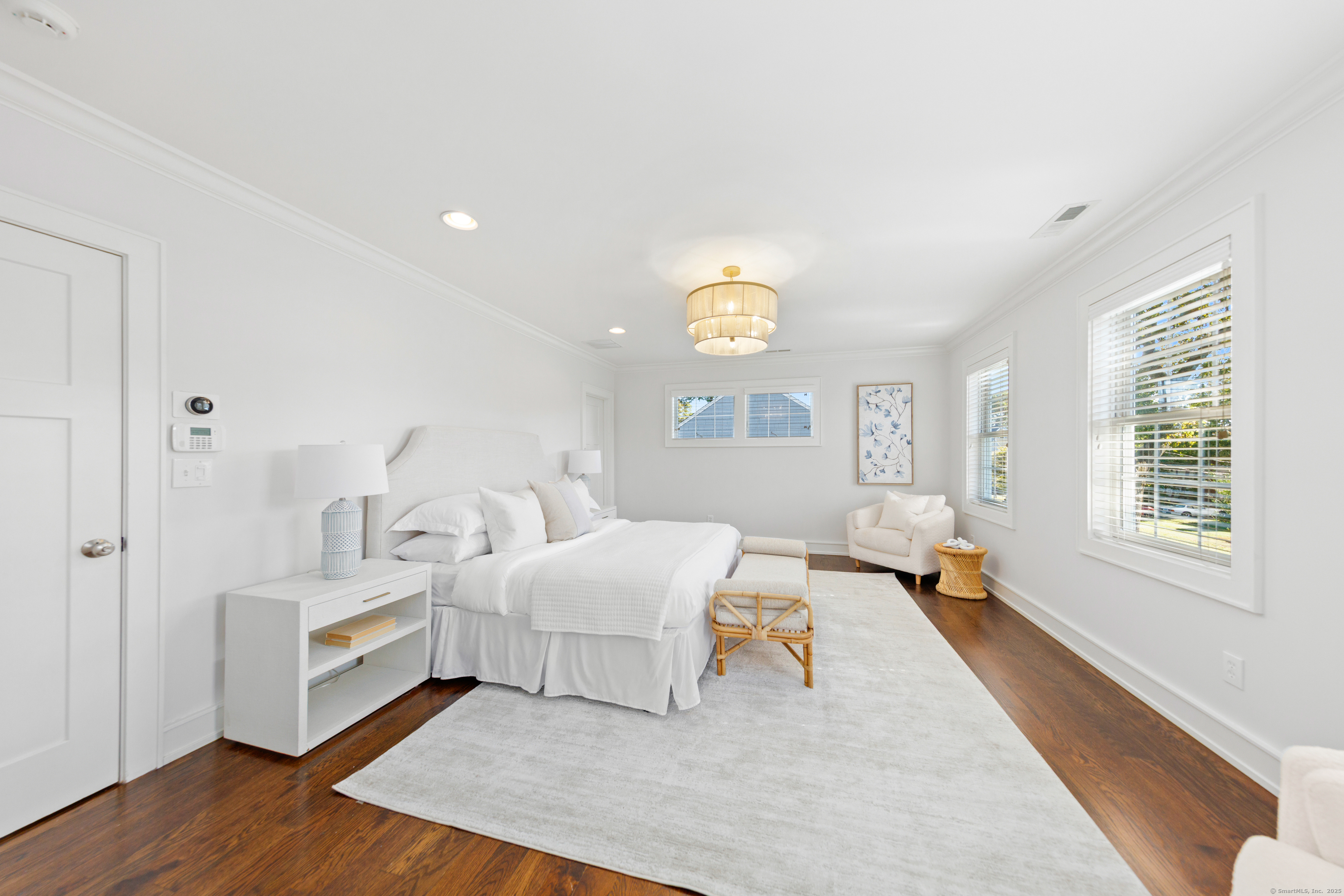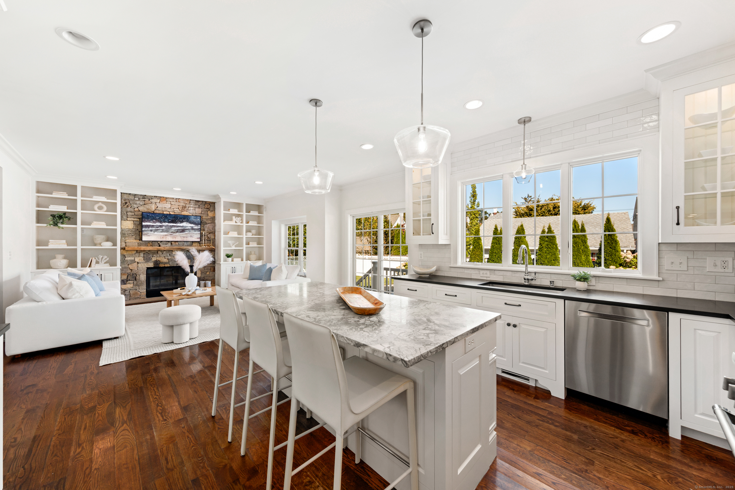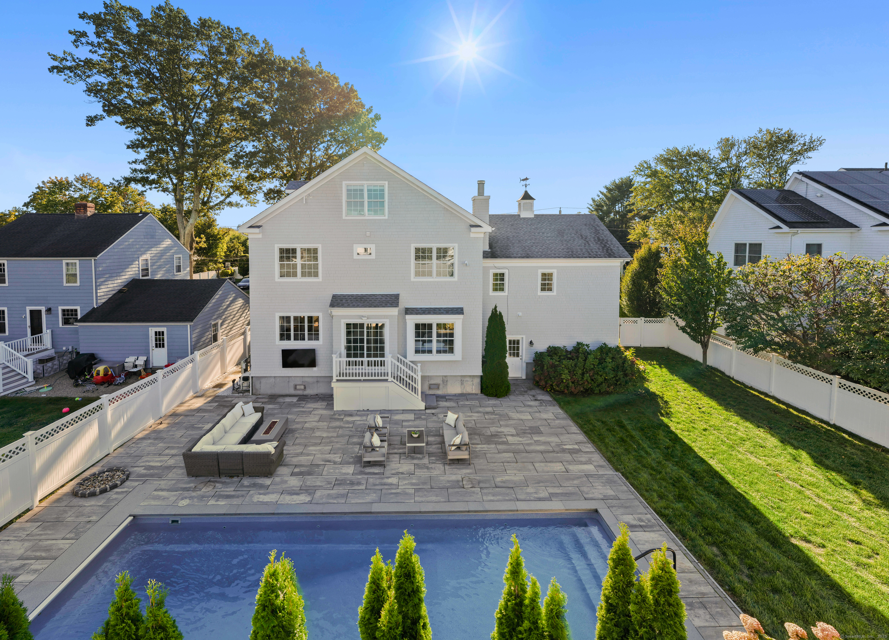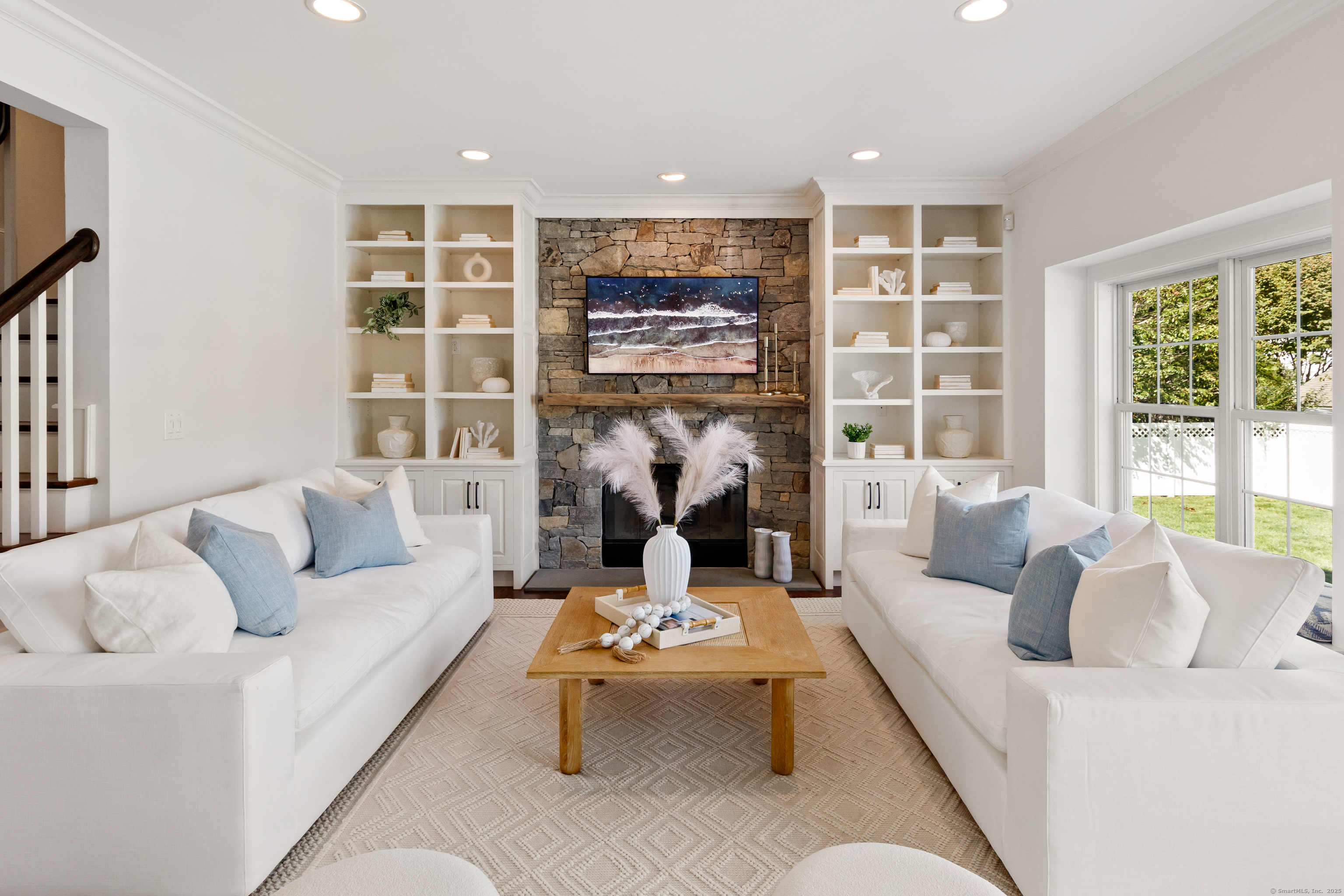 The beach house that truly has it all - light, luxury & location. Set on a nearly 1/4 acre lot on one of Fairfield Beach's most coveted, low-traffic streets where neighbors still host block parties & bike to the shore, this 4-5 BR, 4 1/2 BA home captures the spirit of coastal living w/timeless Nantucket style & effortless sophistication. Inside 9-ft ceilings & natural light define the main level. Living room w/wood beamed ceiling & gas fireplace faces dining room w/coffered ceiling that glows in afternoon light. A deep, moody designer powder room makes a bold statement while the show-stopping navy wet-bar w/warm wood counters, glass cabinetry & beverage fridge connects the dining room & kitchen - an entertainers dream. Chefs kitchen w/custom cabinetry & marble island opens to family room w/stone fireplace & built-ins overlooking the backyard retreat: heated pool w/automatic cover, expansive patio & lush landscaping. 2nd level offers a stunning guest suite, home office & large laundry room. Above, the primary suite is a sanctuary w/large walk-in closet & sublime bath redesigned by celebrated Fairfield County designer w/dual vanities, window seat, soaking tub, oversized marble shower & water closet. Two add'l BRs share a chic Jack-and-Jill bath. Top floor delivers huge finished flex room w/full bath perfect for home gym, playroom or guest suite. Oversized attached 2 car garage, mudroom w/custom built-ins, irrigation, tons of storage, gas, sewer, FEMA compliant. A coastal dream!