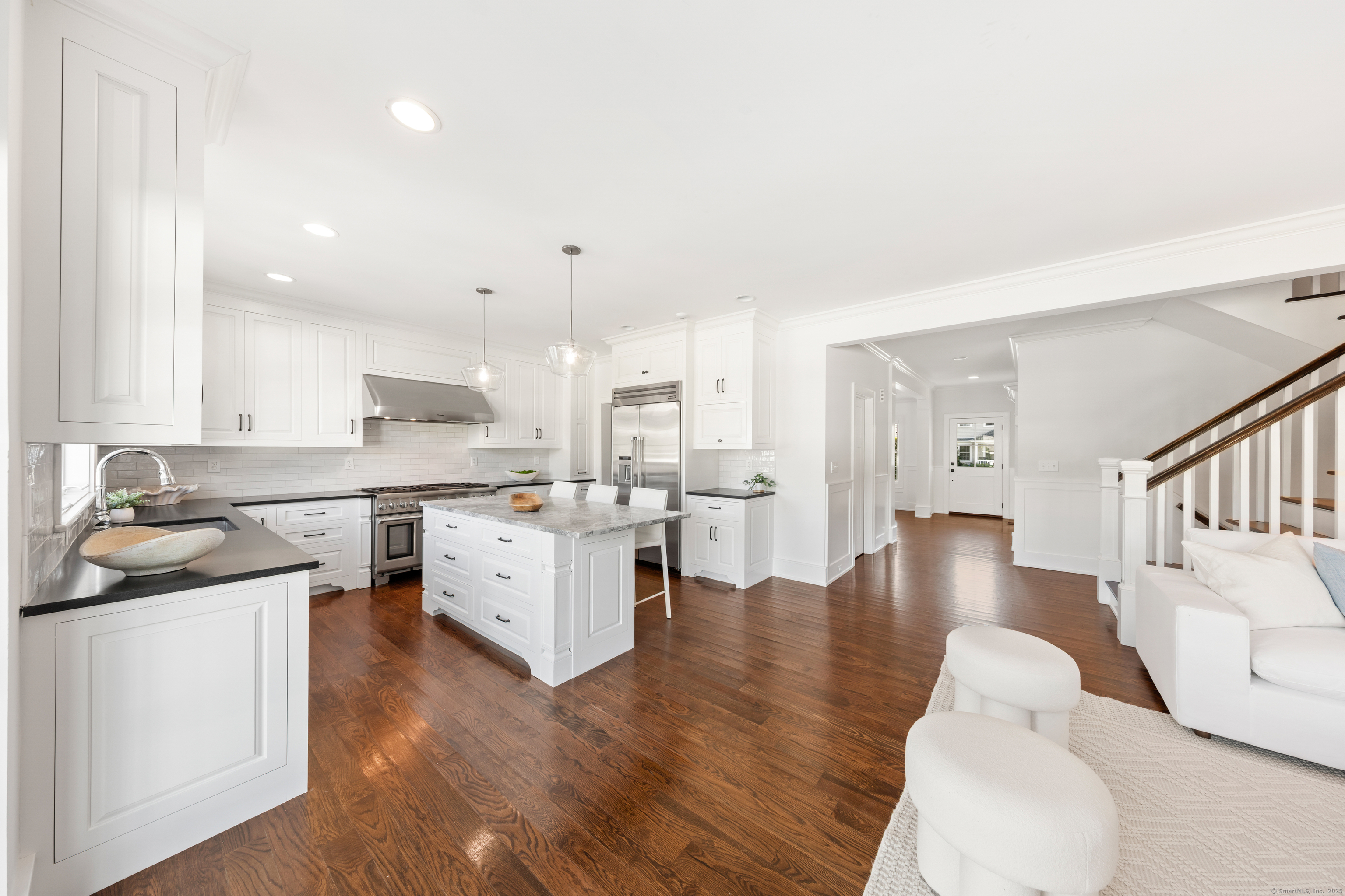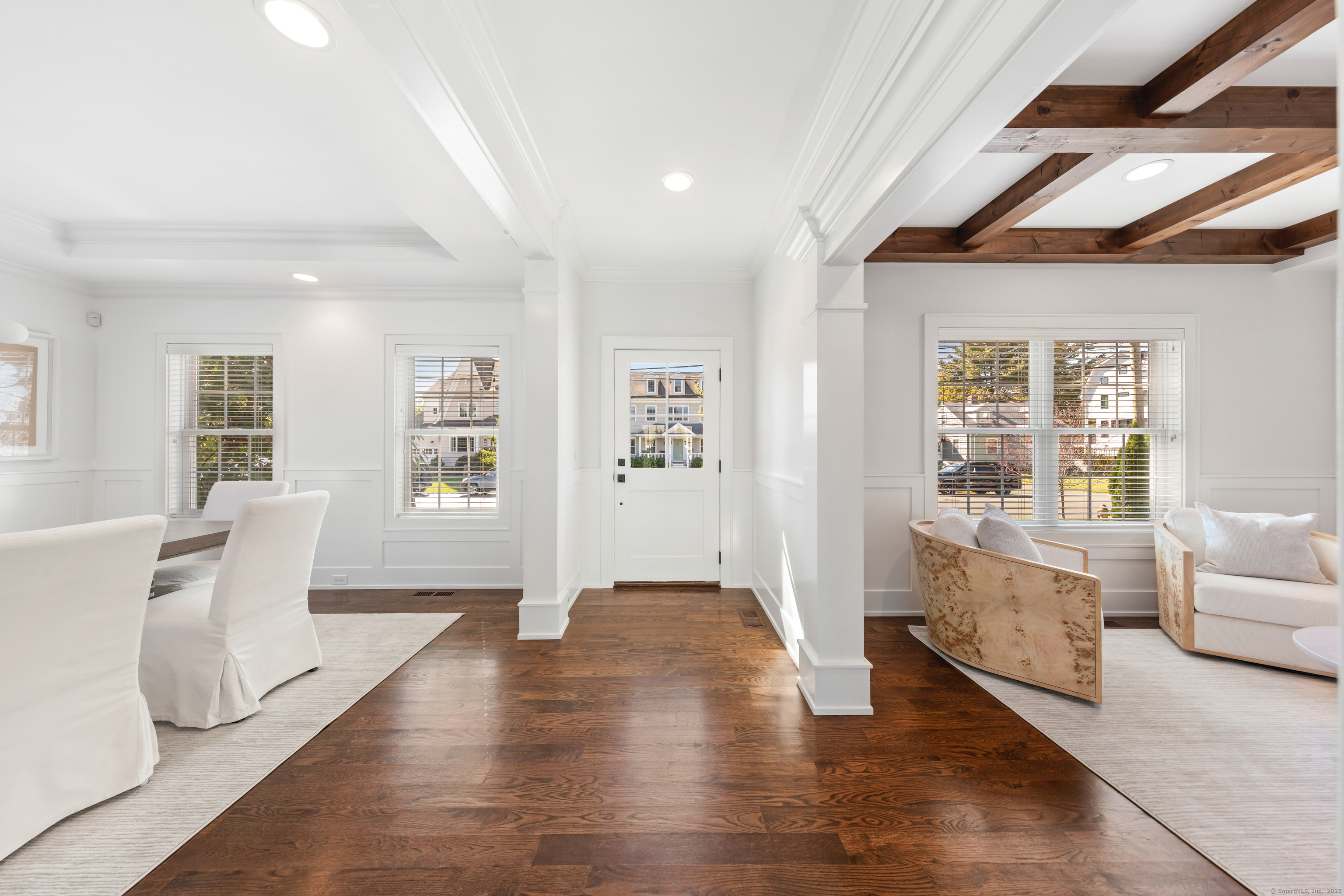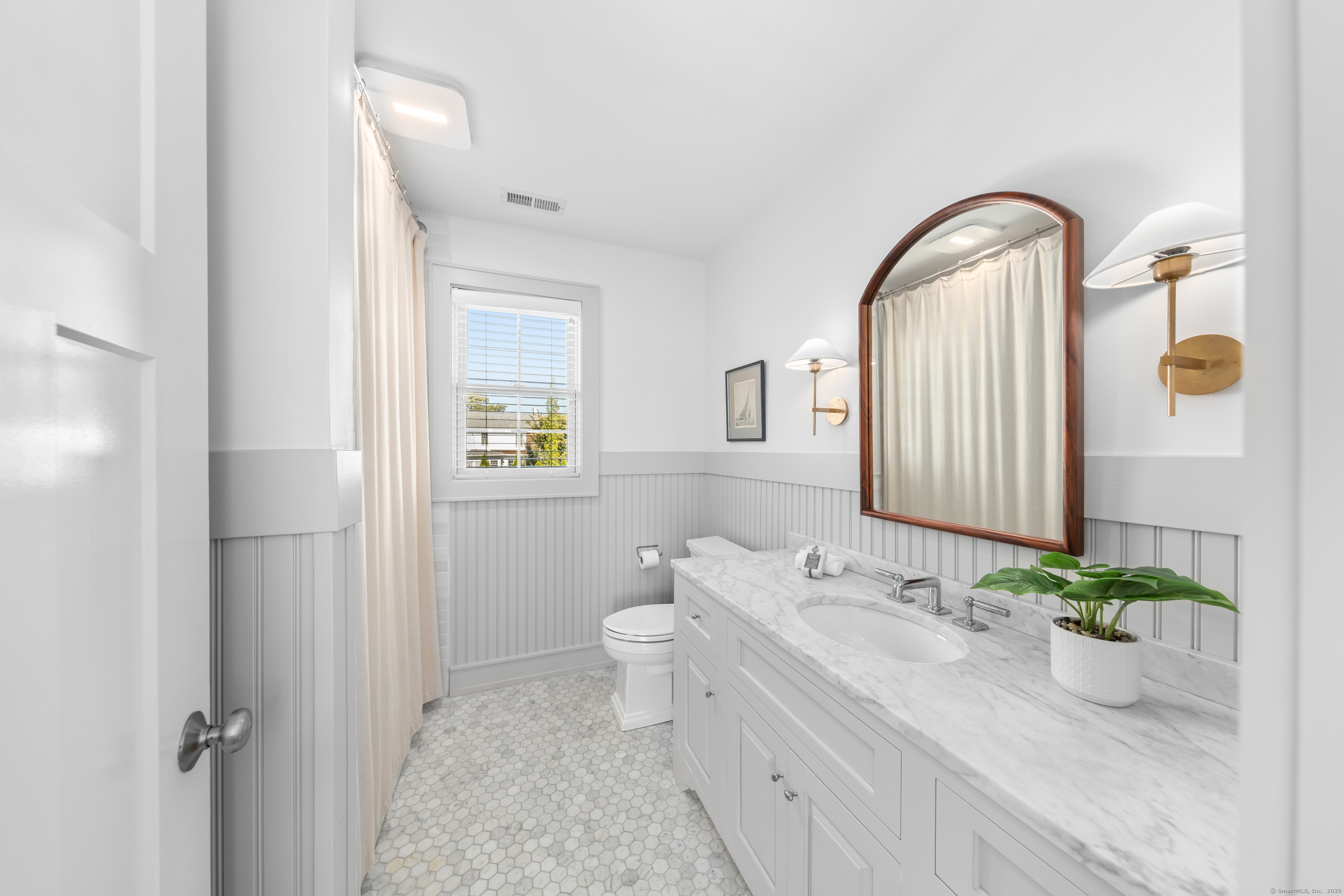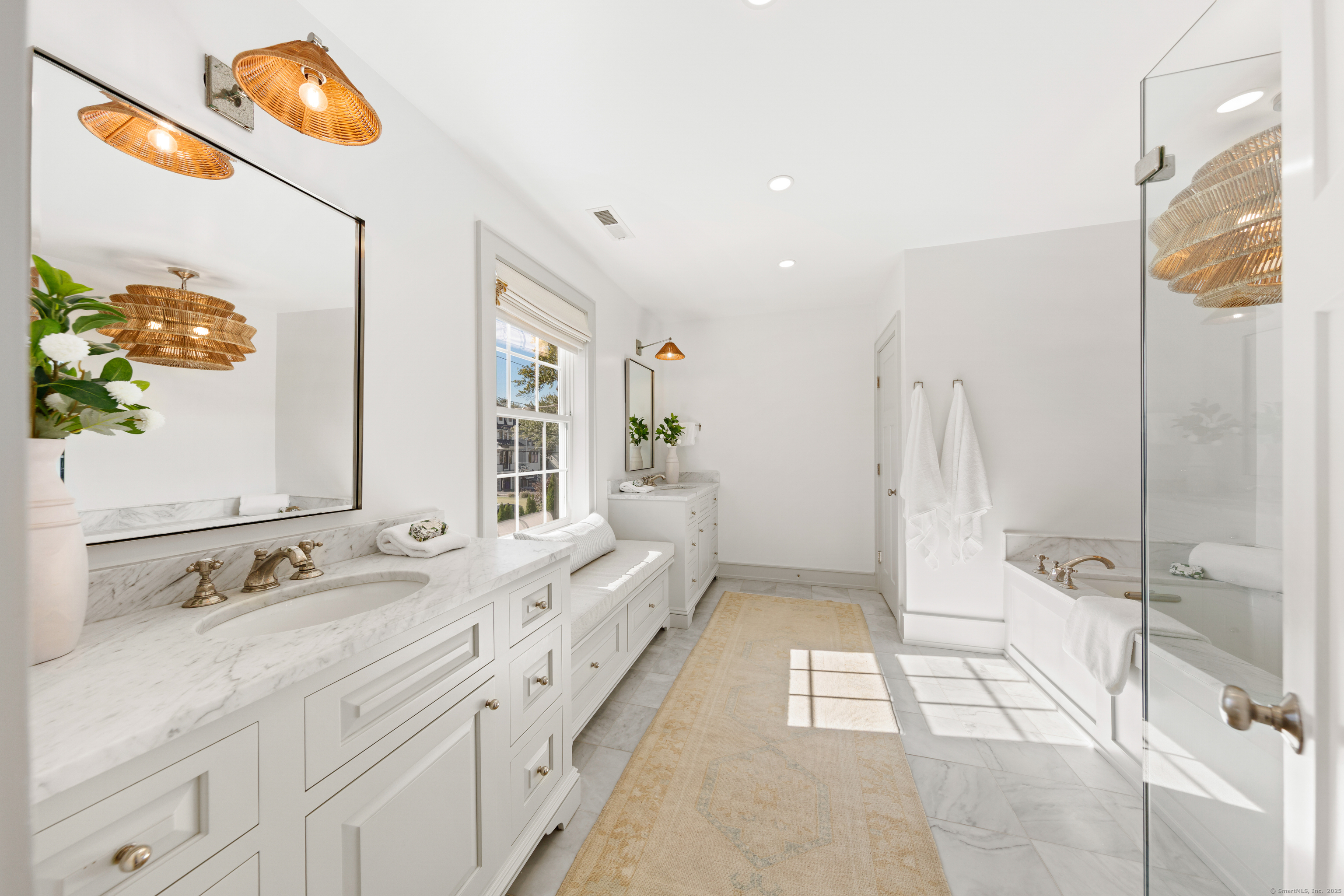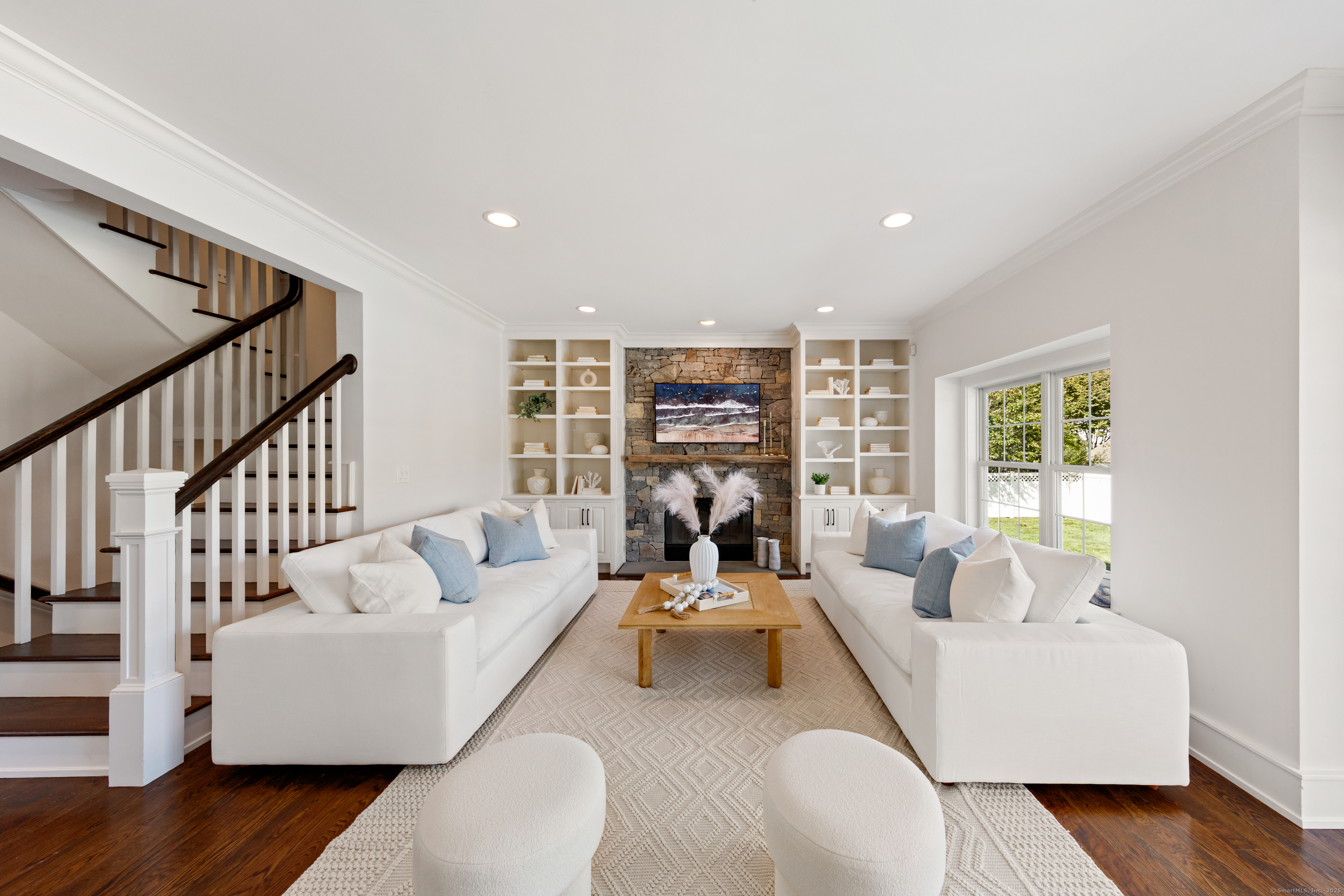 The beach house that truly has it all - light, luxury & location. Set on a nearly 1/4 acre lot on one of Fairfield Beach's most coveted, low-traffic streets where neighbors still host block parties & bike to the shore, this 4-5 BR, 4 1/2 BA home captures the spirit of coastal living w/timeless Nantucket style & effortless sophistication. Inside 9-ft ceilings & natural light define the main level. Living room w/wood beamed ceiling & gas fireplace faces dining room w/coffered ceiling that glows in afternoon light. A deep, moody designer powder room makes a bold statement while the show-stopping navy wet-bar w/warm wood counters, glass cabinetry & beverage fridge connects the dining room & kitchen - an entertainers dream. Chefs kitchen w/custom cabinetry & marble island opens to family room w/stone fireplace & built-ins overlooking the backyard retreat: heated pool w/automatic cover, expansive patio & lush landscaping. 2nd level offers a stunning guest suite, home office & large laundry room. Above, the primary suite is a sanctuary w/large walk-in closet & sublime bath redesigned by celebrated Fairfield County designer w/dual vanities, window seat, soaking tub, oversized marble shower & water closet. Two add'l BRs share a chic Jack-and-Jill bath. Top floor delivers huge finished flex room w/full bath perfect for home gym, playroom or guest suite. Oversized attached 2 car garage, mudroom w/custom built-ins, irrigation, tons of storage, gas, sewer, FEMA compliant. A coastal dream!