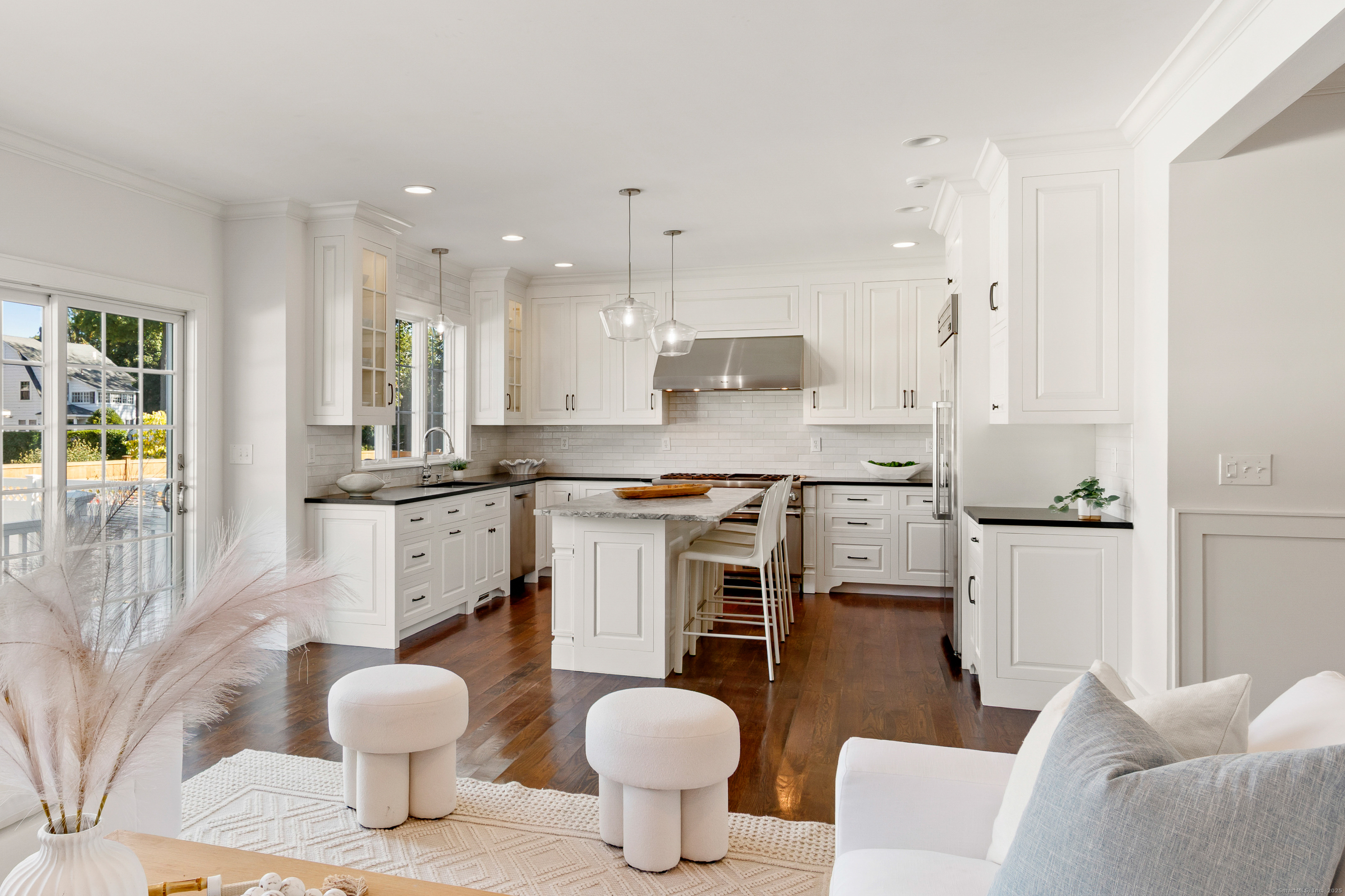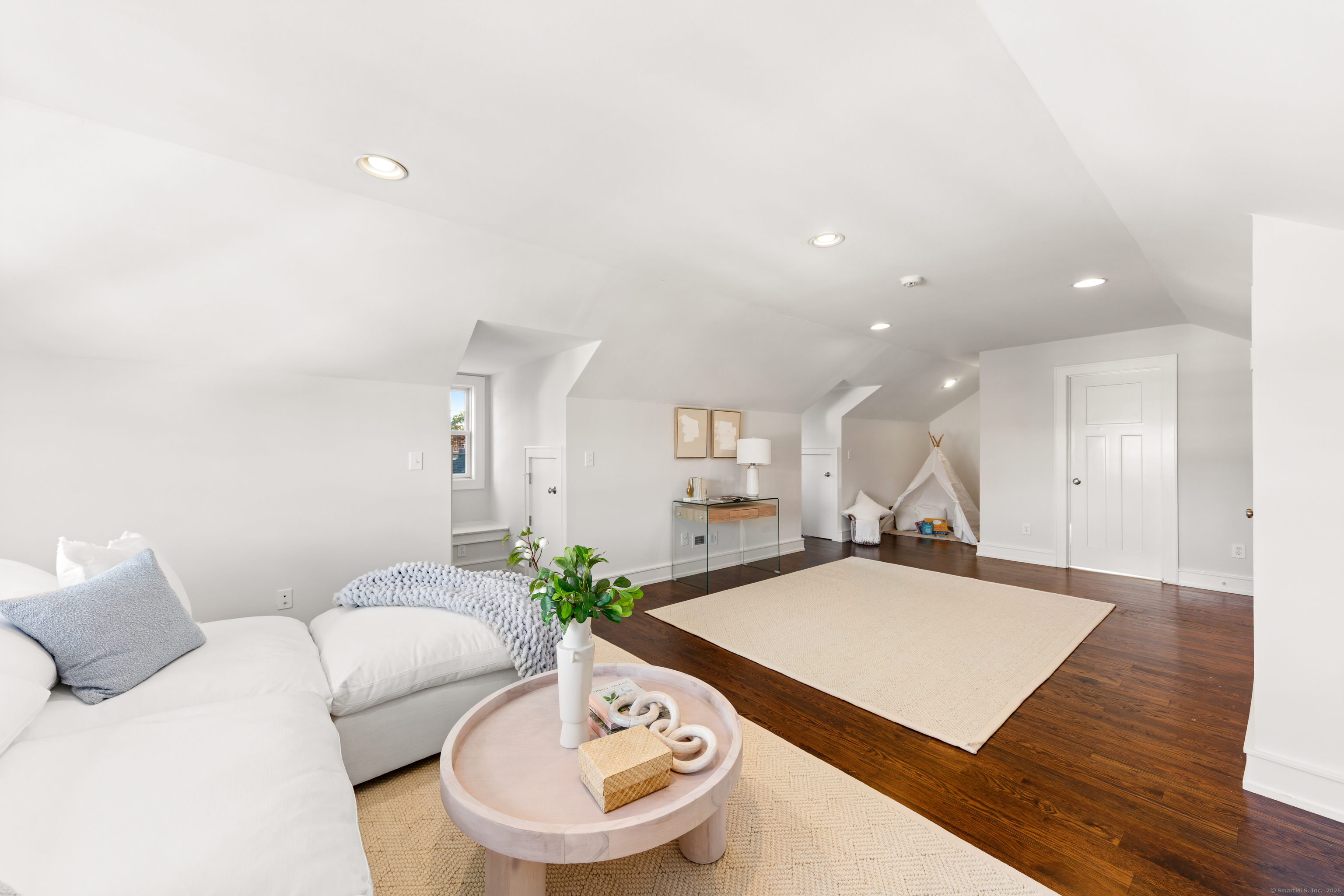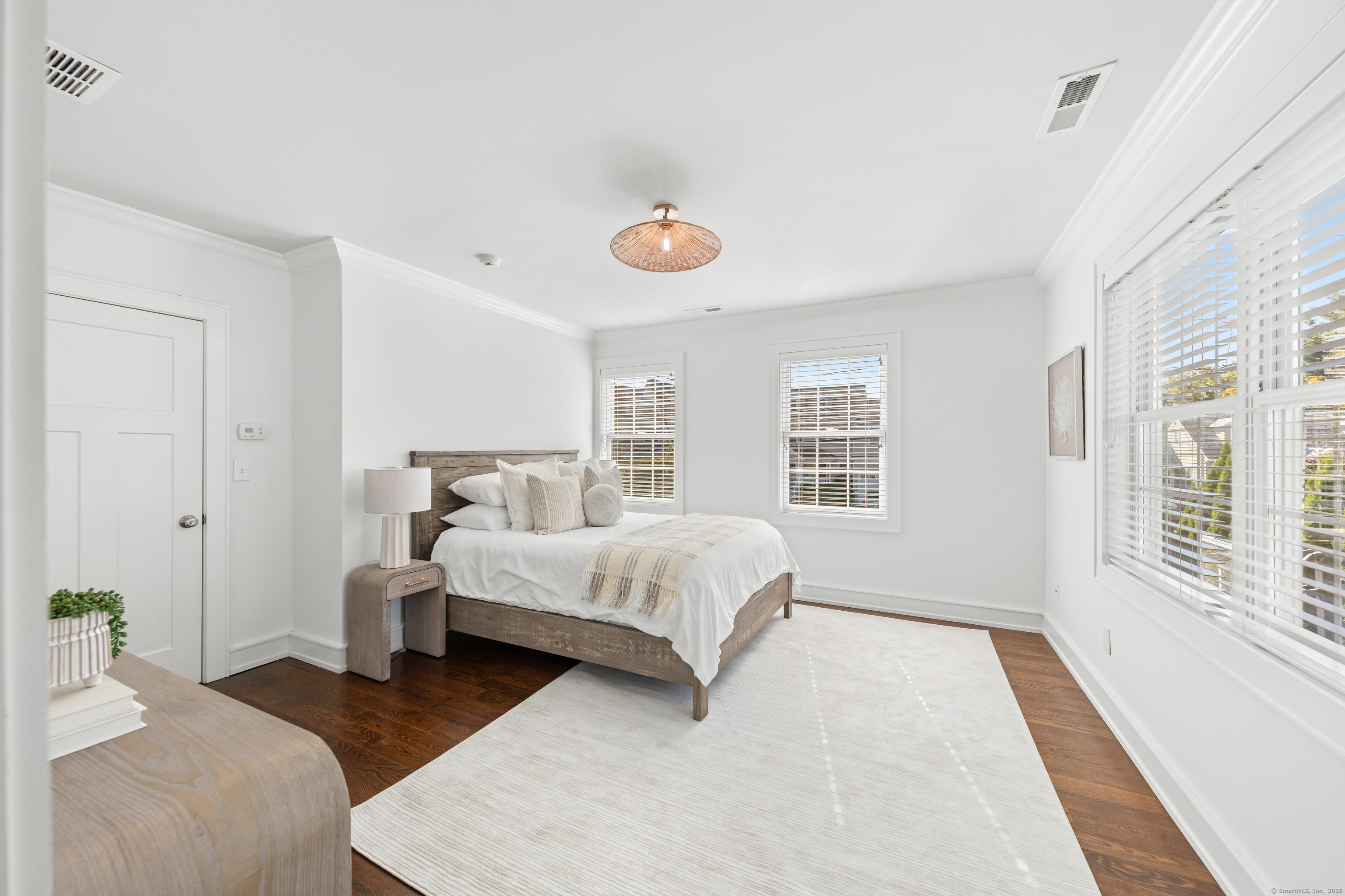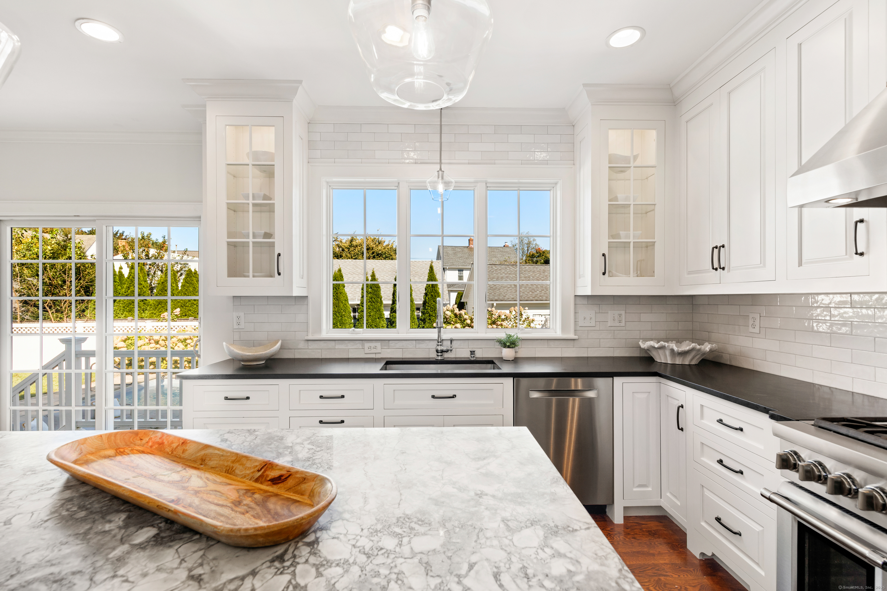 The beach house that truly has it all - light, luxury & location. Set on a nearly 1/4 acre lot on one of Fairfield Beach's most coveted, low-traffic streets where neighbors still host block parties & bike to the shore, this 4-5 BR, 4 1/2 BA home captures the spirit of coastal living w/timeless Nantucket style & effortless sophistication. Inside 9-ft ceilings & natural light define the main level. Living room w/wood beamed ceiling & gas fireplace faces dining room w/coffered ceiling that glows in afternoon light. A deep, moody designer powder room makes a bold statement while the show-stopping navy wet-bar w/warm wood counters, glass cabinetry & beverage fridge connects the dining room & kitchen - an entertainers dream. Chefs kitchen w/custom cabinetry & marble island opens to family room w/stone fireplace & built-ins overlooking the backyard retreat: heated pool w/automatic cover, expansive patio & lush landscaping. 2nd level offers a stunning guest suite, home office & large laundry room. Above, the primary suite is a sanctuary w/large walk-in closet & sublime bath redesigned by celebrated Fairfield County designer w/dual vanities, window seat, soaking tub, oversized marble shower & water closet. Two add'l BRs share a chic Jack-and-Jill bath. Top floor delivers huge finished flex room w/full bath perfect for home gym, playroom or guest suite. Oversized attached 2 car garage, mudroom w/custom built-ins, irrigation, tons of storage, gas, sewer, FEMA compliant. A coastal dream!