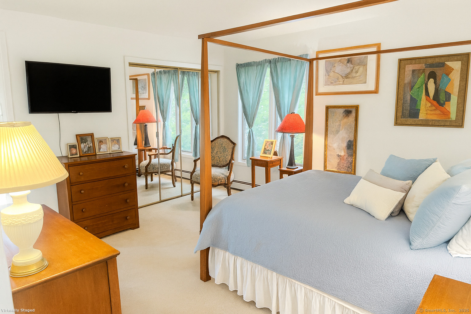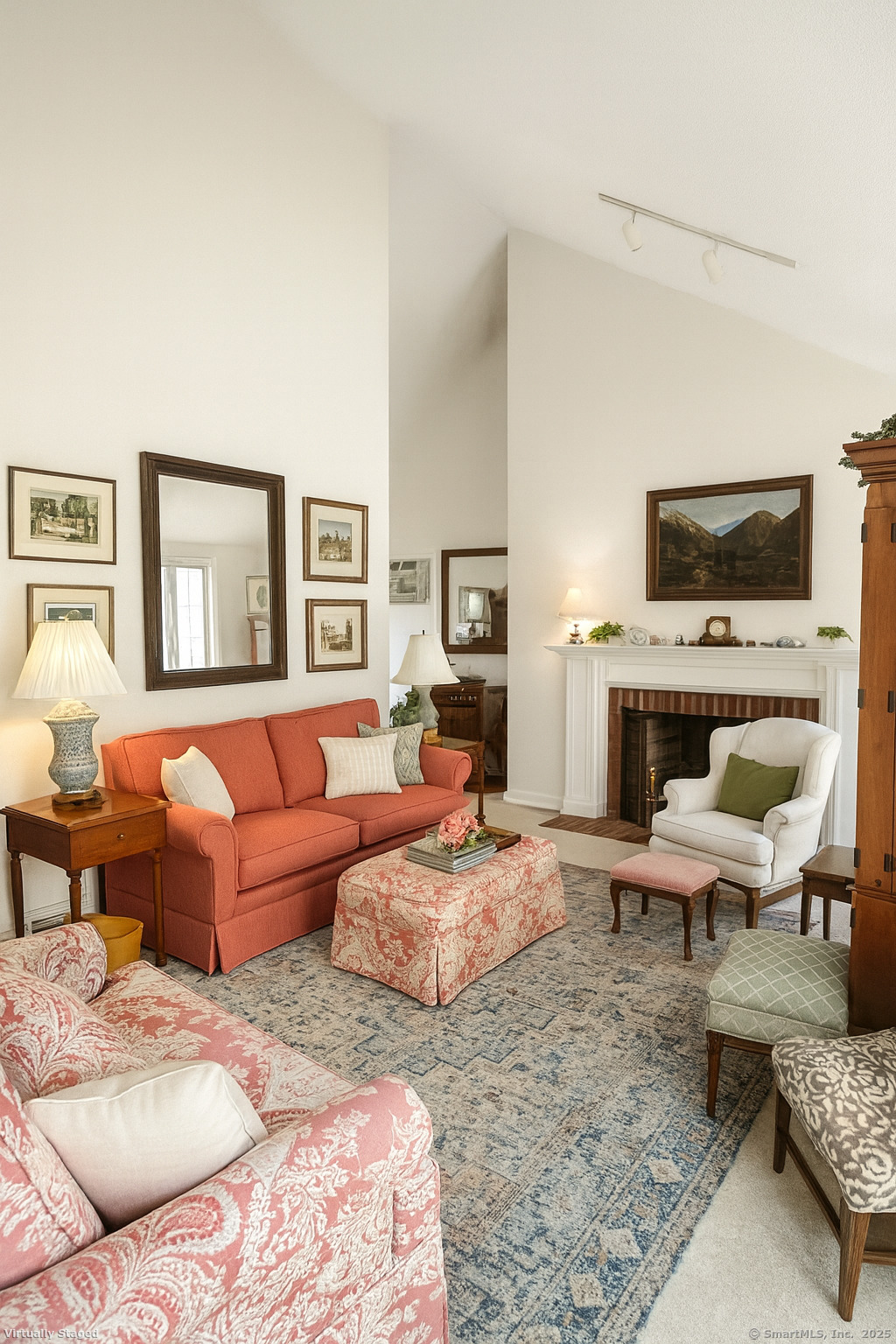 20 Yankee Glen, Madison, Connecticut - Tucked just minutes from the sandy shoreline of Hammonasset Beach State Park, this single-standing condominium combines the serenity of coastal living with the charm of New England design. Behind its private entryway lies a sun-filled home where tall ceilings, a beautiful wood-burning fireplace, and a seamless flow between the living and dining spaces create a sense of warmth and sophistication. The main level offers two spacious bedrooms and two full bathrooms, ideal for single-level living. Upstairs, a large unfinished room awaits-perfect for an artist's studio, home office, or third bedroom, offering endless creative possibilities. Step through the glass doors onto your private outdoor deck, surrounded by mature trees and gentle coastal breezes. In a community known for its peaceful ambiance and proximity to beaches, shops, and restaurants, 20 Yankee Glen captures the essence of refined seaside simplicity-a retreat designed for those who value both comfort and inspiration.