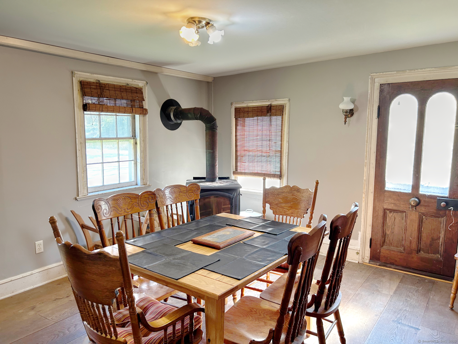 Step back in time with this charming 1773 Colonial, filled with character, warmth, and potential. This historic home showcases wide-plank hardwood floors throughout, reflecting the timeless craftsmanship of its era. The main level offers a comfortable living room and dining room with a cozy woodstove, perfect for gathering on cool evenings. You'll also find an updated full bathroom and a butler's pantry leading into the kitchen, adding both charm and functionality to the space. Upstairs features three bedrooms and another full bathroom, providing a classic layout ready for your personal touch. With a little imagination and care, this home can be transformed into a truly beautiful and unique residence. Outside, enjoy a flat yard ideal for gardening, entertaining, or simply relaxing in the peaceful surroundings. The property also includes a barn with electricity-perfect for a hobby shop, workshop, or creative studio. While the barn does need some work, it offers great potential and adds to the home's overall charm. Conveniently located close to highways, shops, and local amenities, this property offers the best of both worlds-historic appeal and everyday convenience. Property is being sold AS-IS and is contingent upon the seller finding suitable housing. With its rich history, inviting character, and endless possibilities, 25 Riverside Road is ready for its next chapter-make it yours!