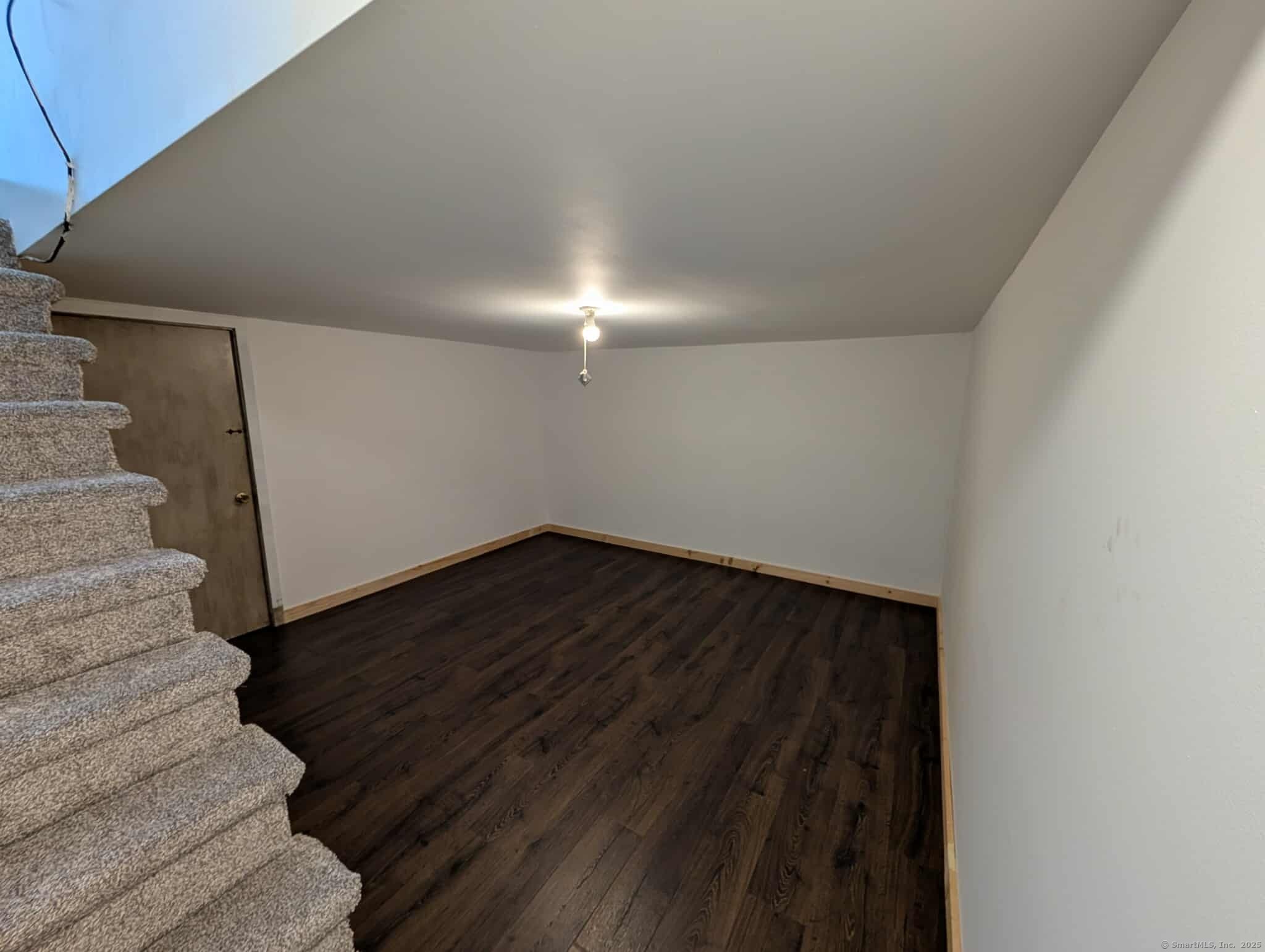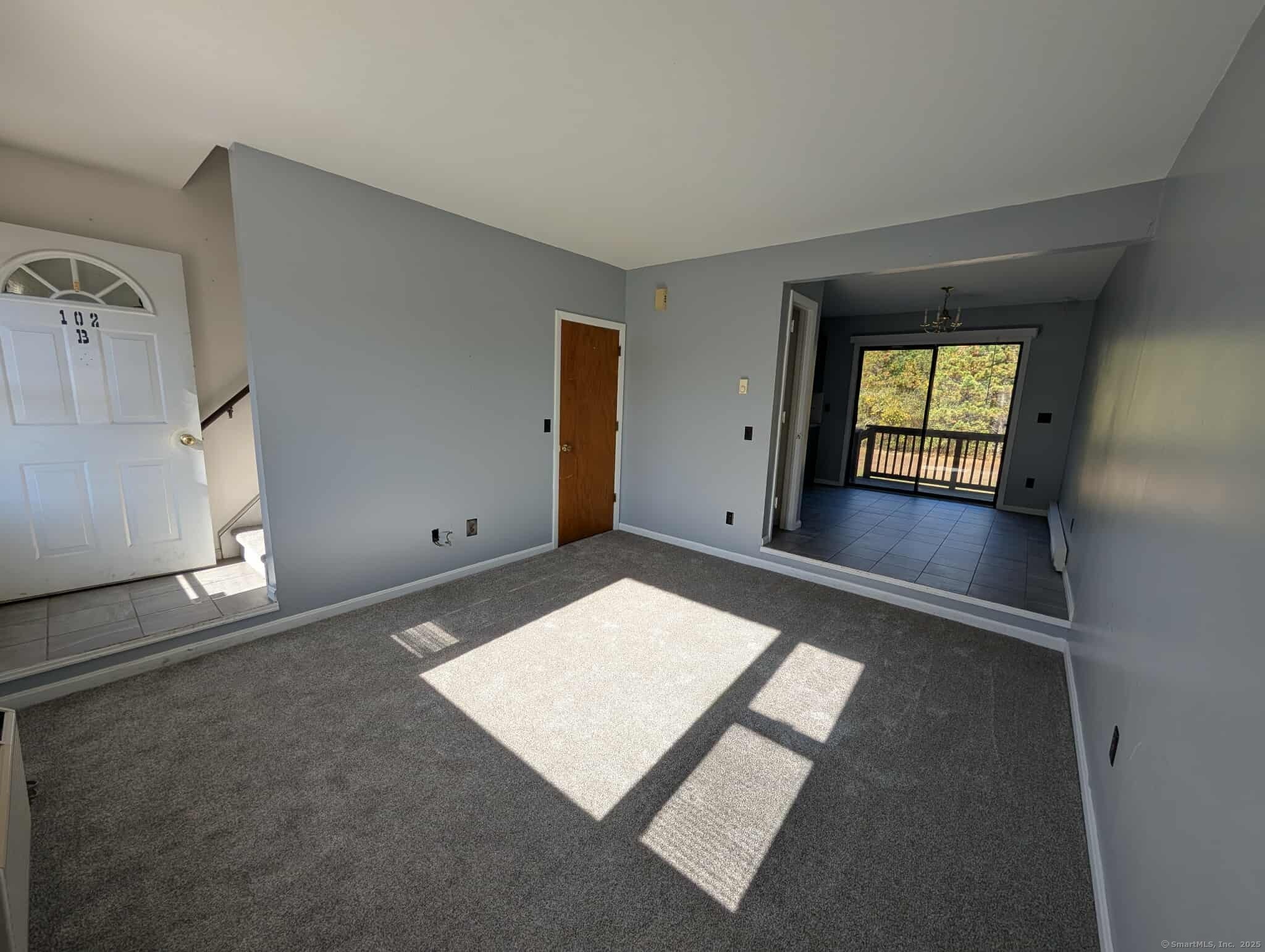 Welcome to this townhouse style 2-bedroom, 1-bath condo located in the last building of the complex, offering a larger and more private backyard with a view of the woods. On the main level you'll find an eat-in kitchen with plenty of room for dining, a living room, and a slider leading to a back deck with space for gardening or outdoor seating. All new carpeting in the living room and bedrooms as well fresh paint on the main level. The bathroom includes a new tub and shower, and tile flooring completed this year. The finished lower-level features new LVP flooring and provides additional living space that can be used as a family room, home gym, office, or playroom. Shared laundry with coin-operated washer and dryer is conveniently located off the basement. This condo offers comfortable living with low maintenance and is a great opportunity for someone looking to own rather than rent. Located close to 395- easy access to shopping centers in both Killingly and Lisbon, 20 minutes to Foxwoods, close to RI and MA.